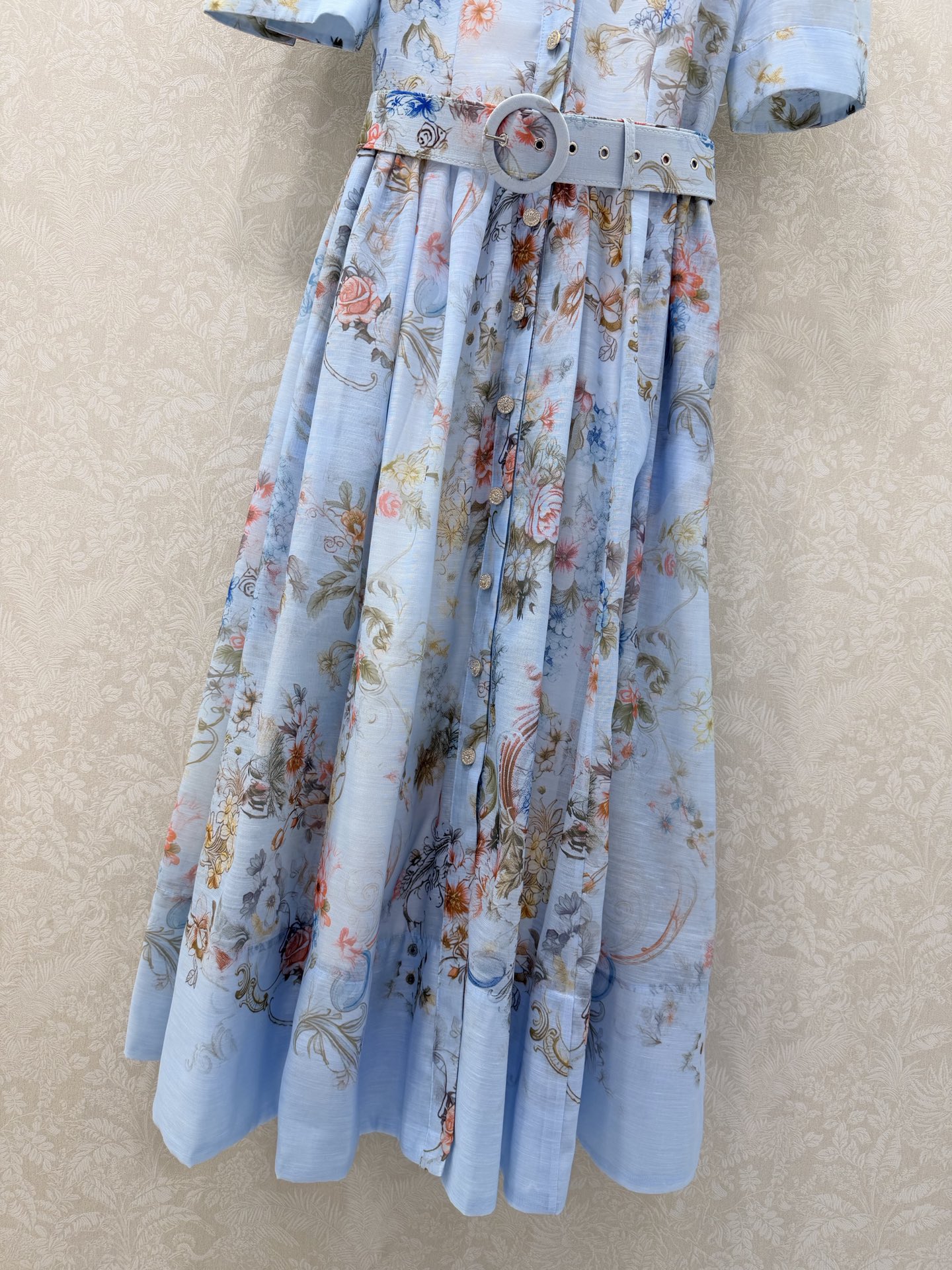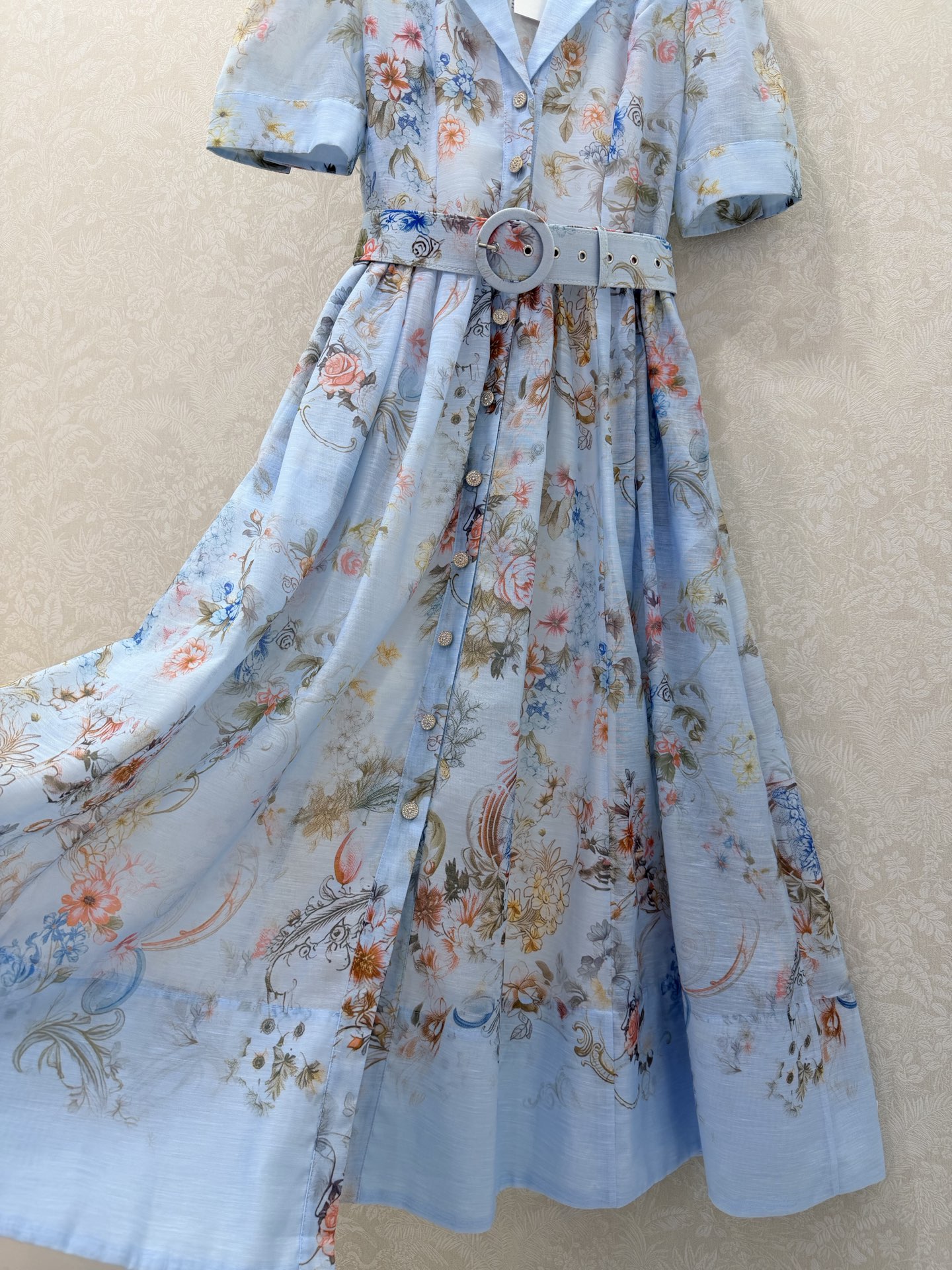 Details: Two-piece long dress with lantern sleeves, floral patterns, and a loose skirt. Available in 3 colors and 4 sizes.