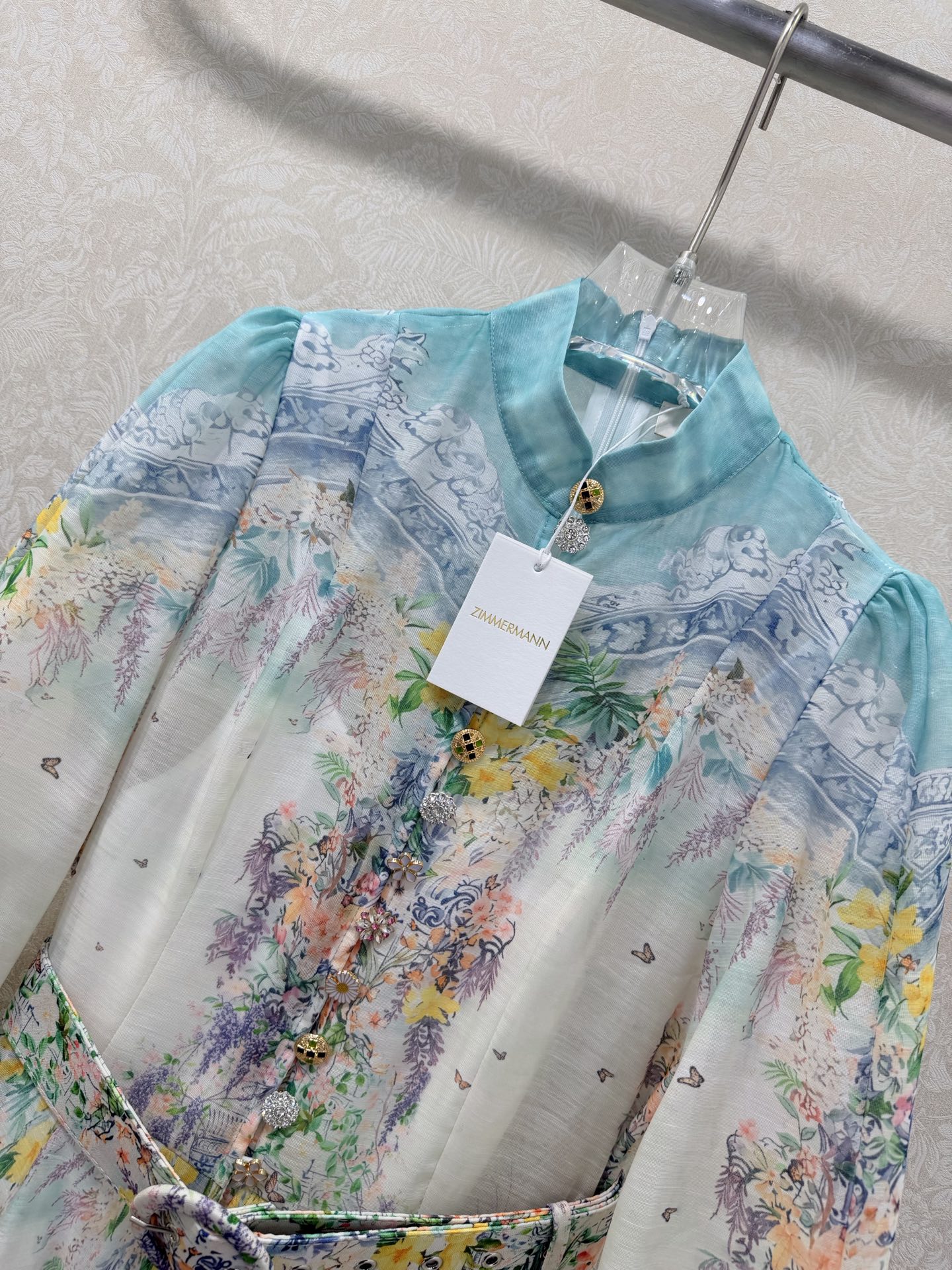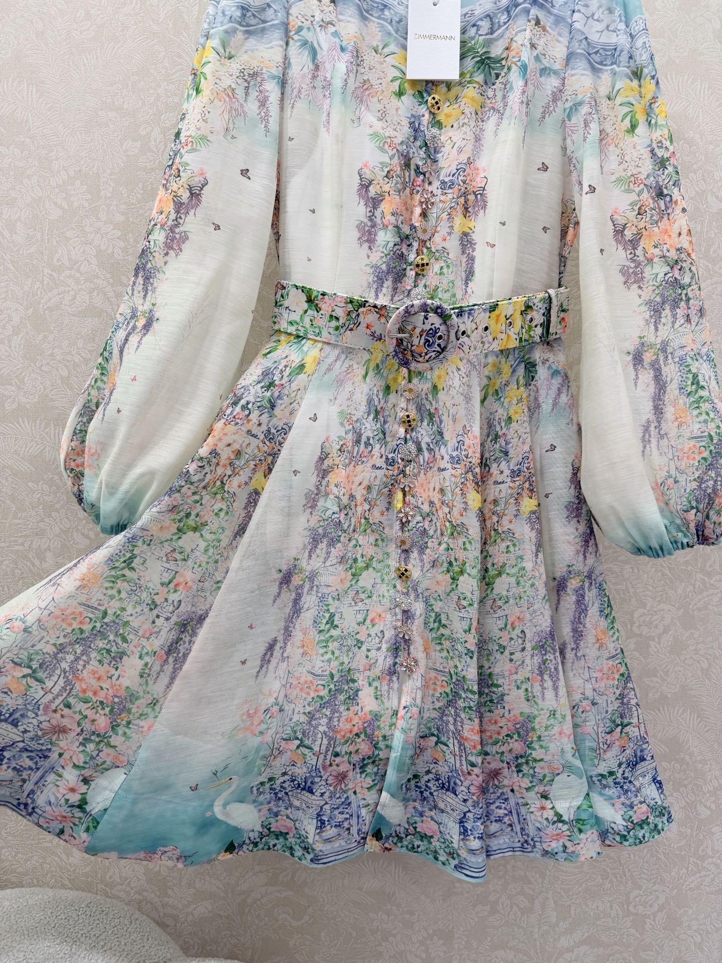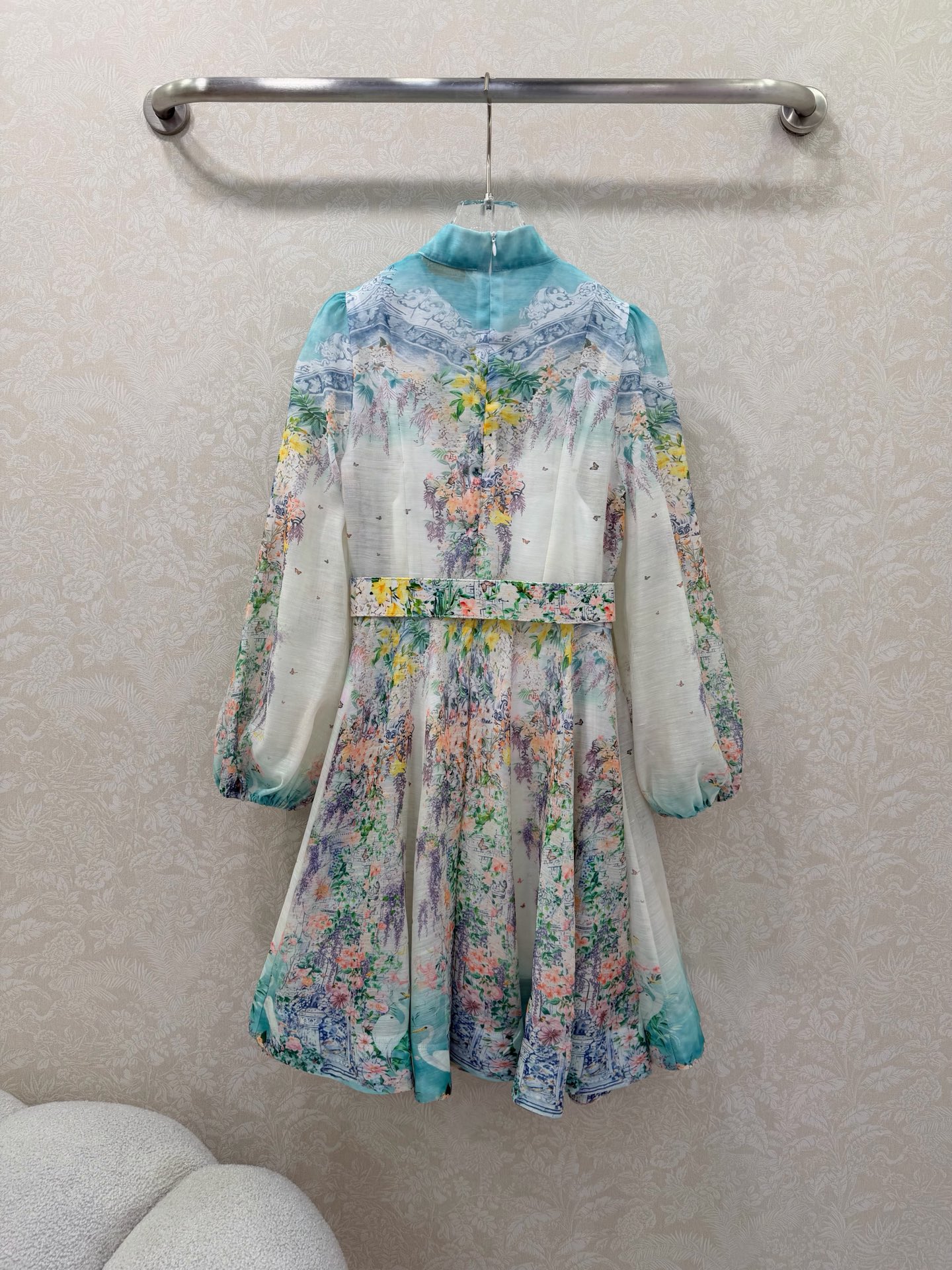 Details: New floral stand-up collar short dress, eye-catching design, with belt and suspenders, 4 sizes.