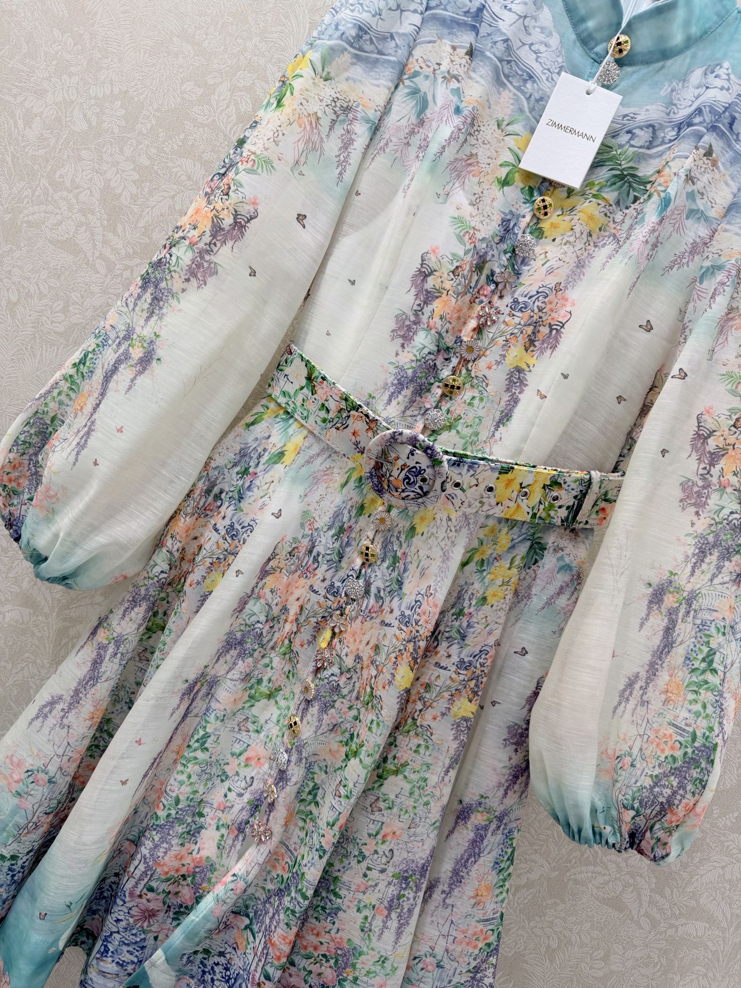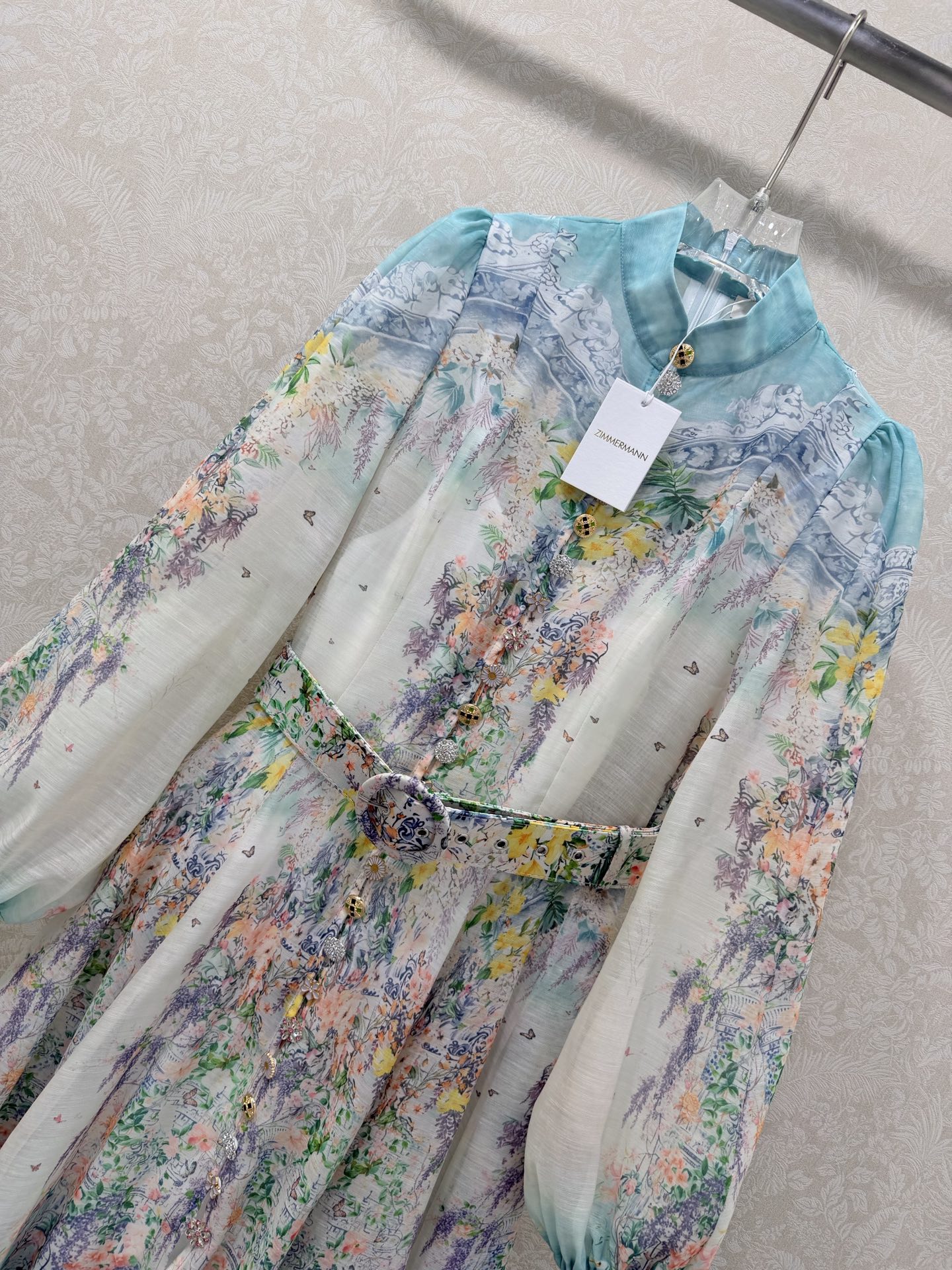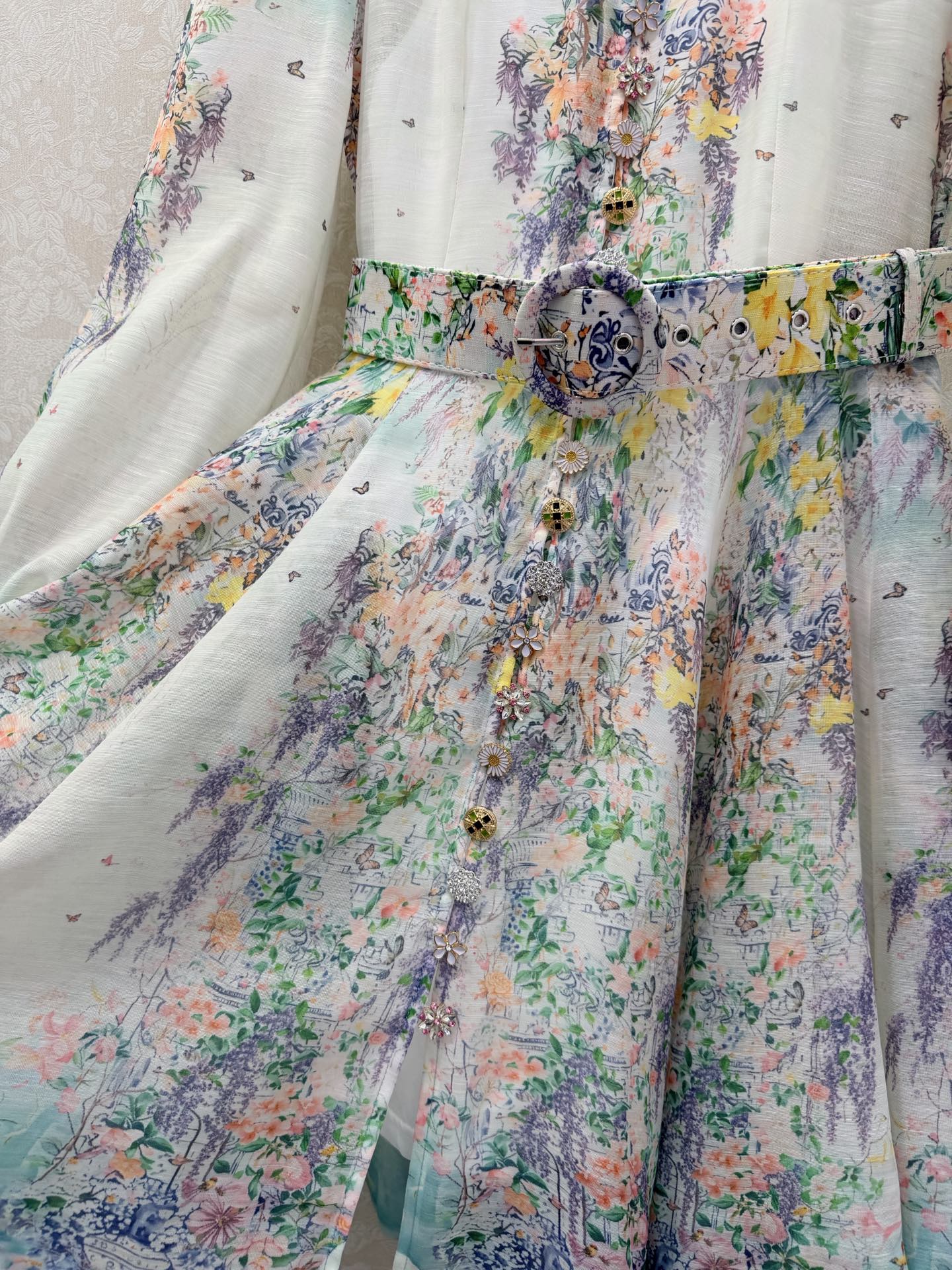 Details: New floral stand-up collar short dress, eye-catching design, with belt and suspenders, 4 sizes.