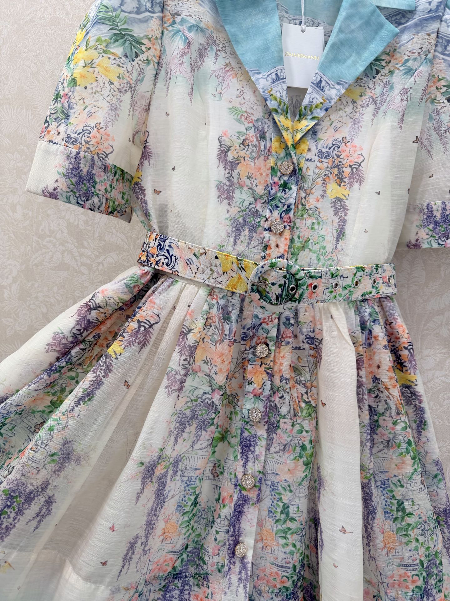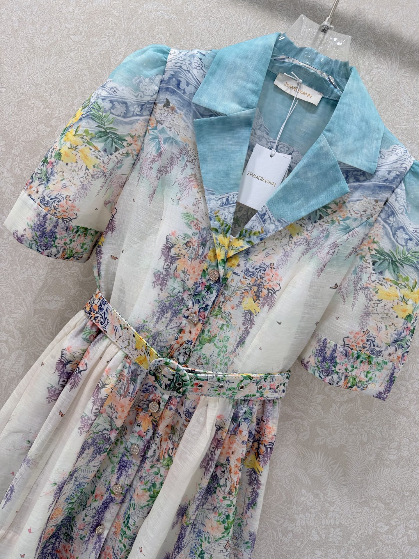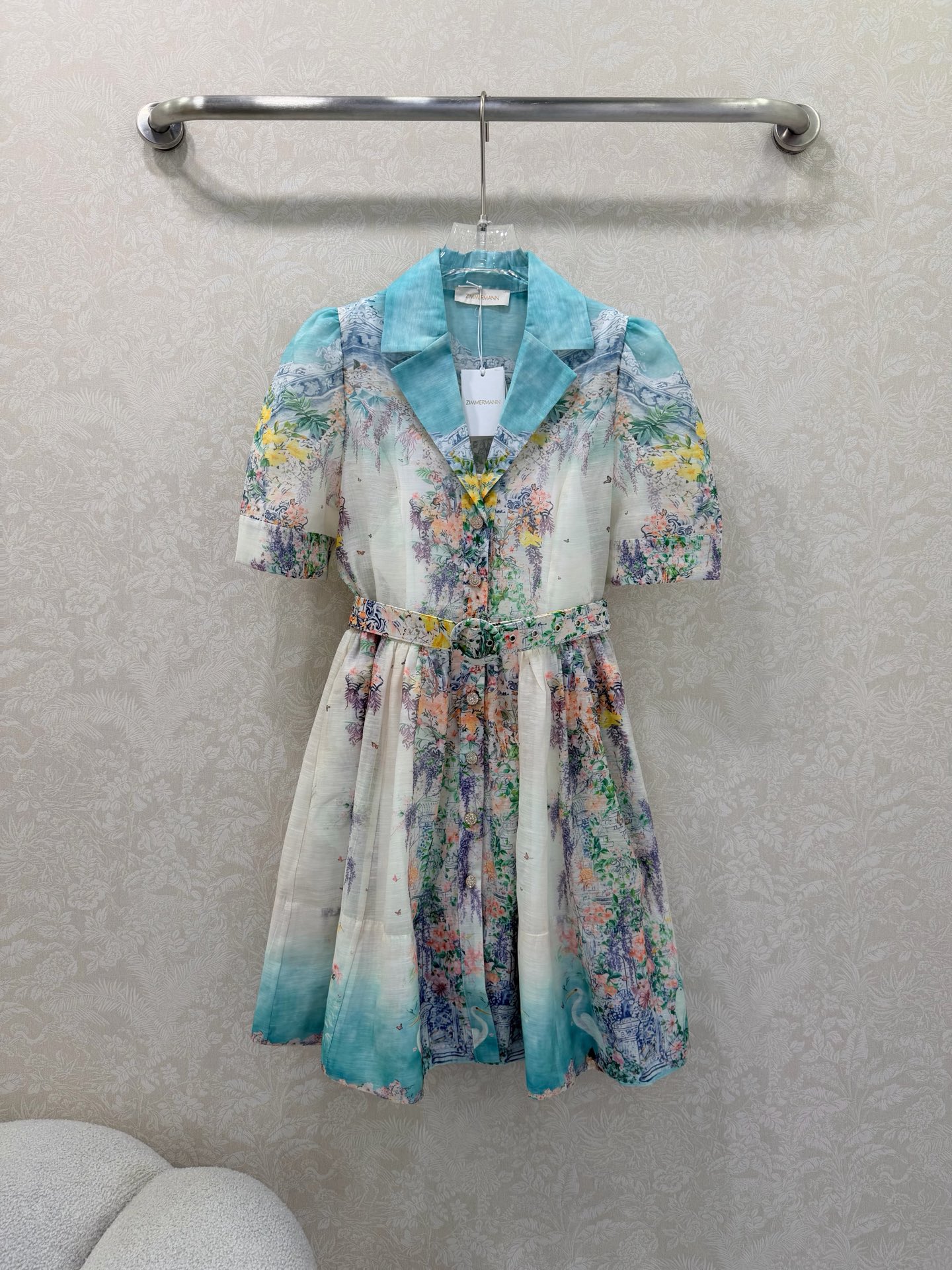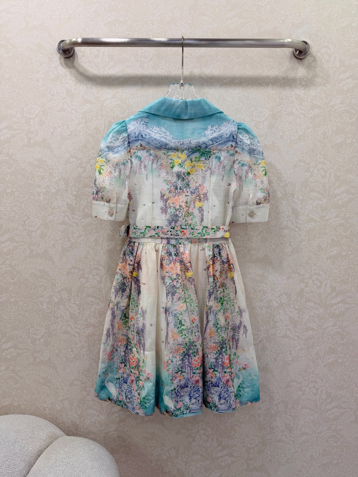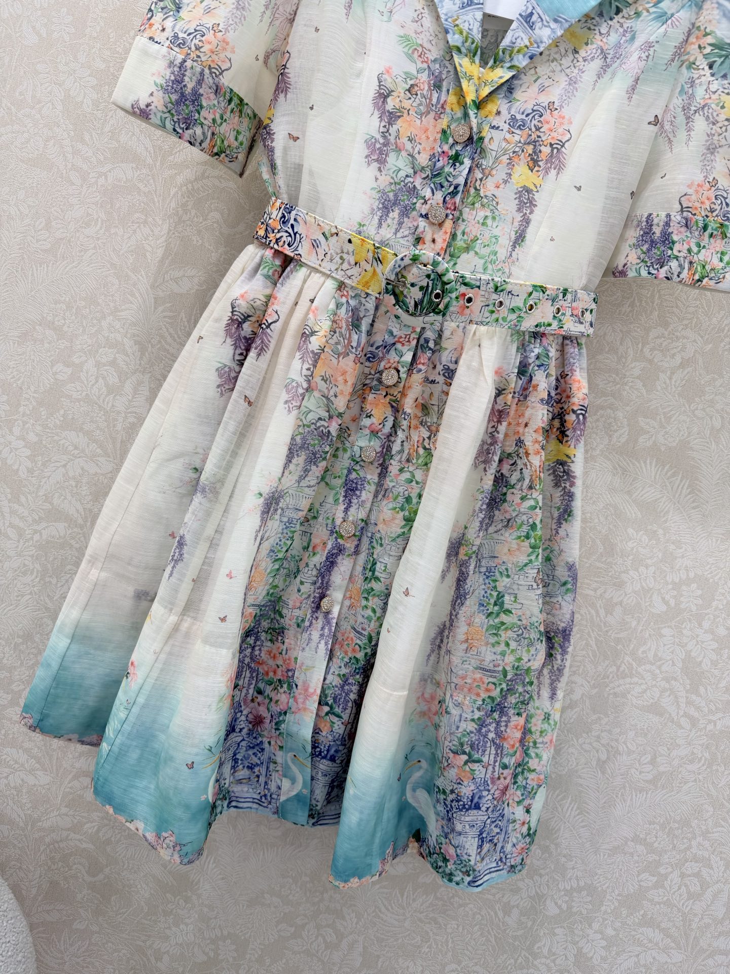 Details: Early Spring Two - piece Dress, Short with Floral Pattern, Showing Vitality. High - end Custom, Fine Workmanship