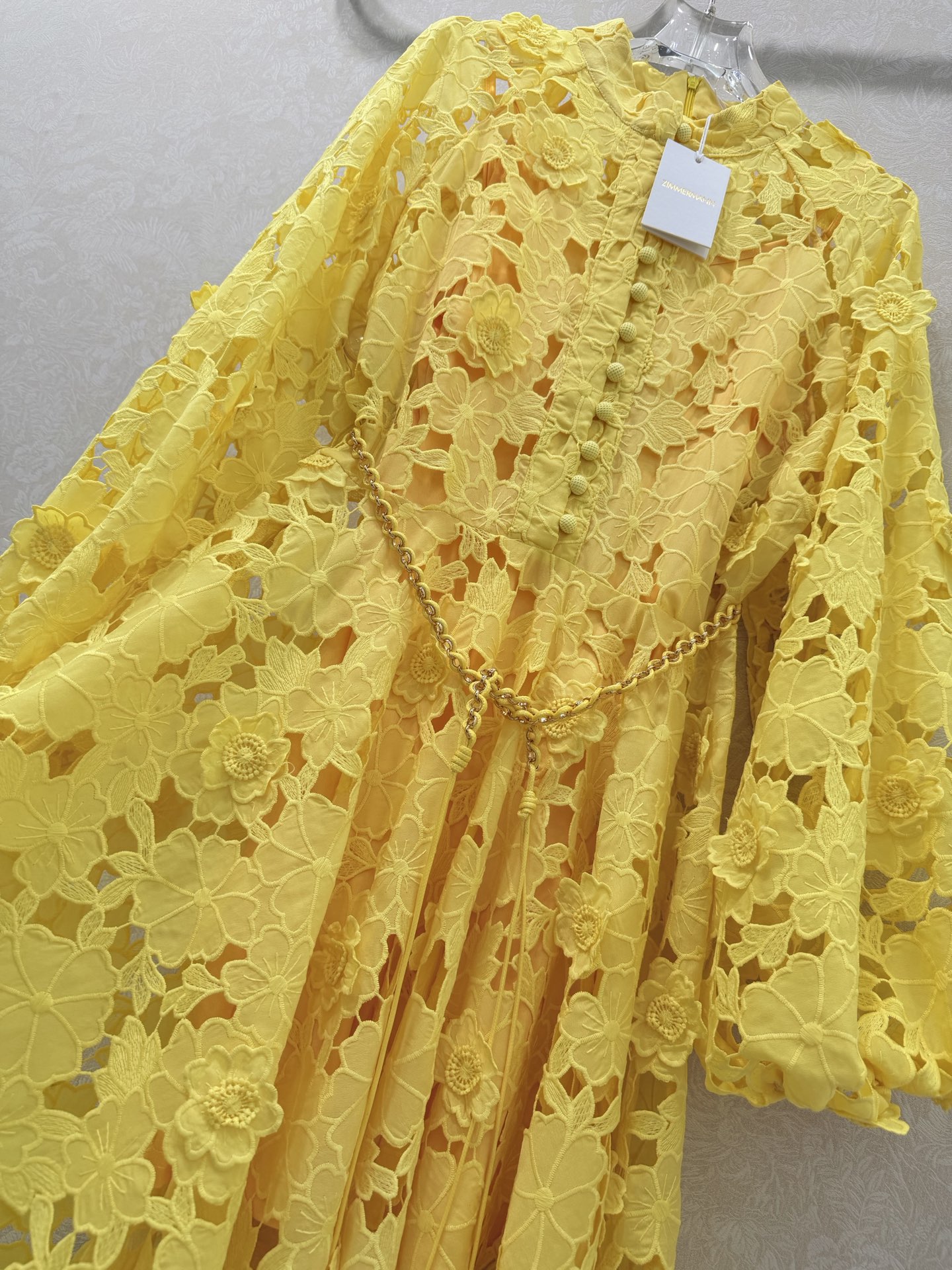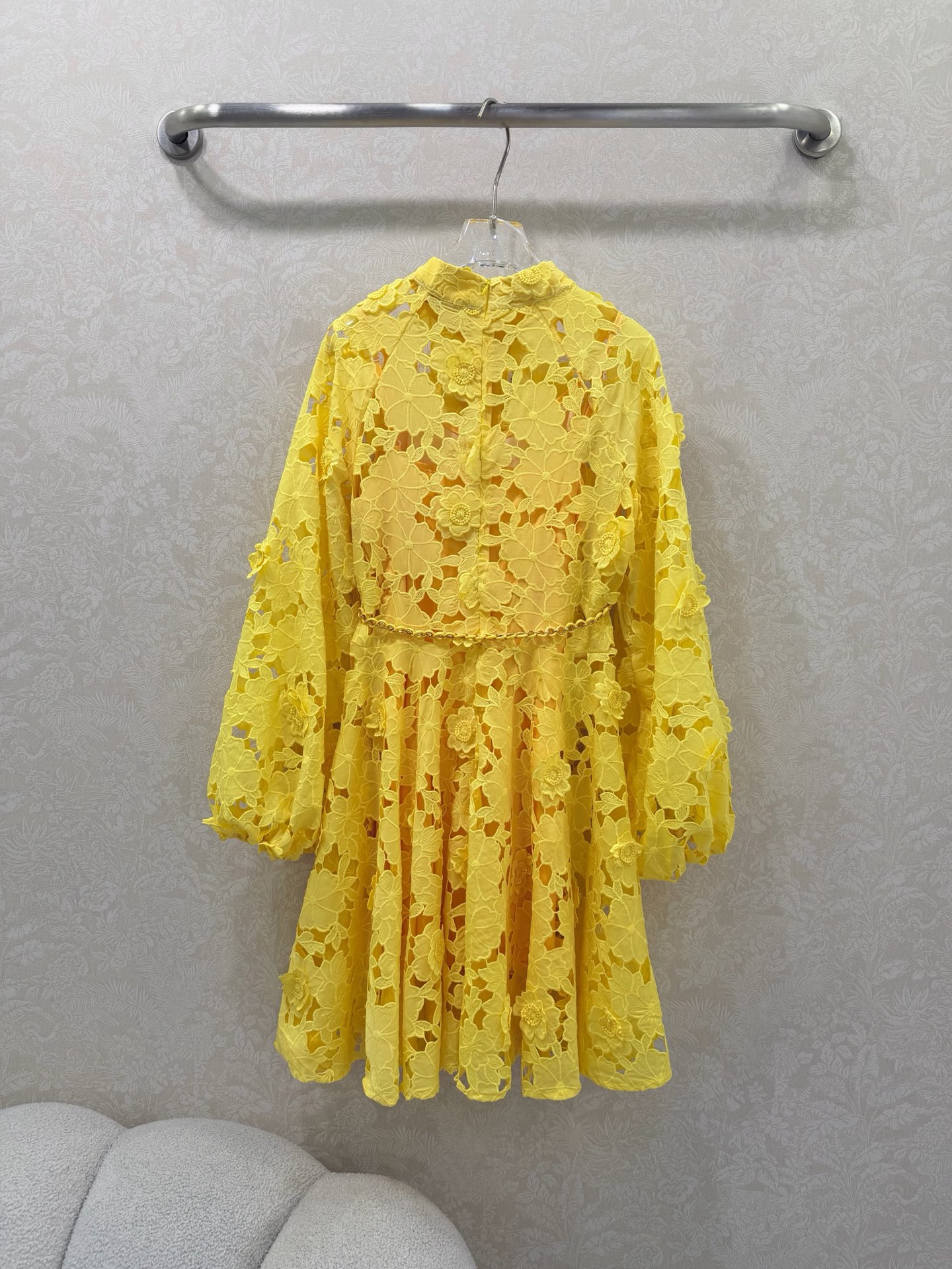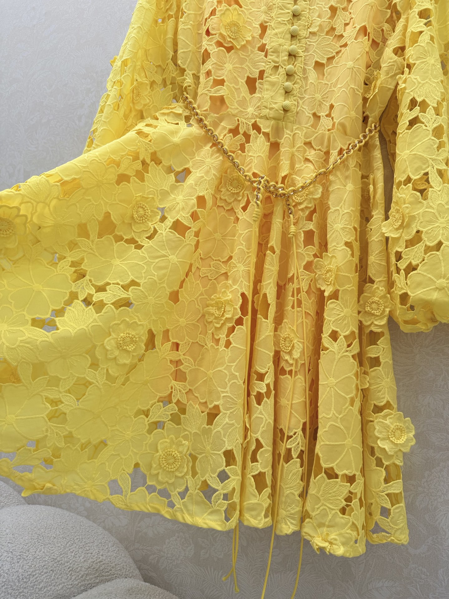 Details: New ruffled collar water-soluble flower dress with single-row buttons, delicate and elegant. High-end customization, fine workmanship