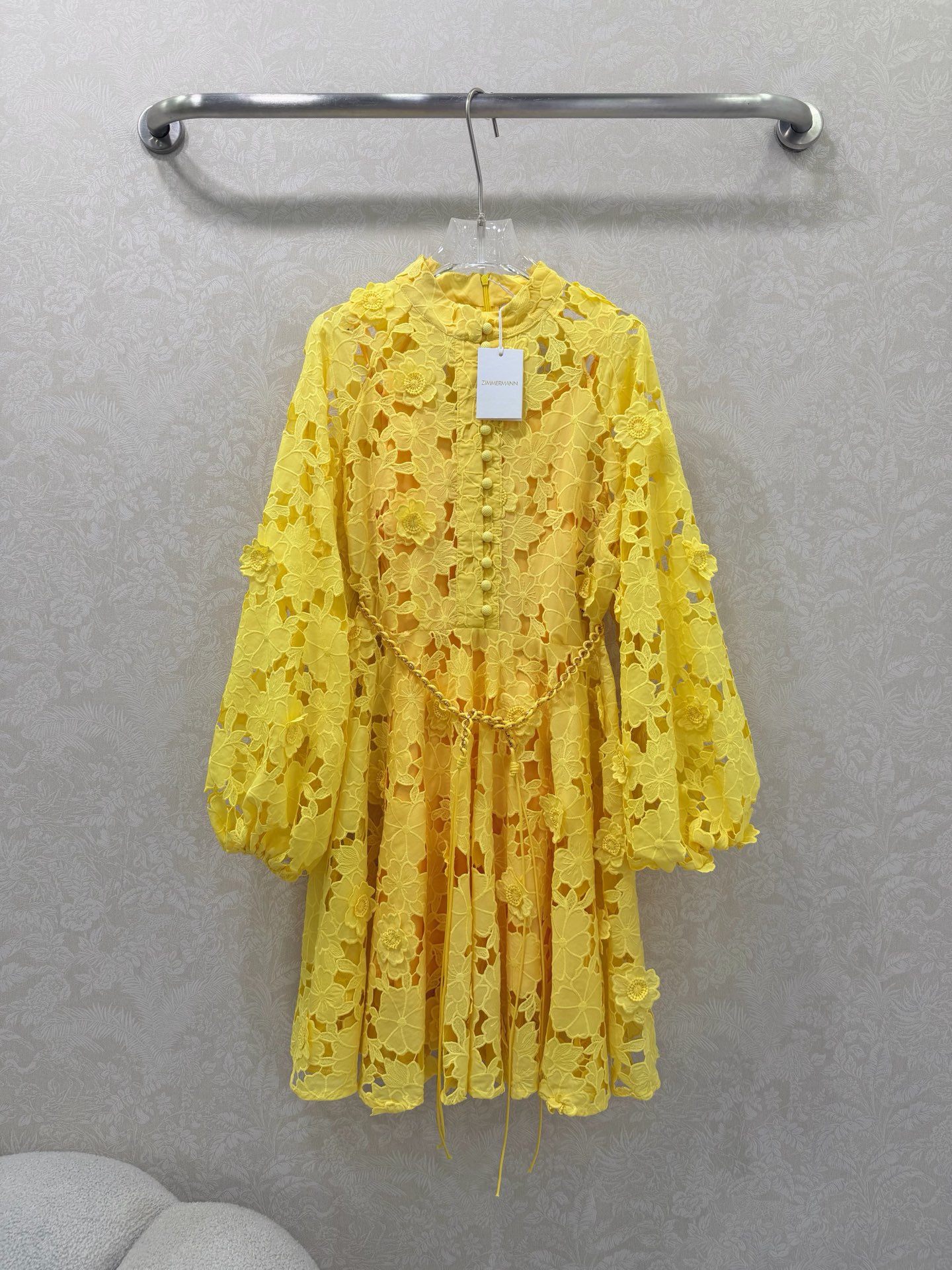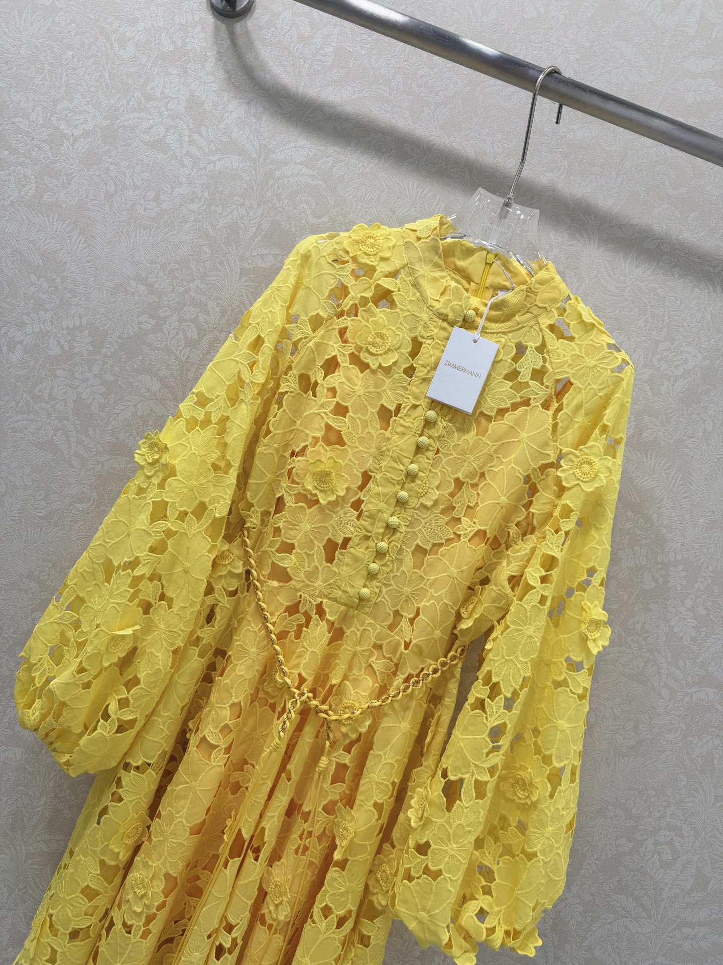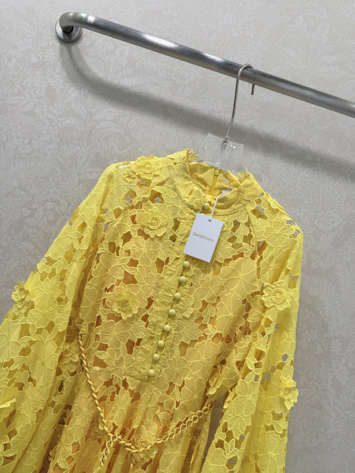 Details: New ruffled collar water-soluble flower dress with single-row buttons, delicate and elegant. High-end customization, fine workmanship