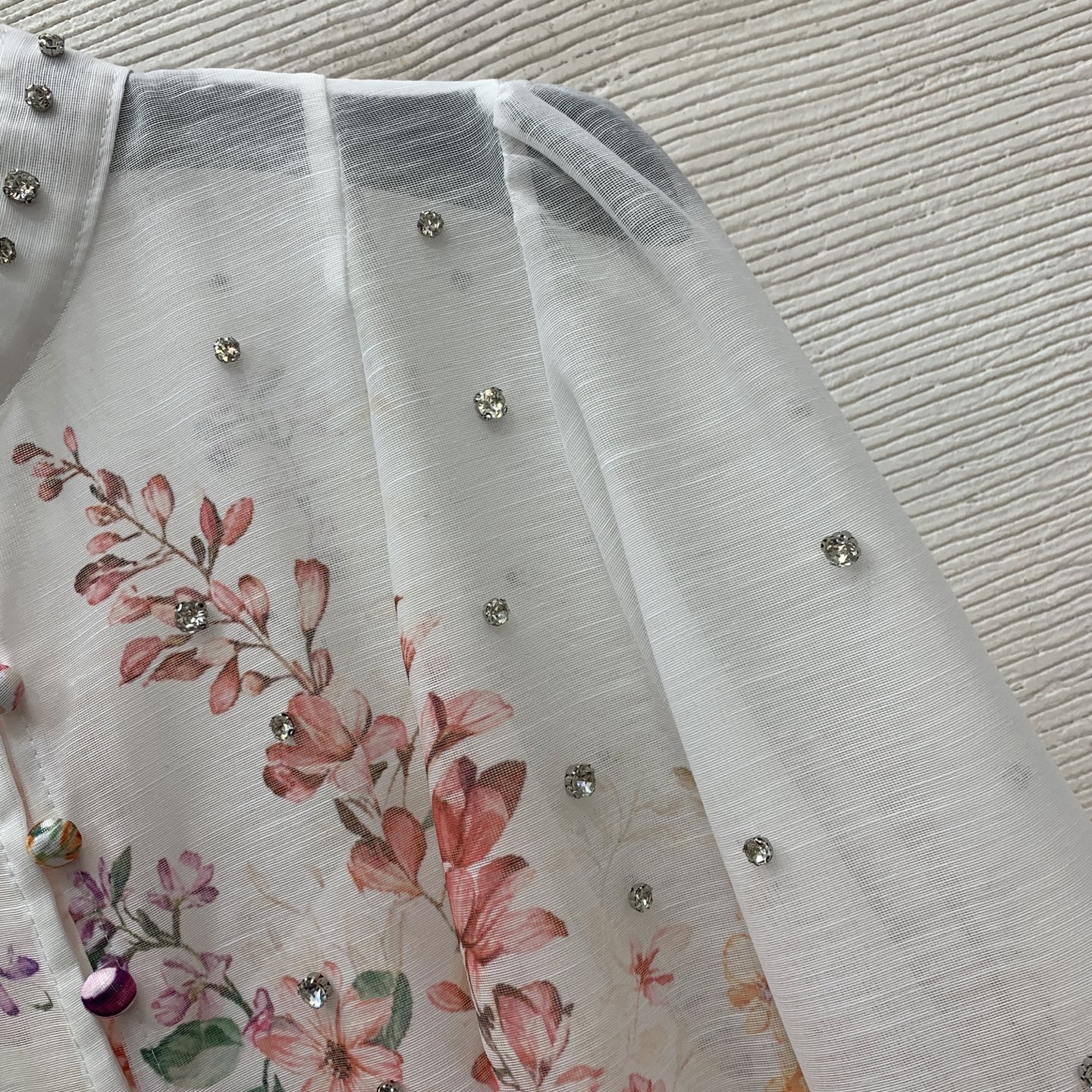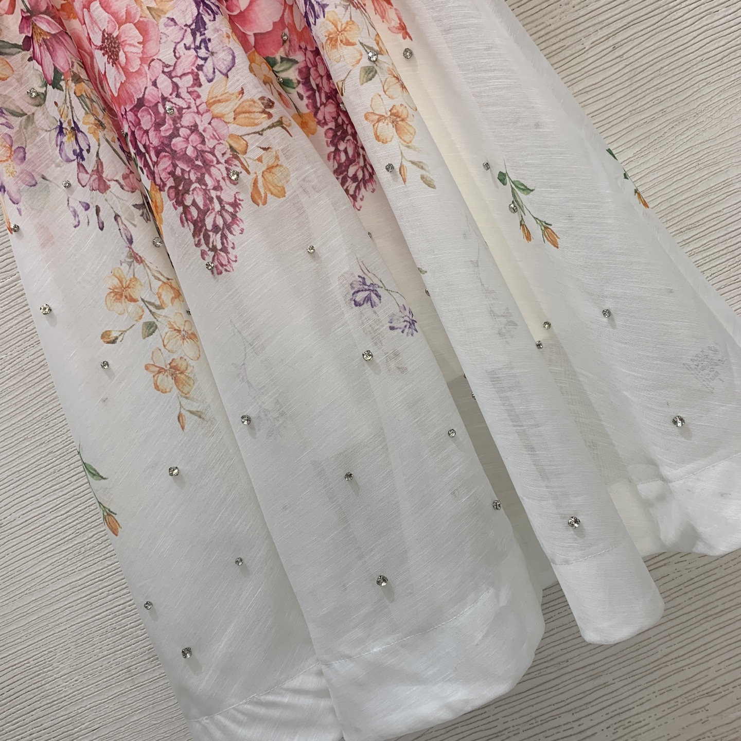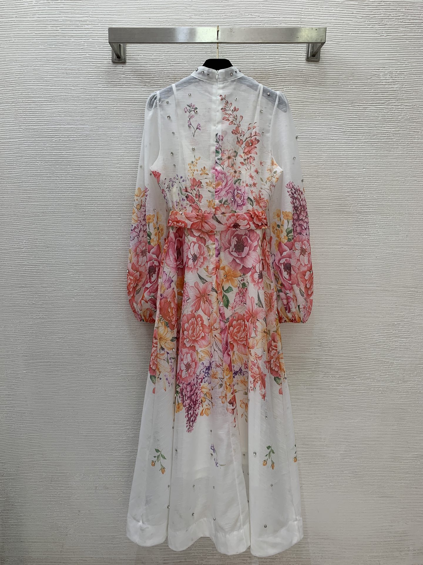Details: High-end custom diamond-embellished floral-print dress with belt, M size
