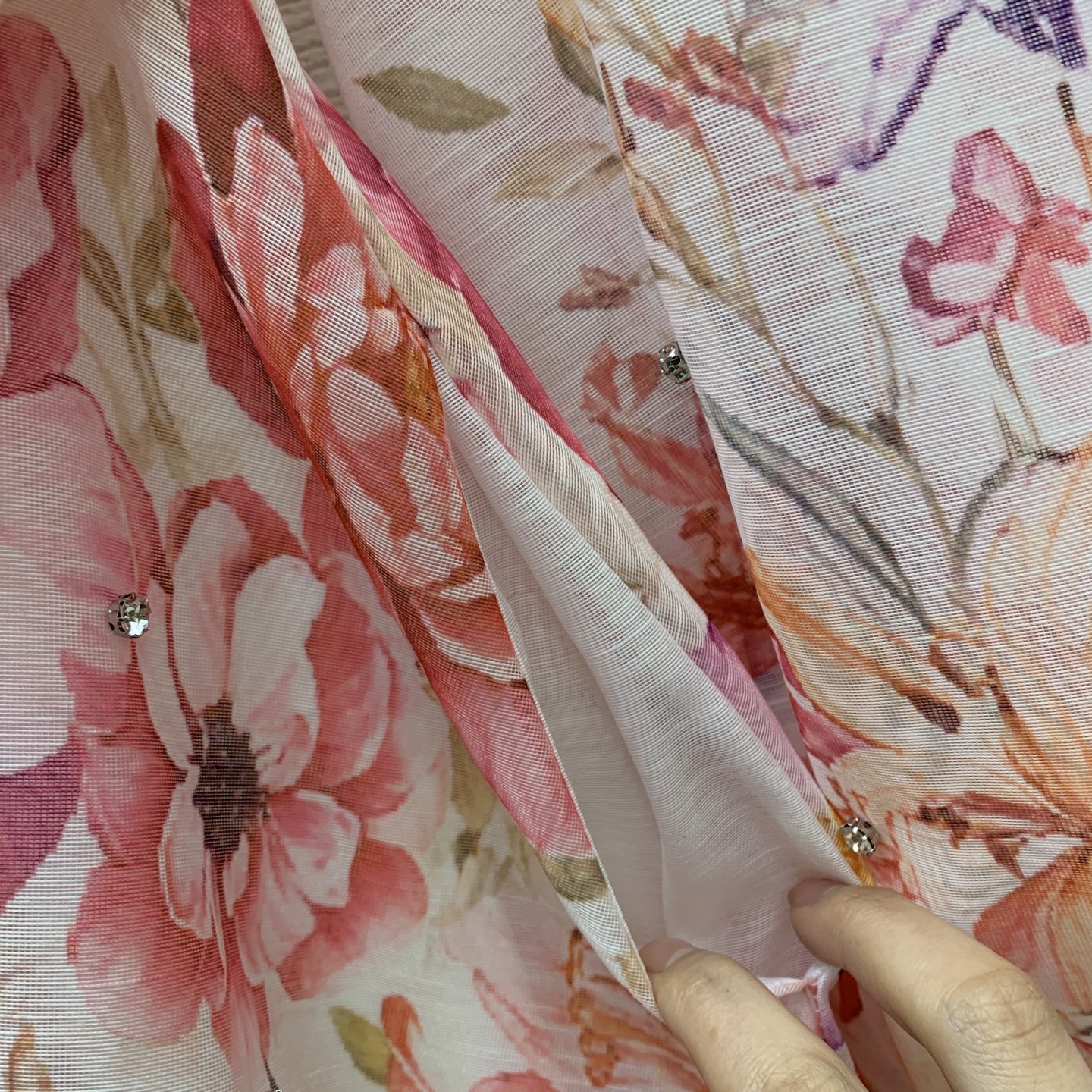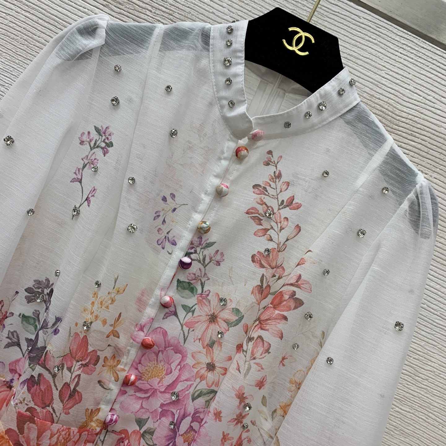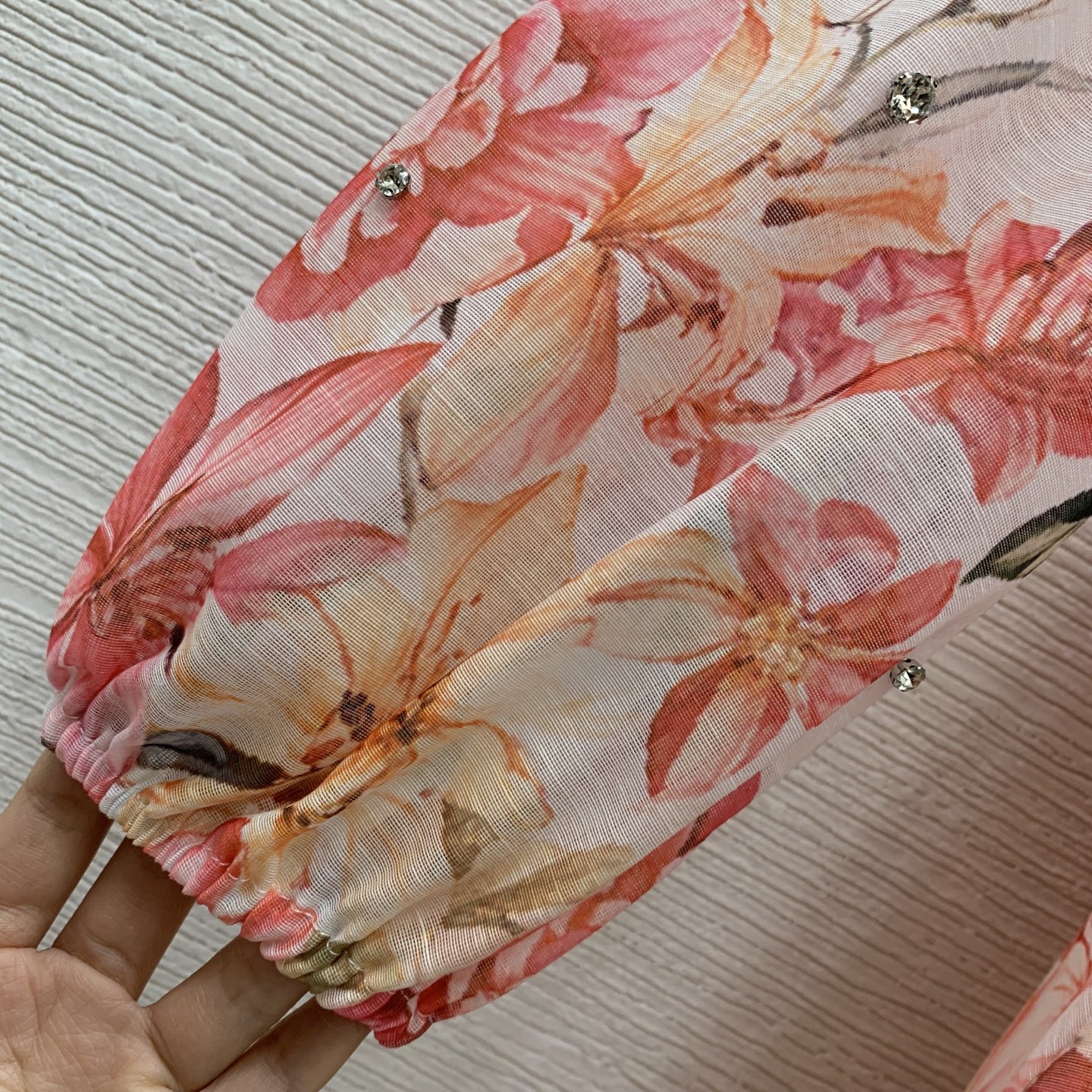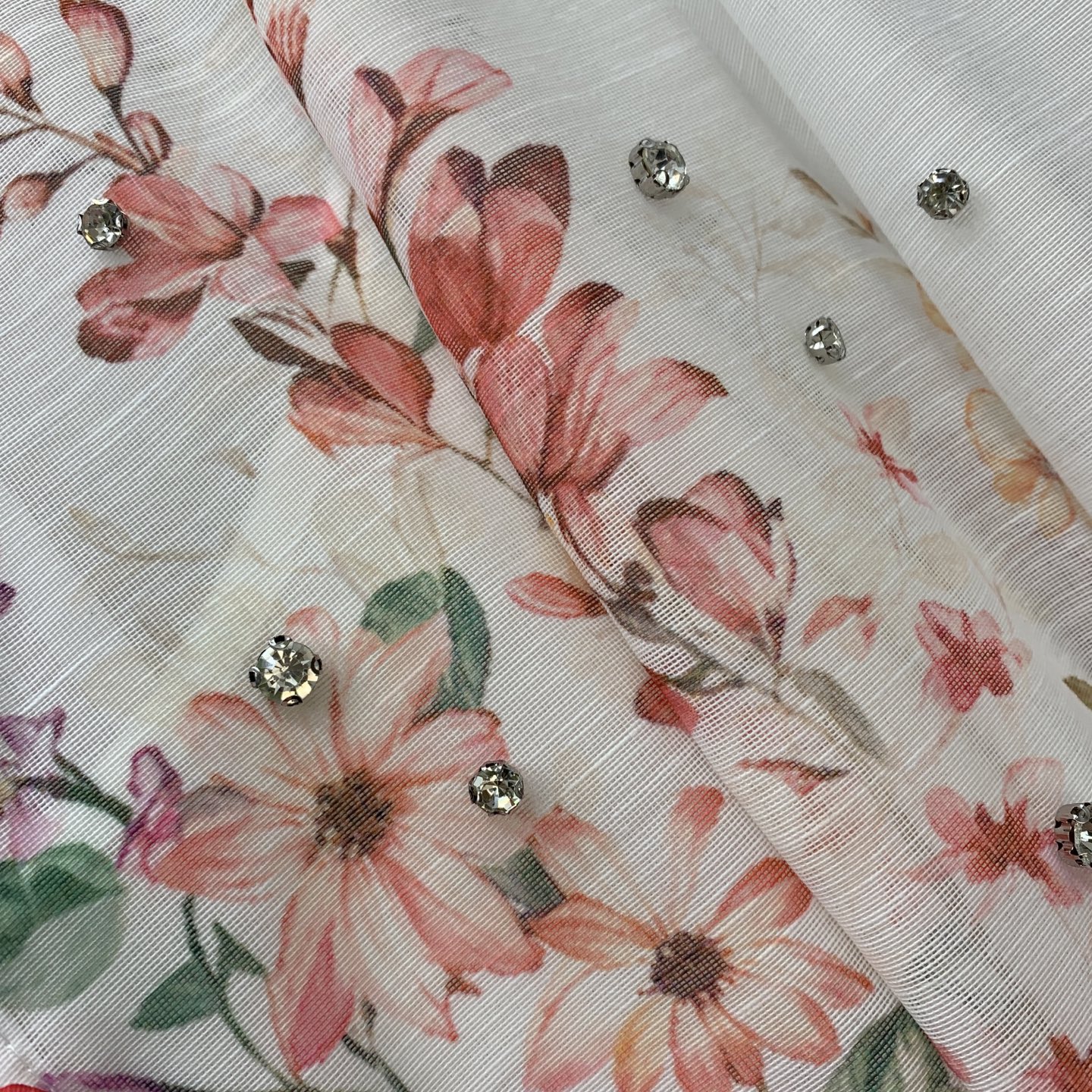Details: High-end custom diamond-embellished floral-print dress with belt, M size