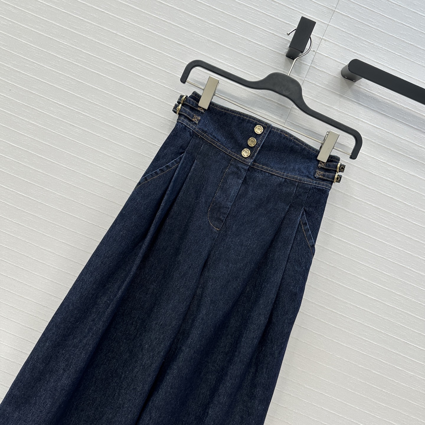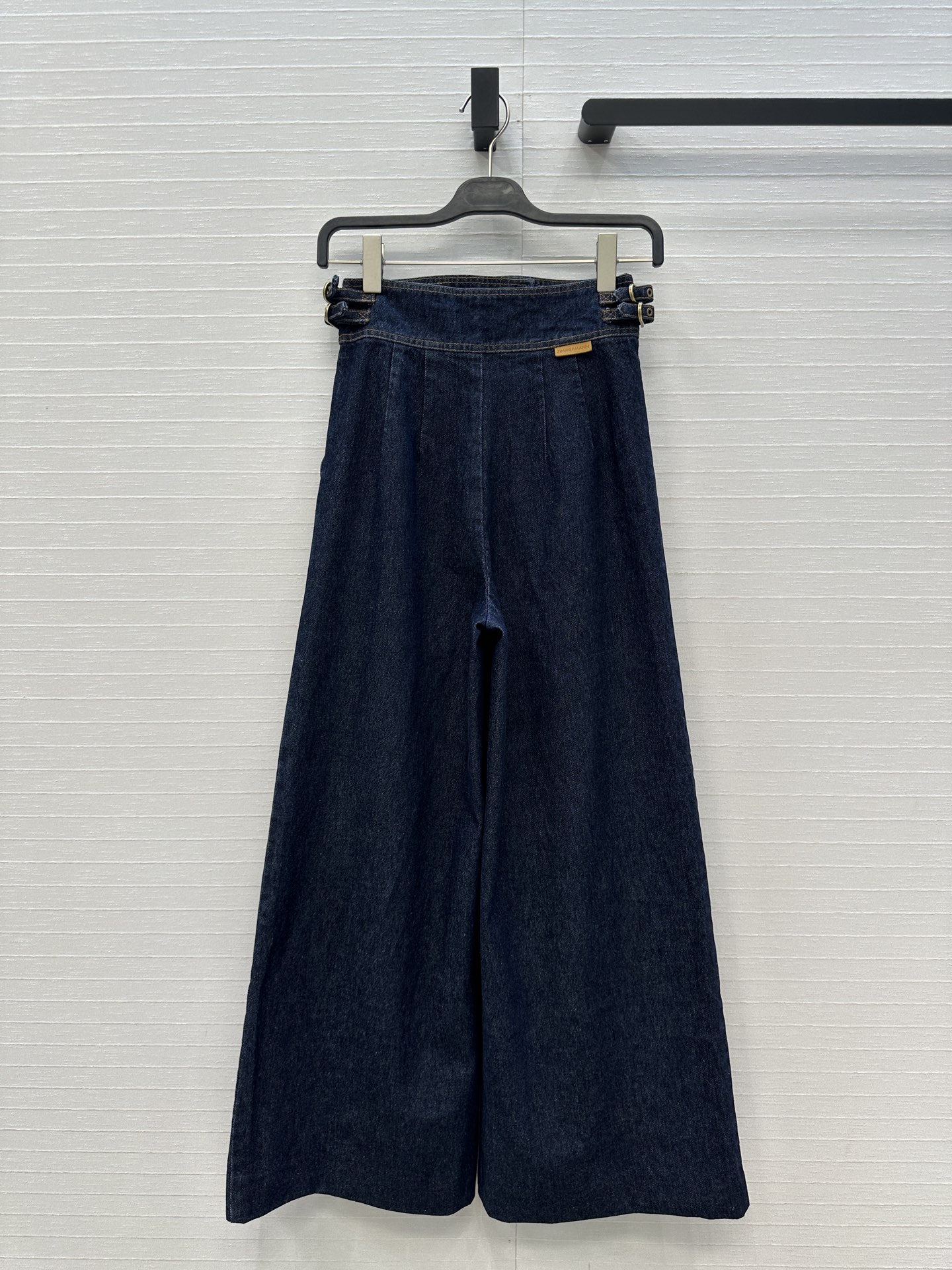 Details: Popular denim wide-leg pants with pleats and 3-buttons, high-waisted, suitable for daily wear. High-end customization, meticulous craftsmanship