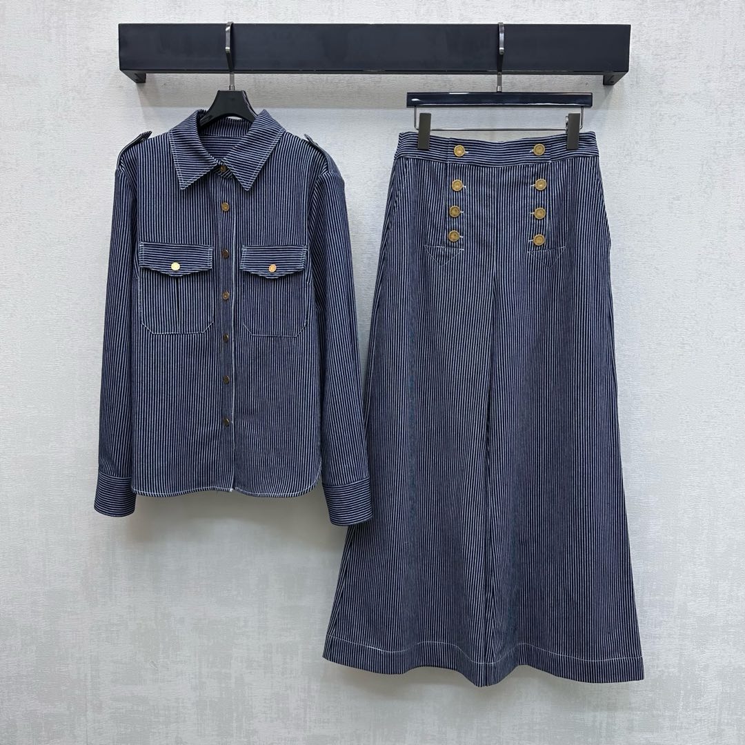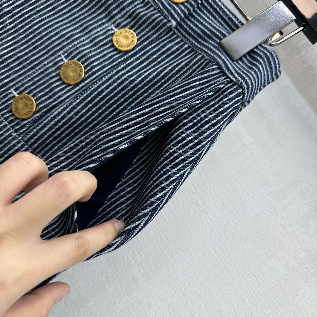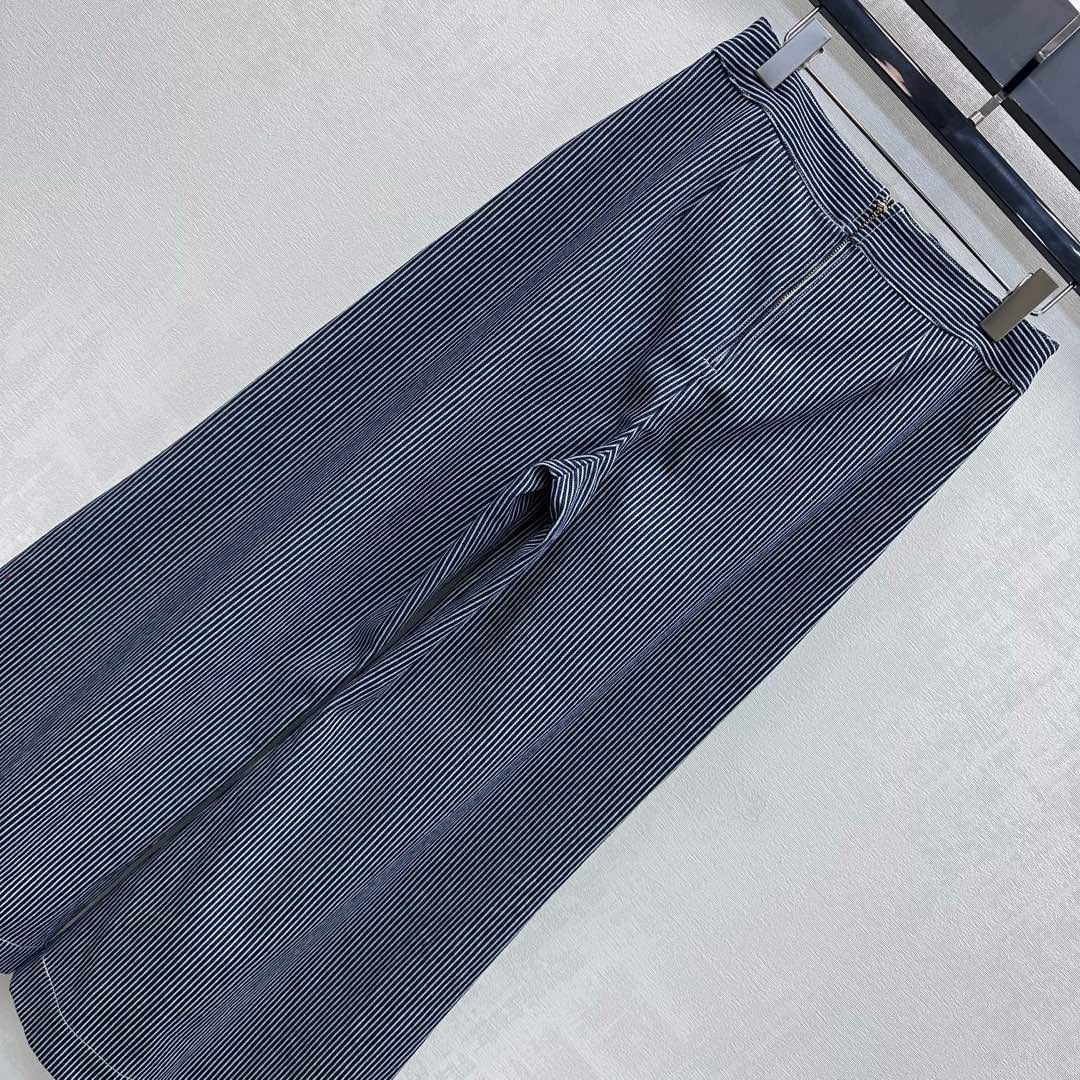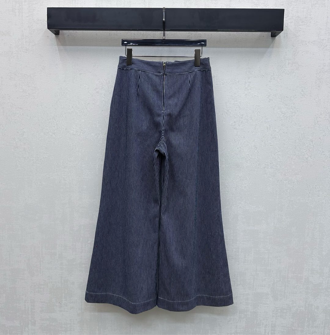 Details: New striped cotton straight - leg pants with button details. High - end customization, fine workmanship