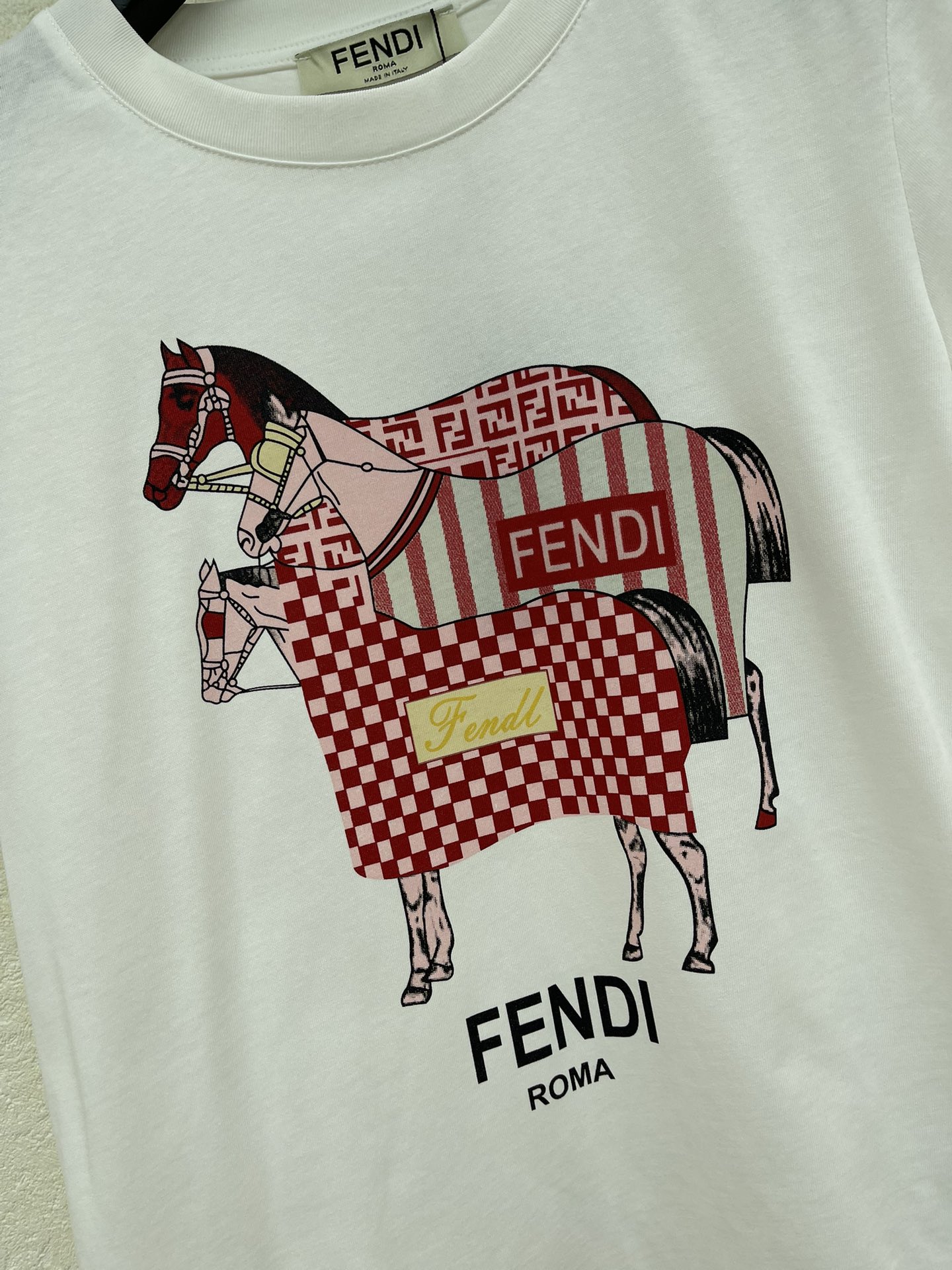 Details: Early spring round neck horse racing printed short-sleeved T-shirt with brand logo, high-class appearance