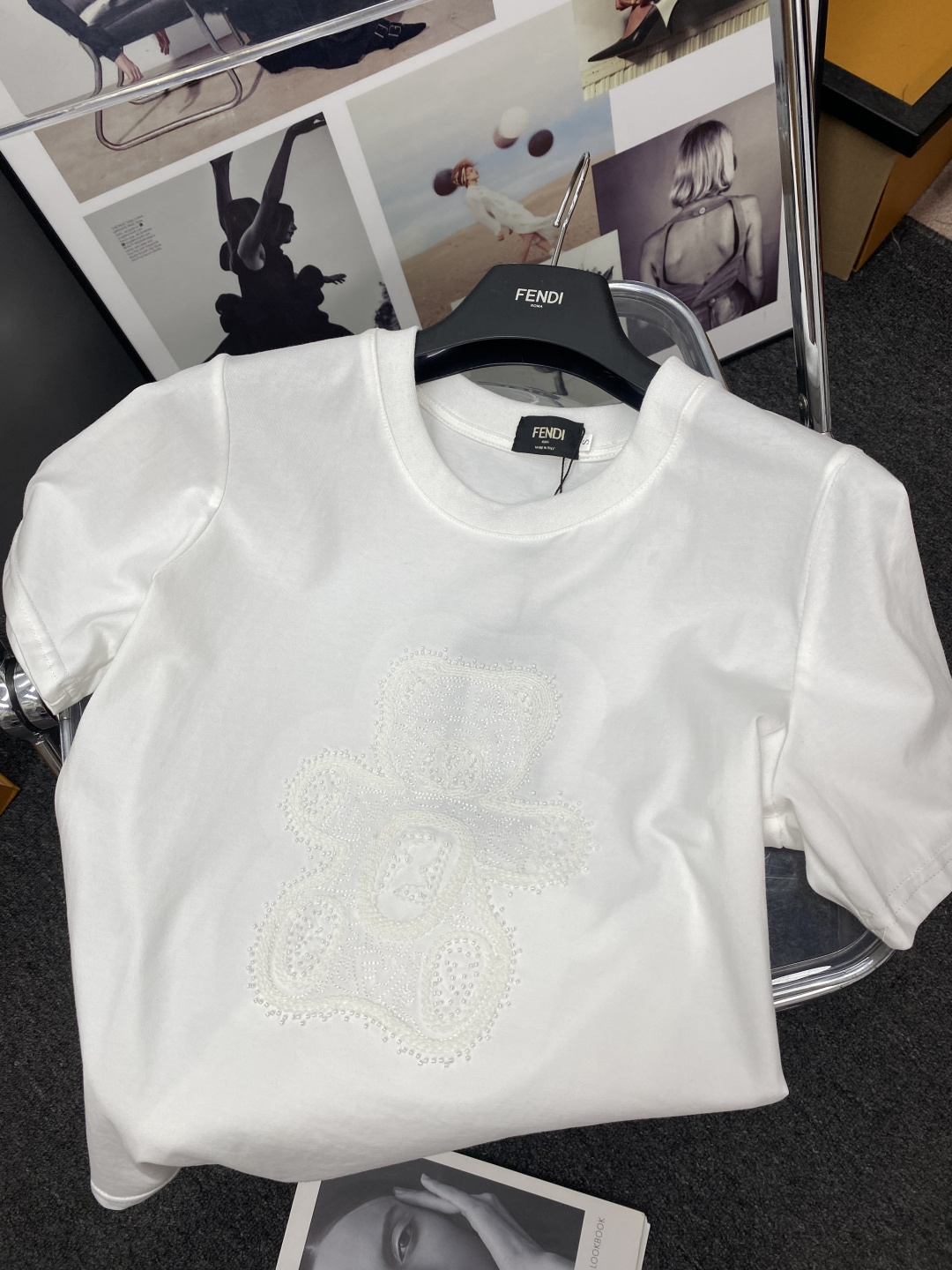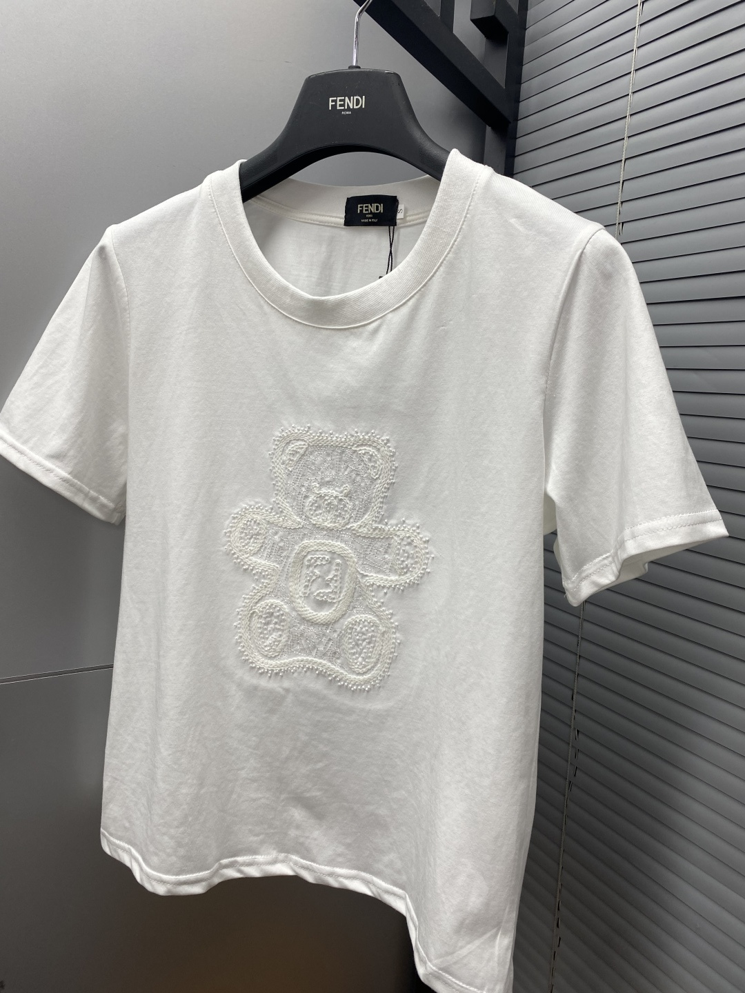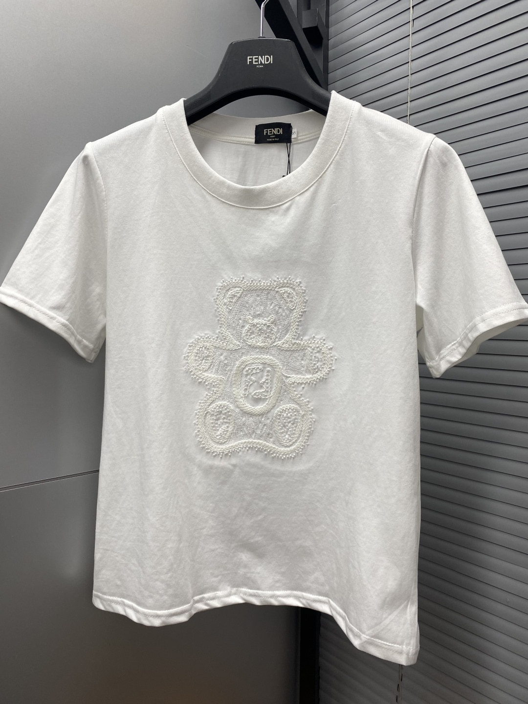 here:home > WOMENS > Fendi > Top Fendi (W) > Fendi FENDI-Inspired Beaded Embroidered Short Sleeve in Minimalist Chic Style