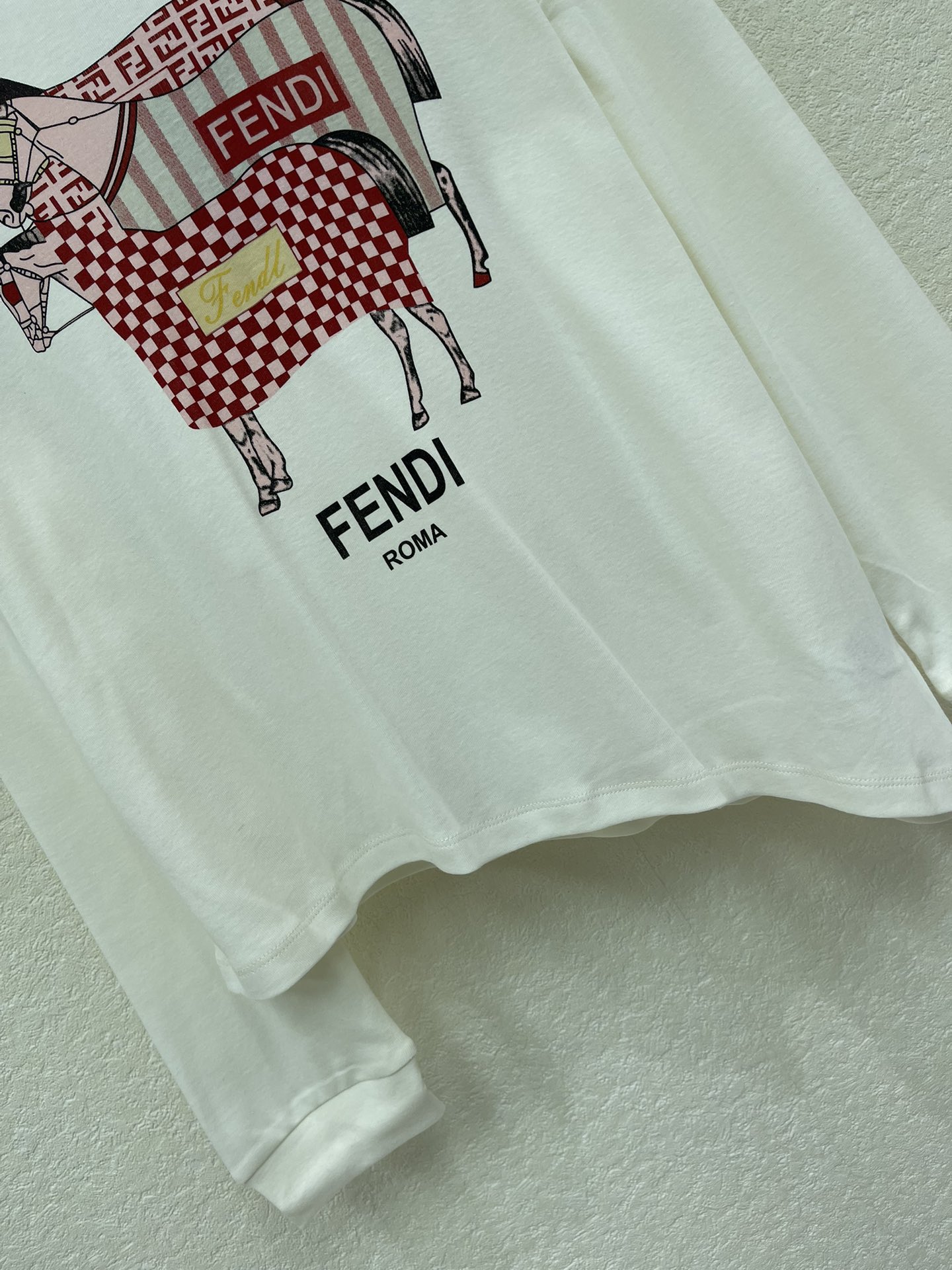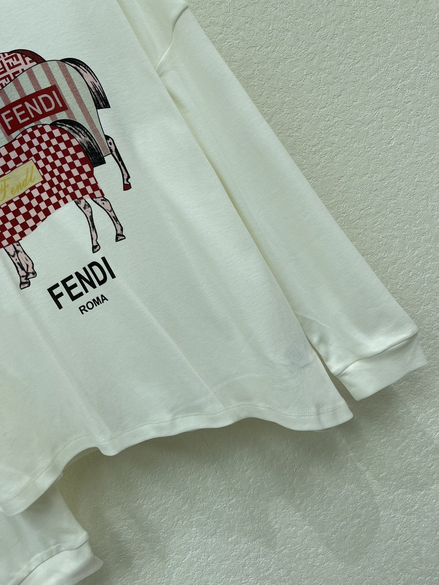 Details: Irregular long-sleeved top with early spring print, featuring brand patterns, suitable for various occasions and flattering for the figure.