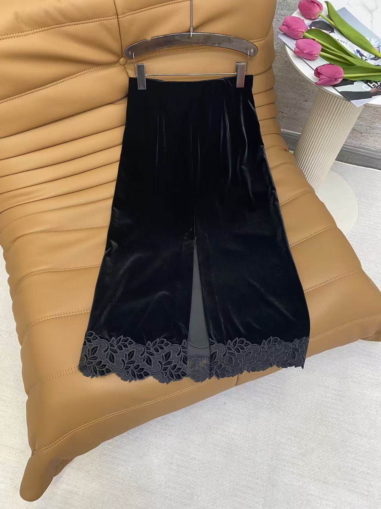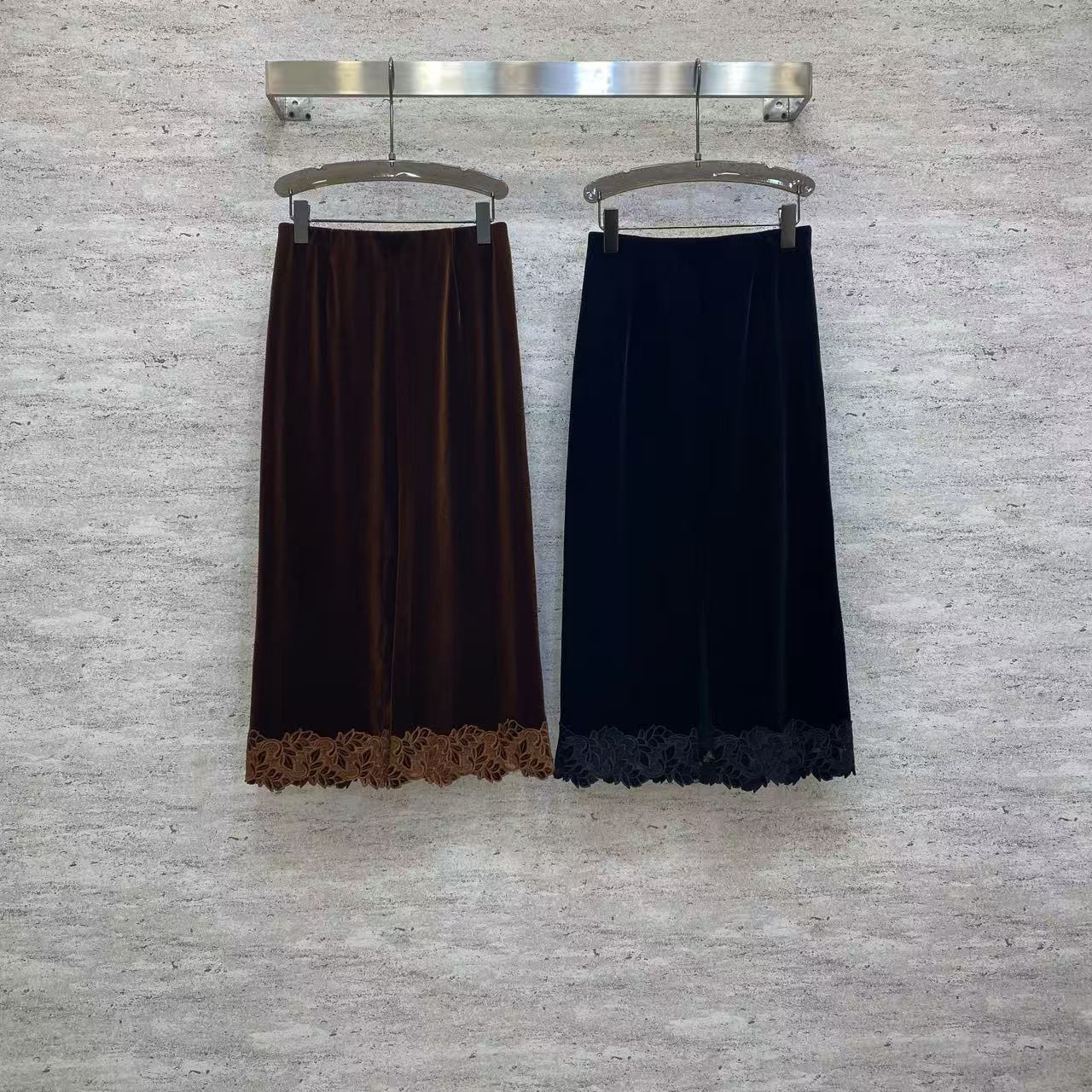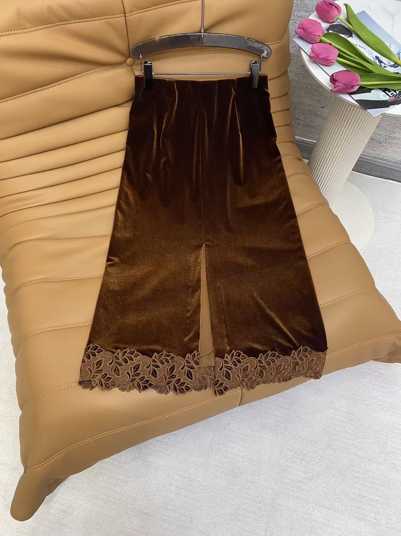 Details: Spring Velvet Half Skirt, Korean Velvet, Metal Buckle Waist, Lace Hem, High-end Customization