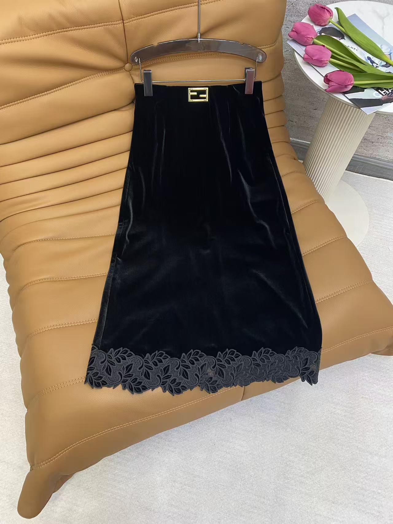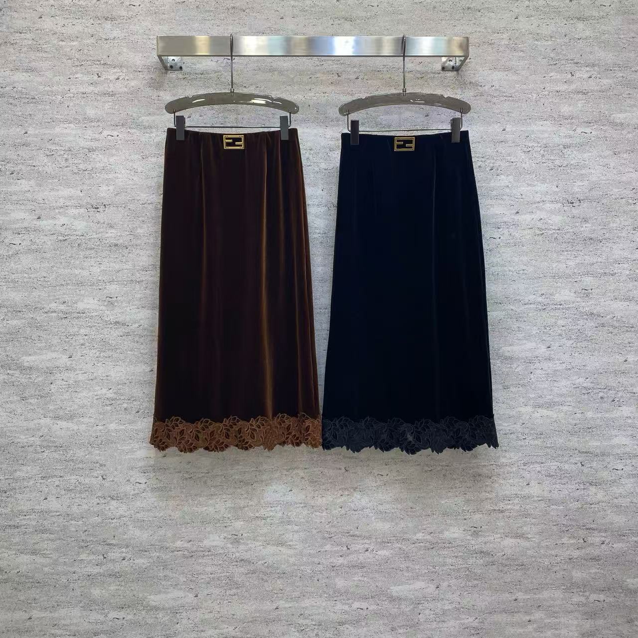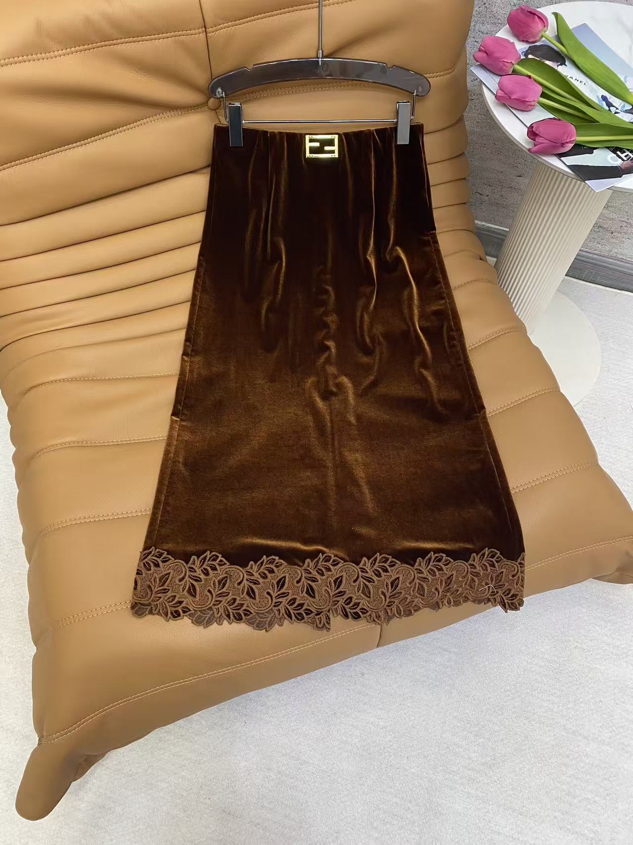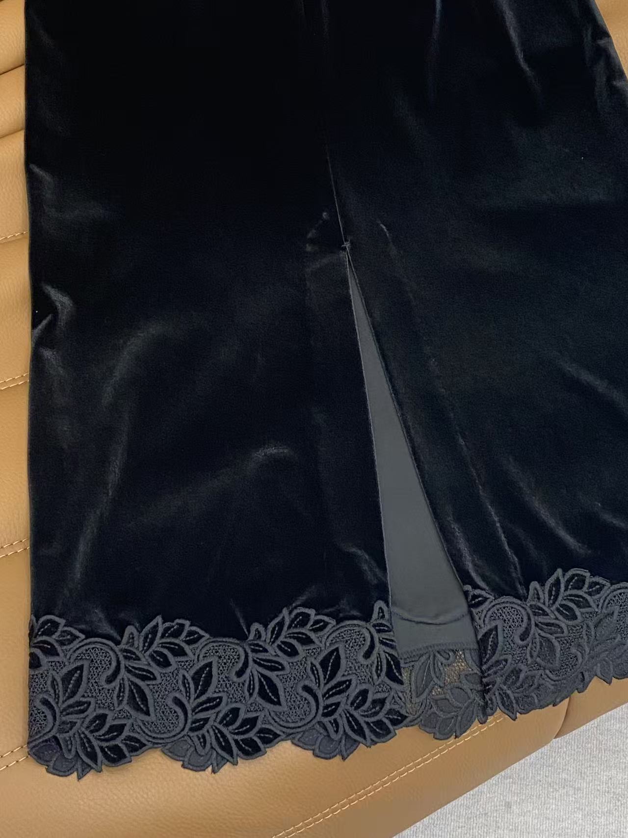 Details: Spring Velvet Half Skirt, Korean Velvet, Metal Buckle Waist, Lace Hem, High-end Customization
