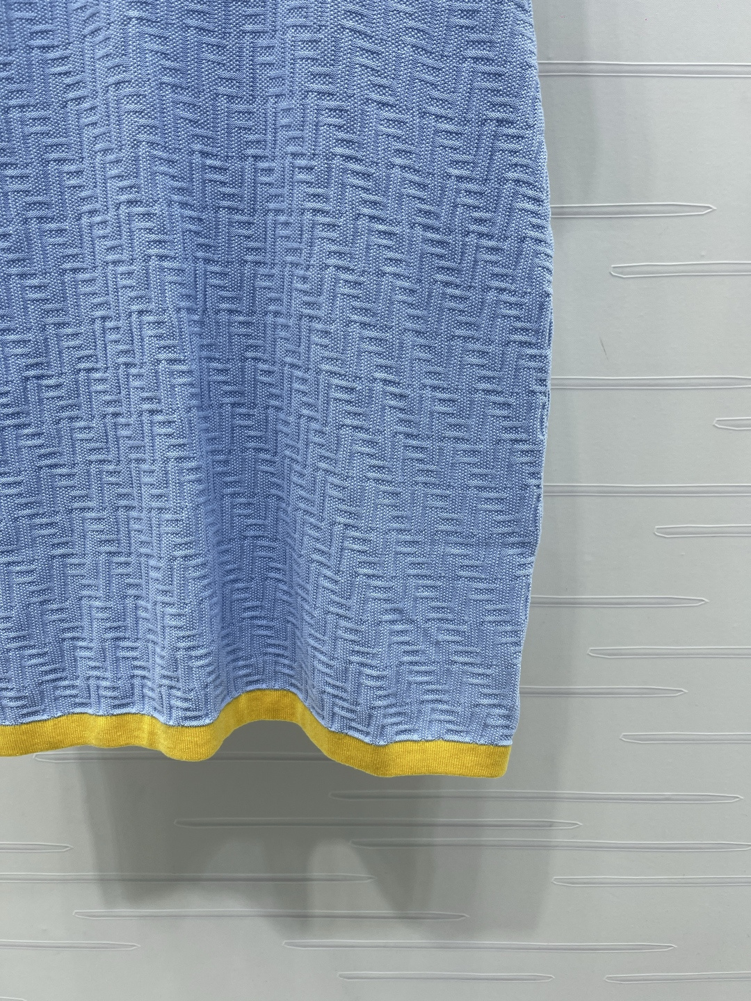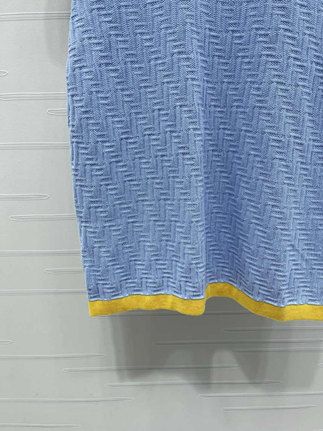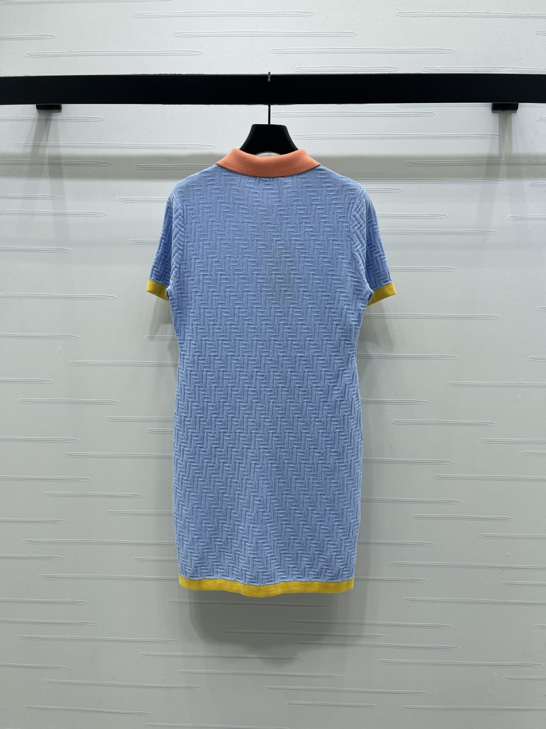 Details: Early Spring Knitted Short-Sleeved Dress, Custom Silk-Wool, Color-Blocking, Double F Logo. High-end Customization, Fine Craftsmanship