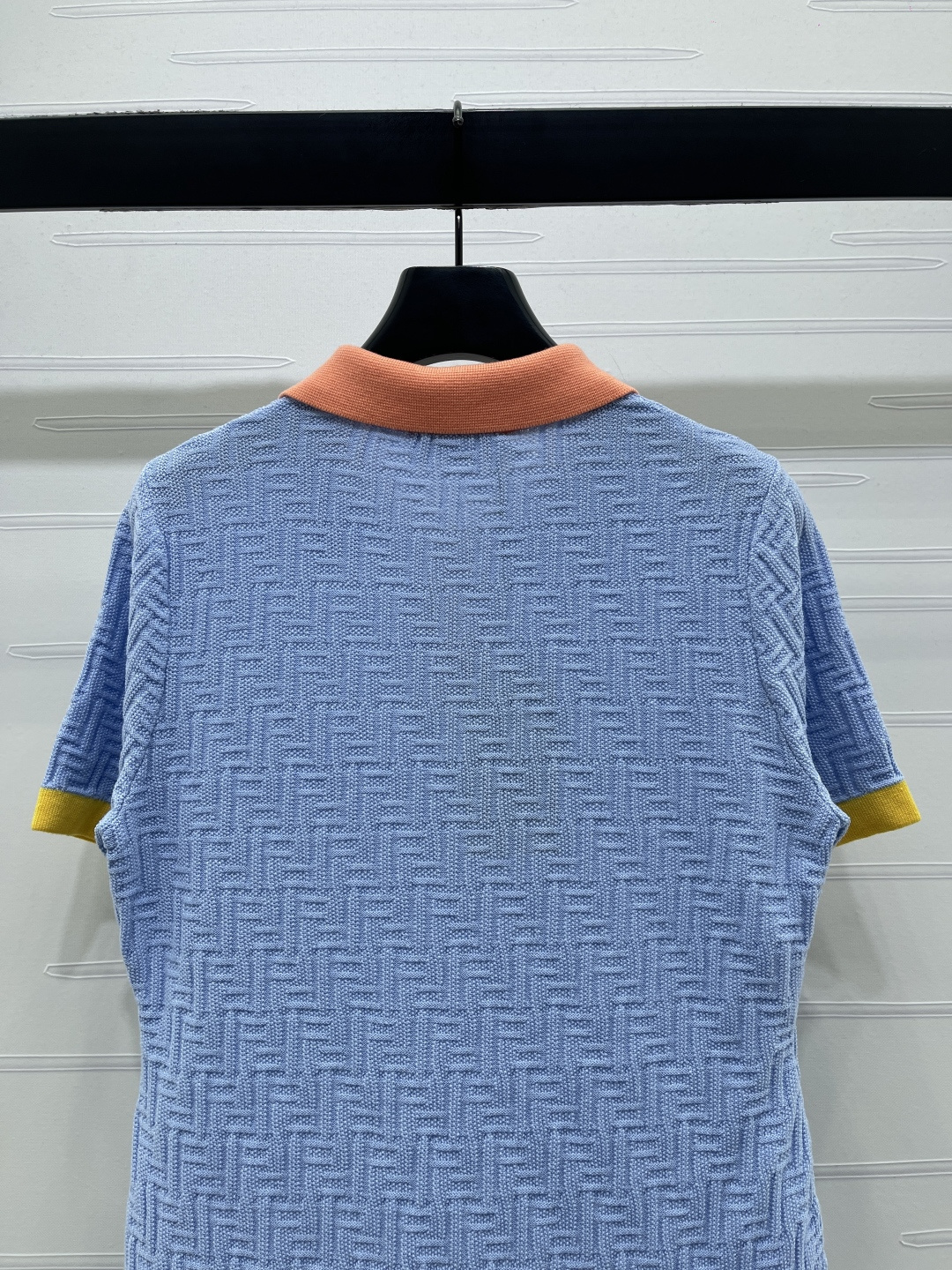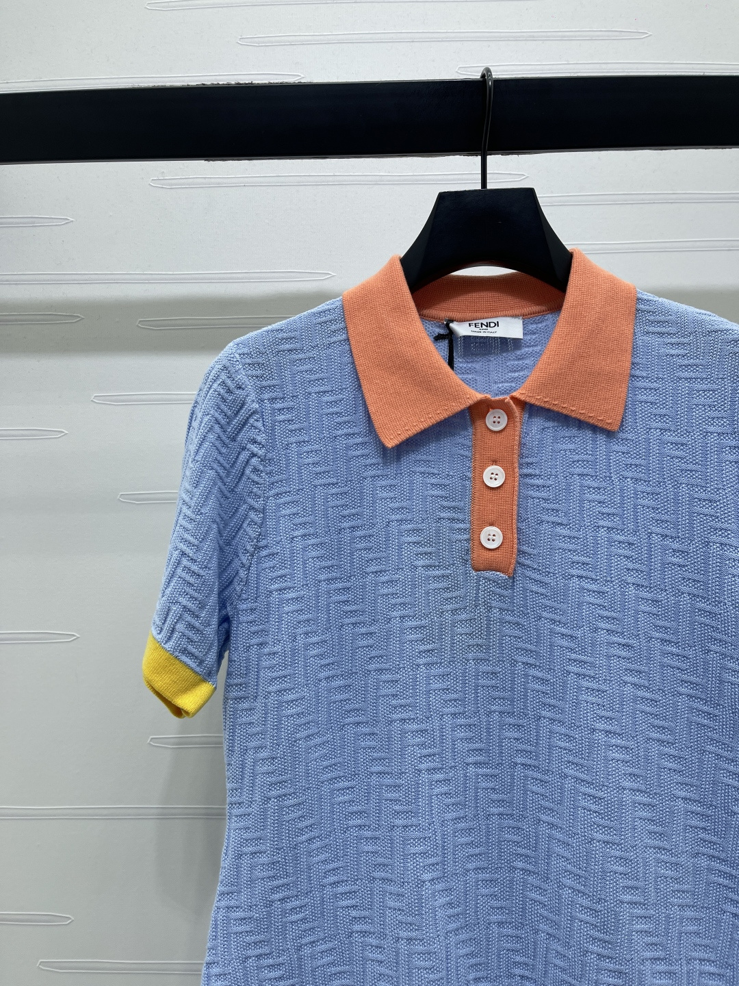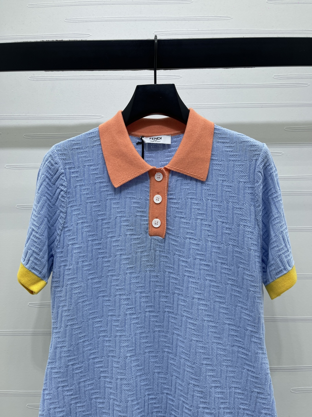 Details: Early Spring Knitted Short-Sleeved Dress, Custom Silk-Wool, Color-Blocking, Double F Logo. High-end Customization, Fine Craftsmanship