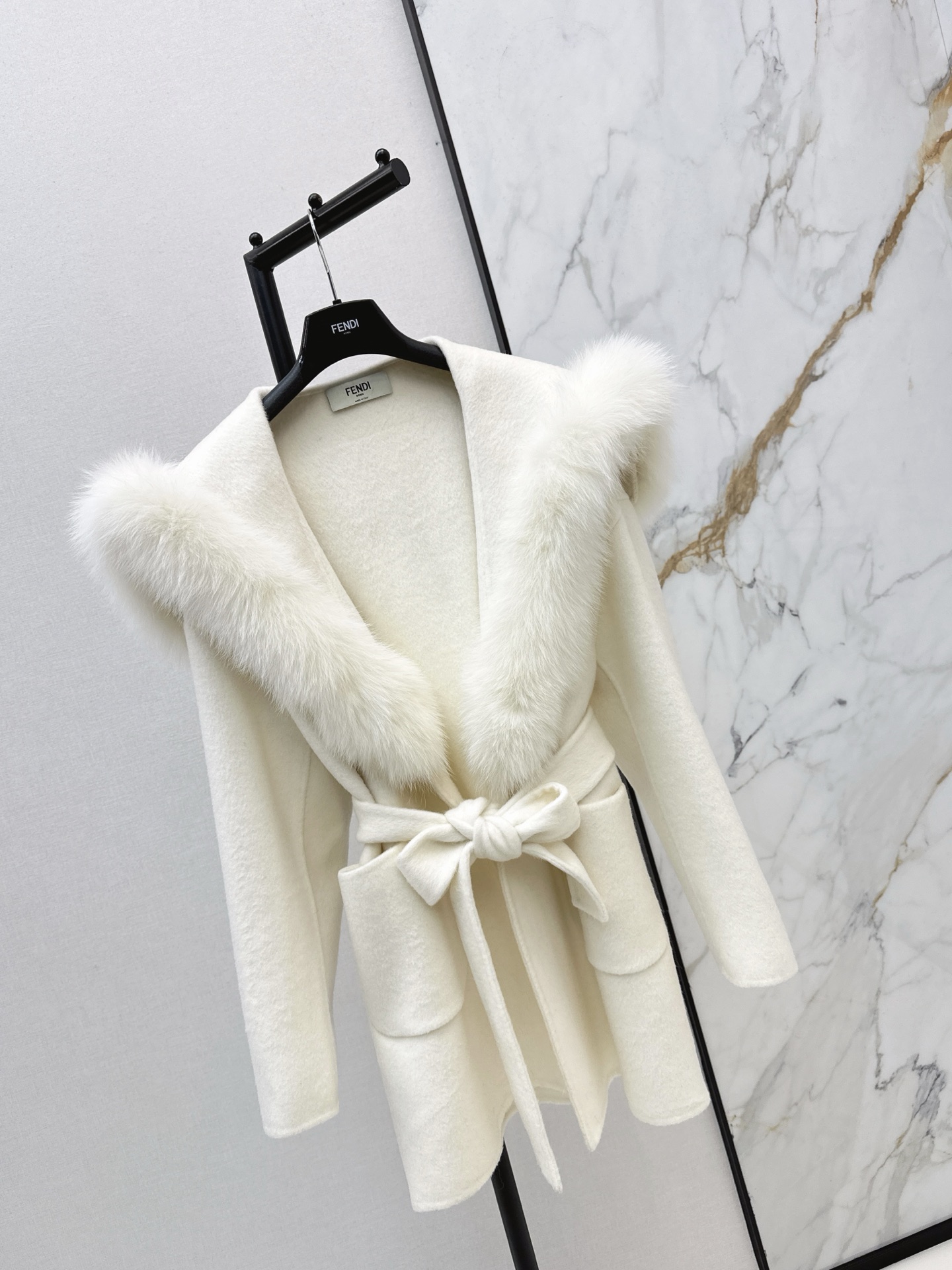 Details: Autumn and winter fox fur decorated double-faced woolen coat, elegant and stylish.