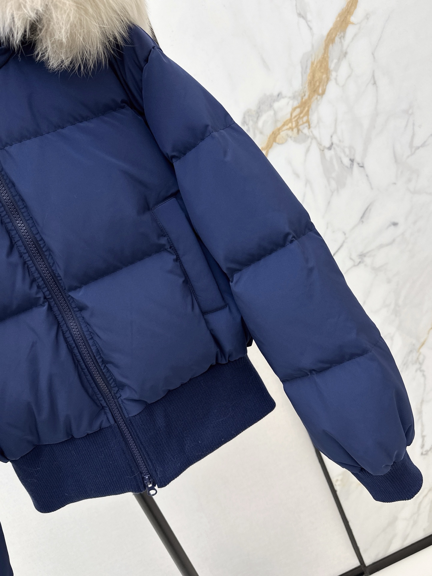 Details: Stylish short down jacket with removable fox fur collar, waterproof nylon, lightweight and warm, high-quality craftsmanship.
