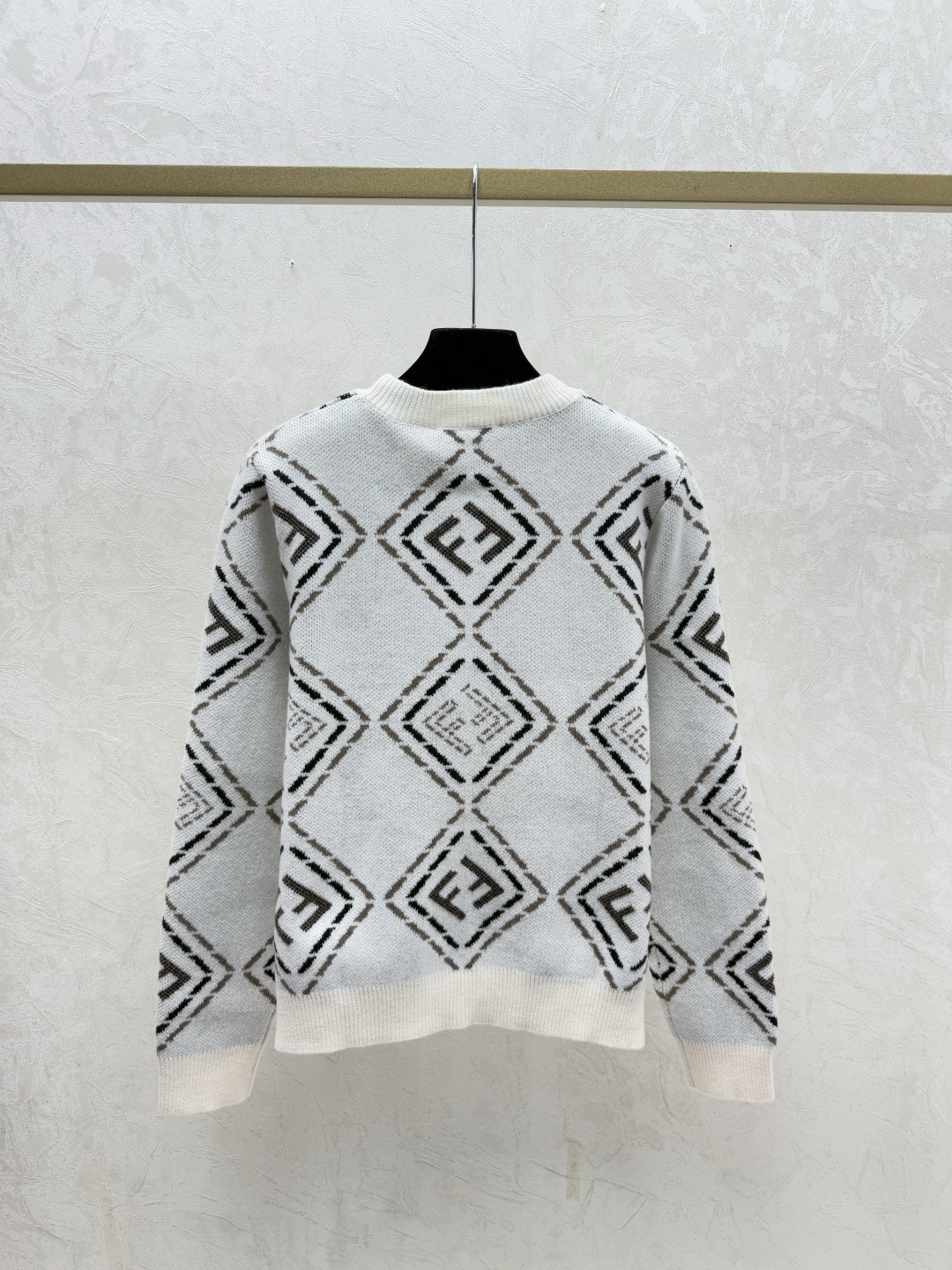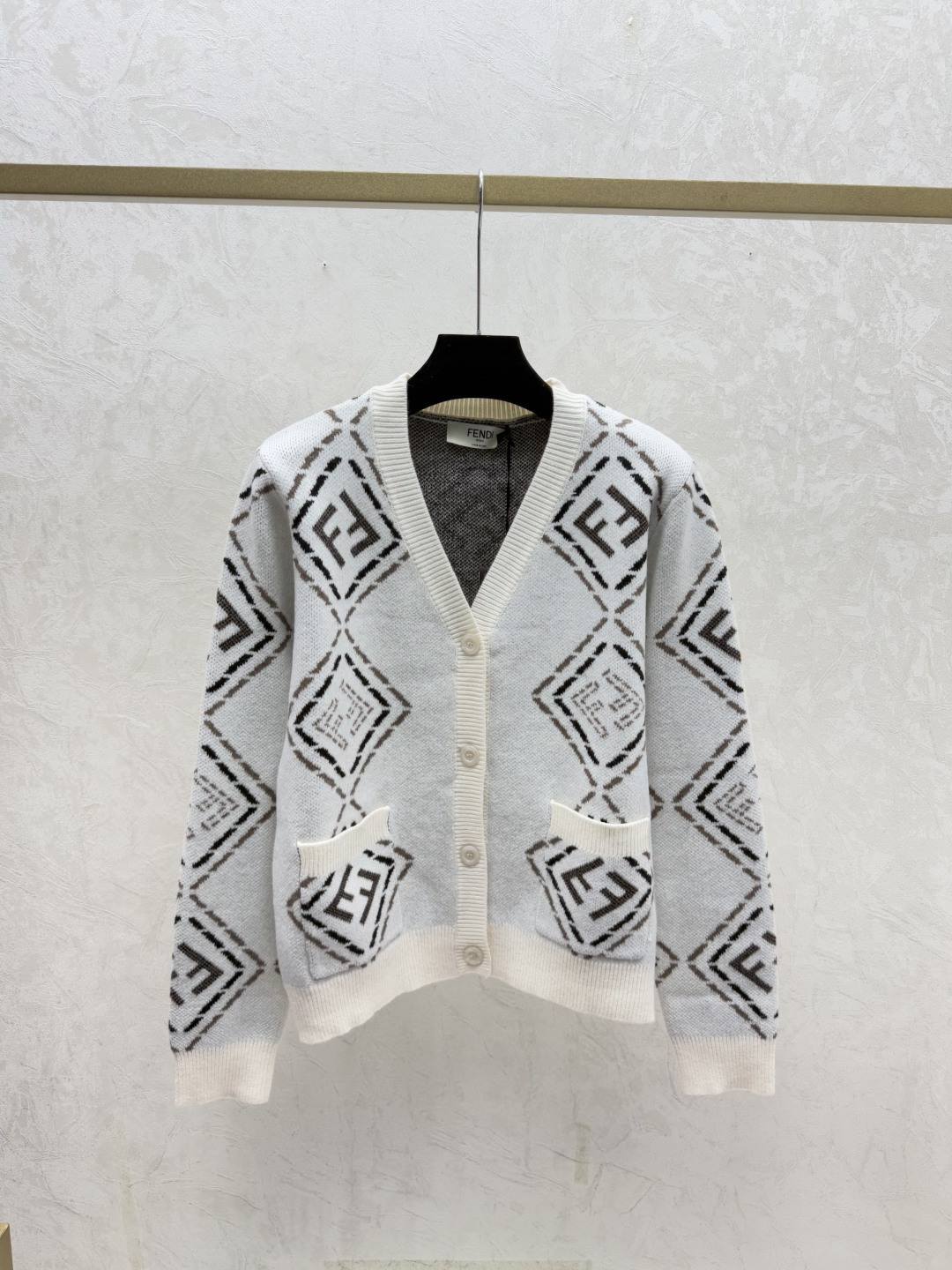 Details: Early autumn V-neck knitted cardigan with color-blocked diamond design, in white or black, sizes 36-40.