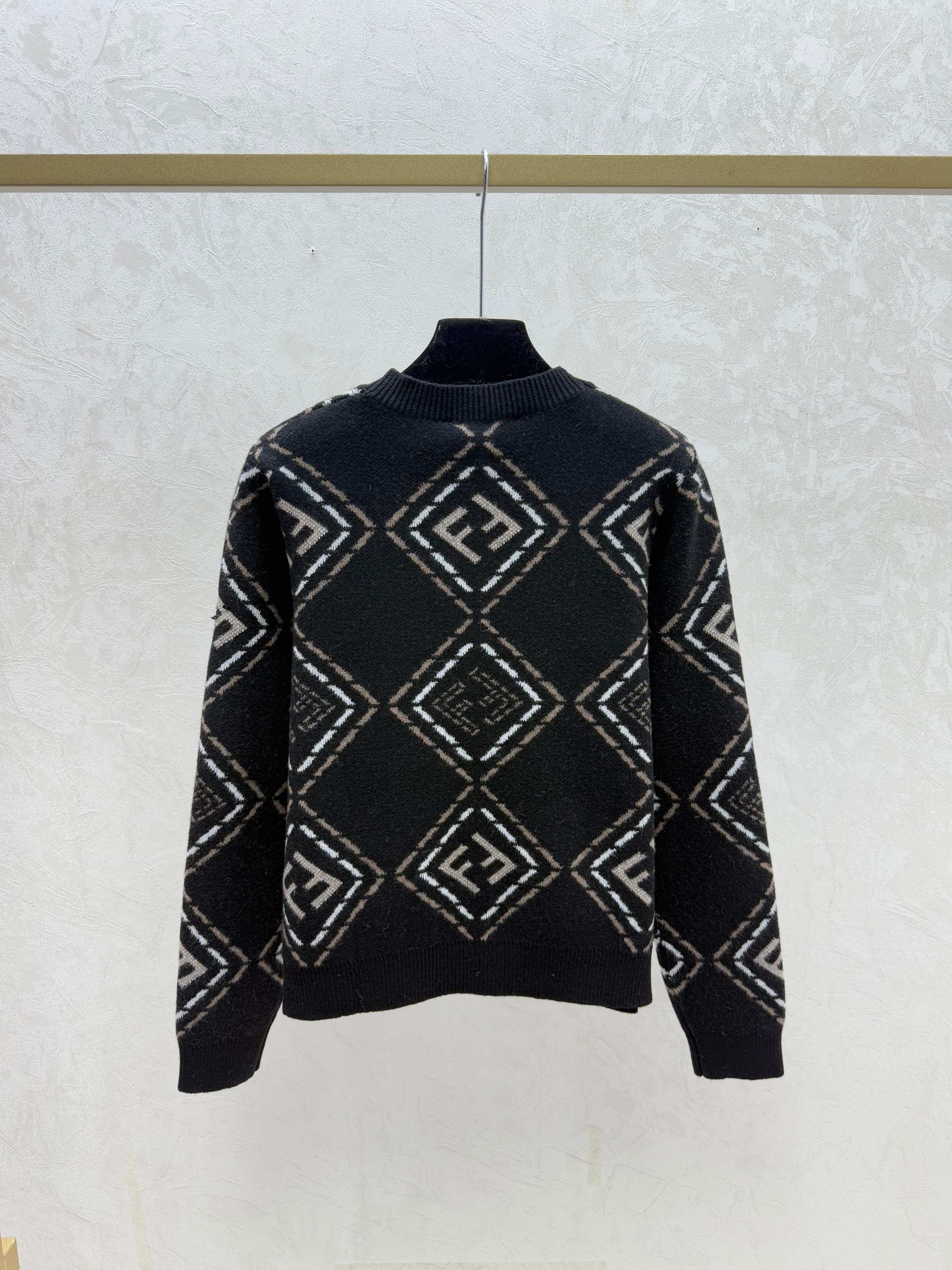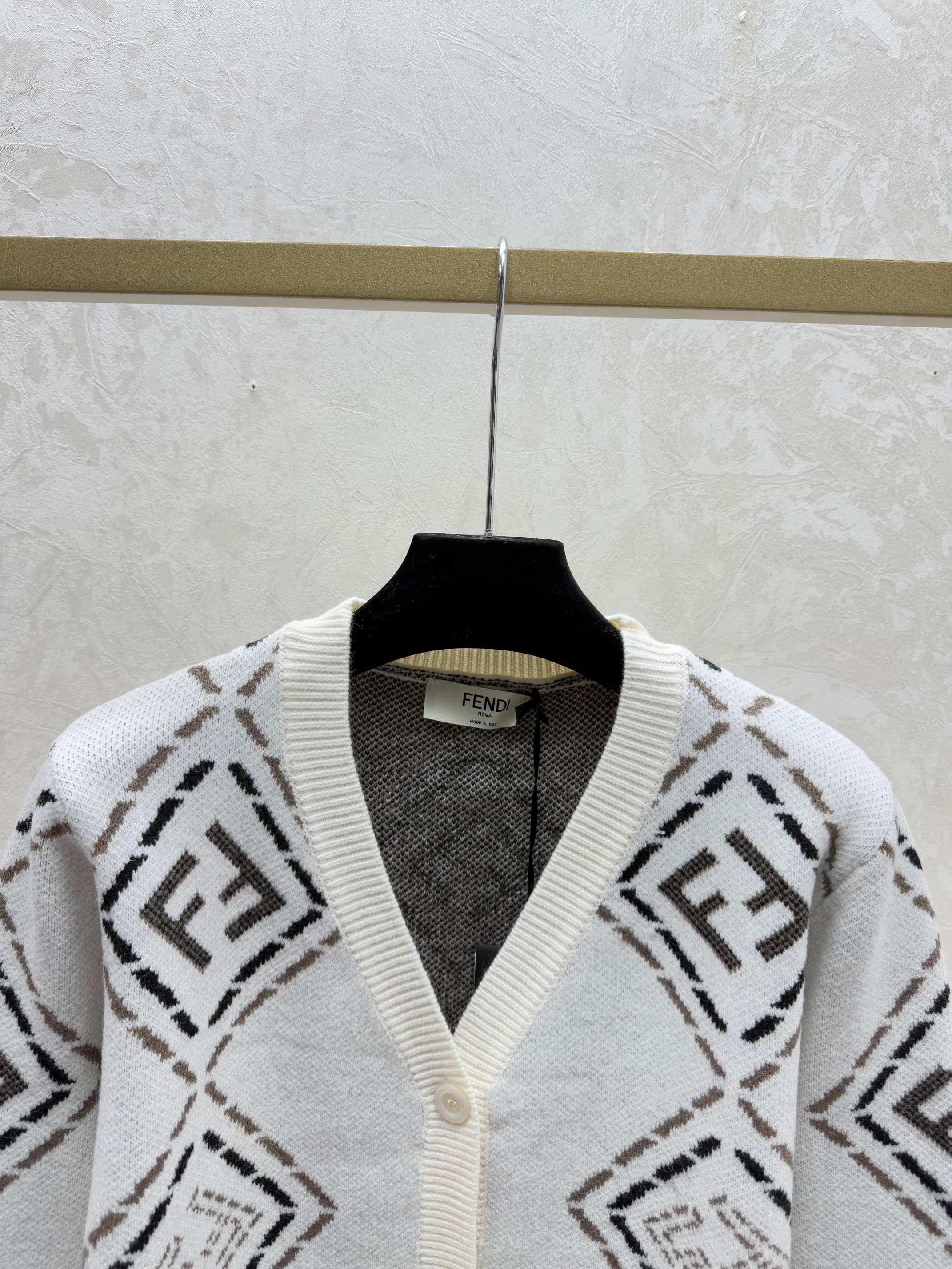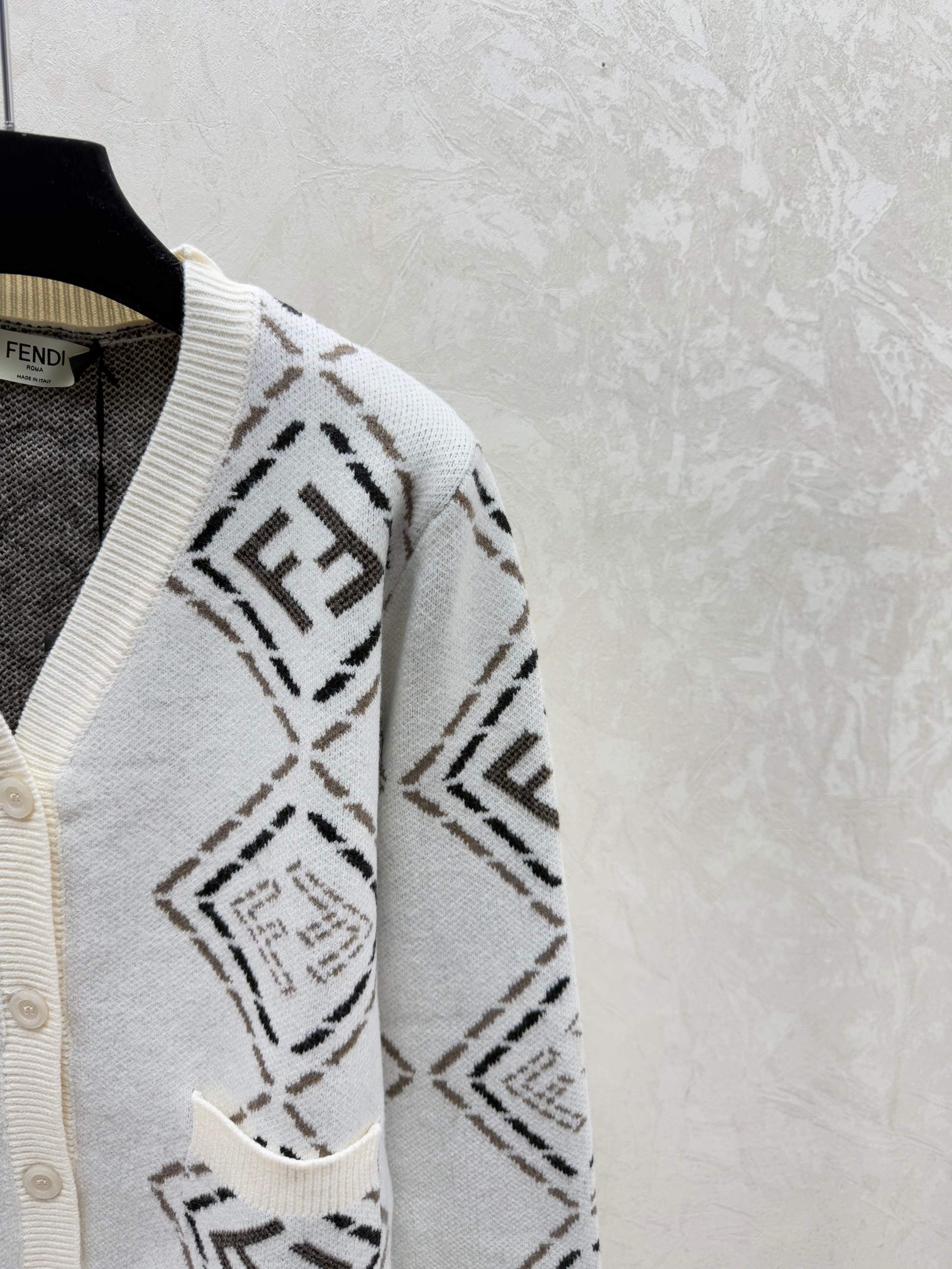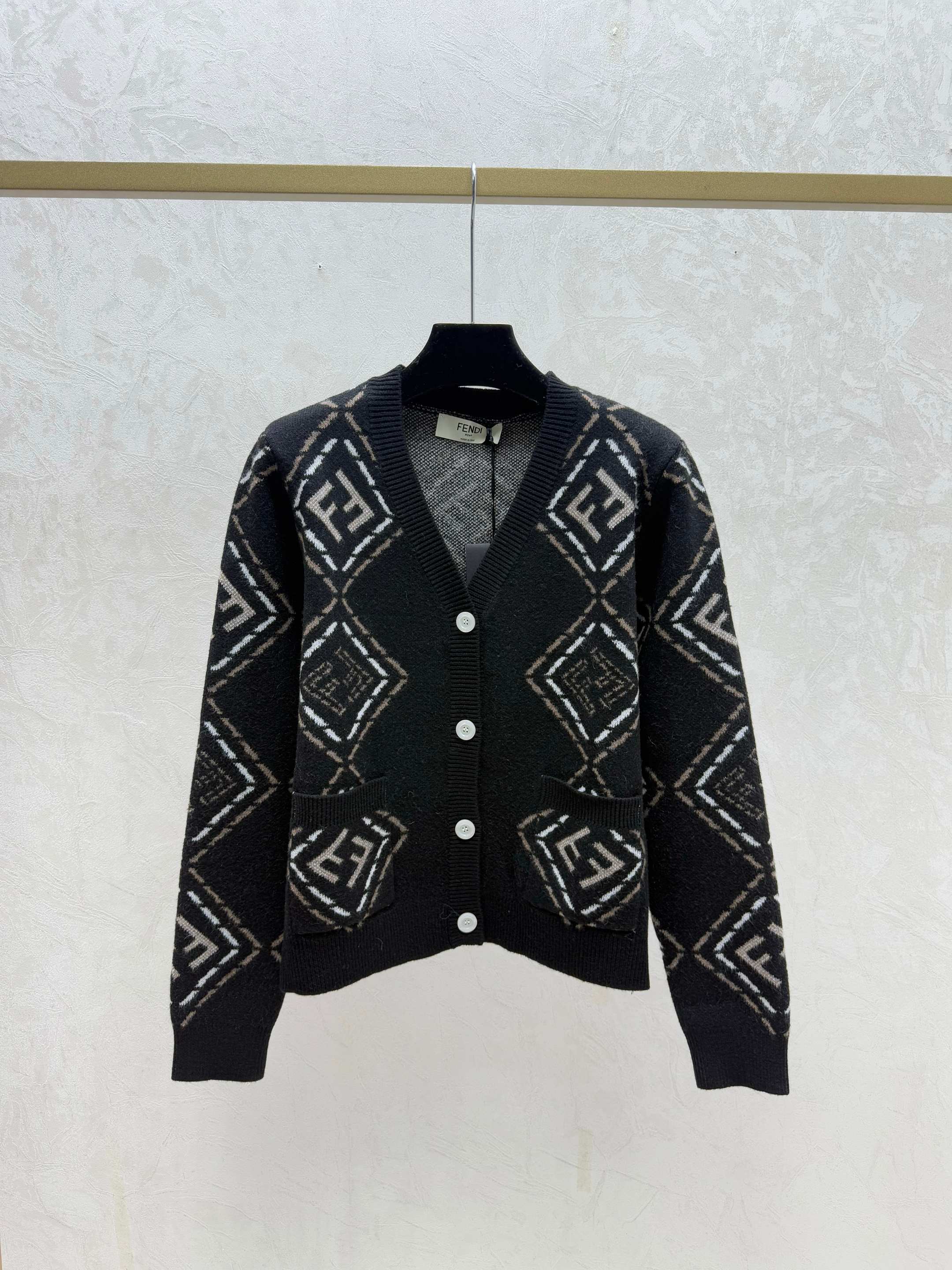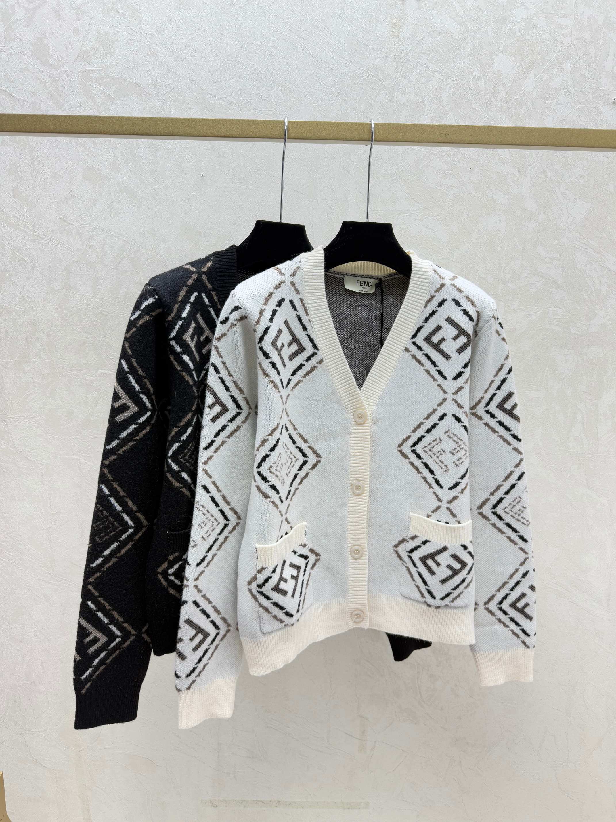 Details: Early autumn V-neck knitted cardigan with color-blocked diamond design, in white or black, sizes 36-40.