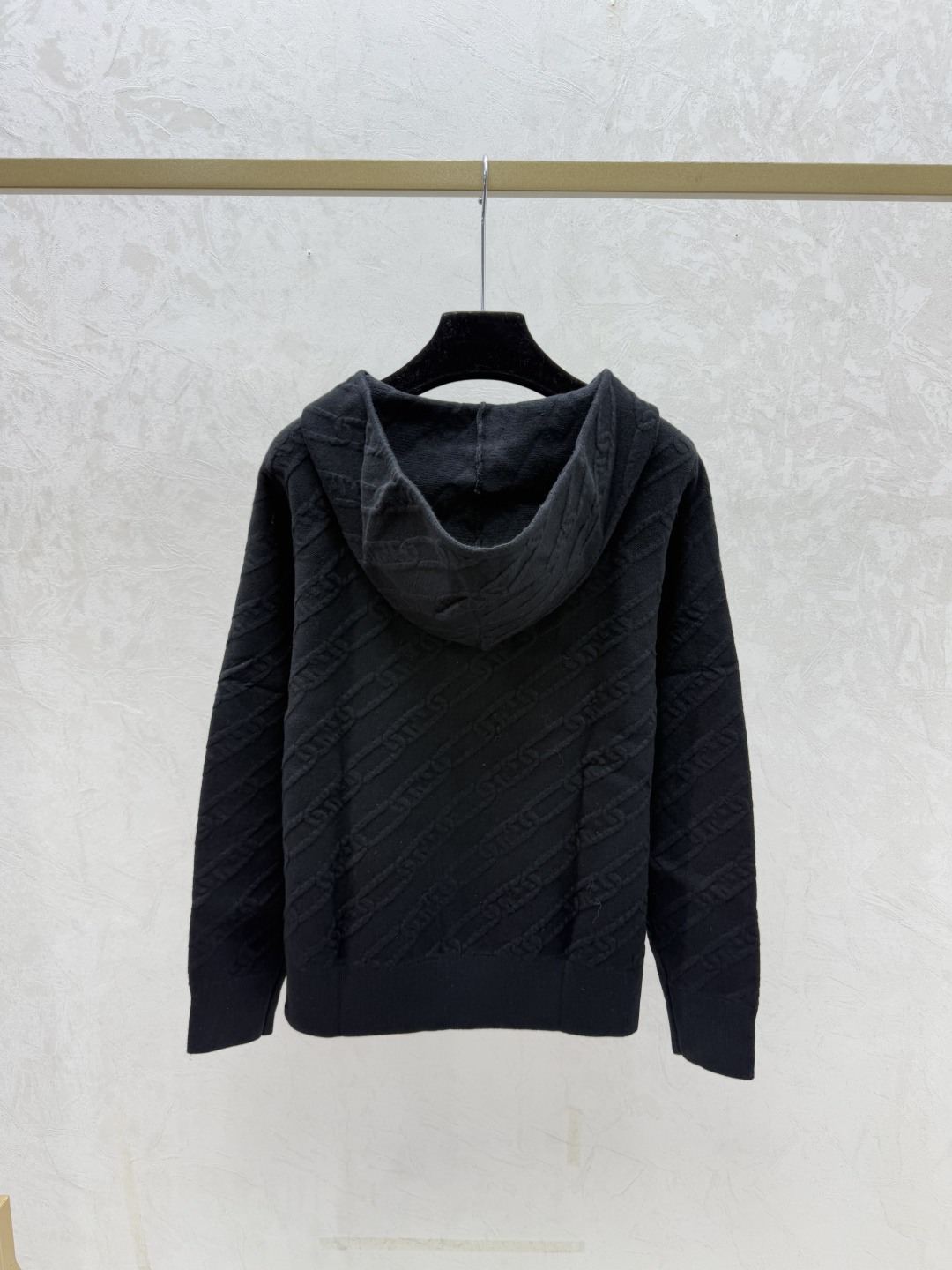 Details: Early autumn pure-color knitted hoodie with old flower letters in black, available in sizes 36, 38, 40.