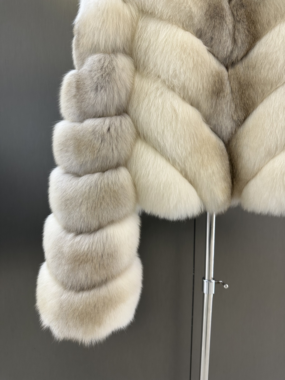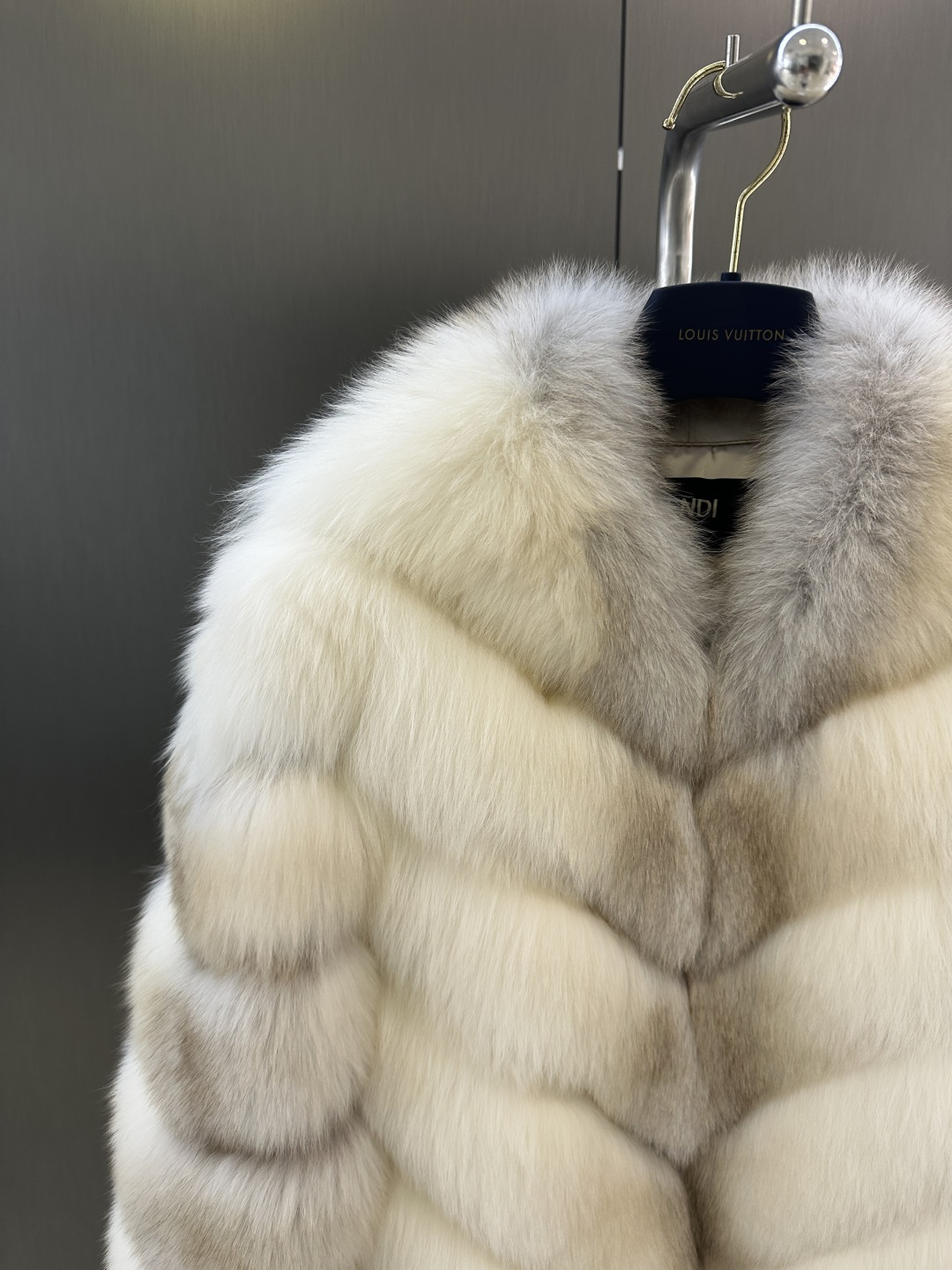 Details: Autumn and winter fox fur coat, imported Finnish white fox dyed 3 colors, custom silk lining, fashionable, high-class customization, fine workmanship