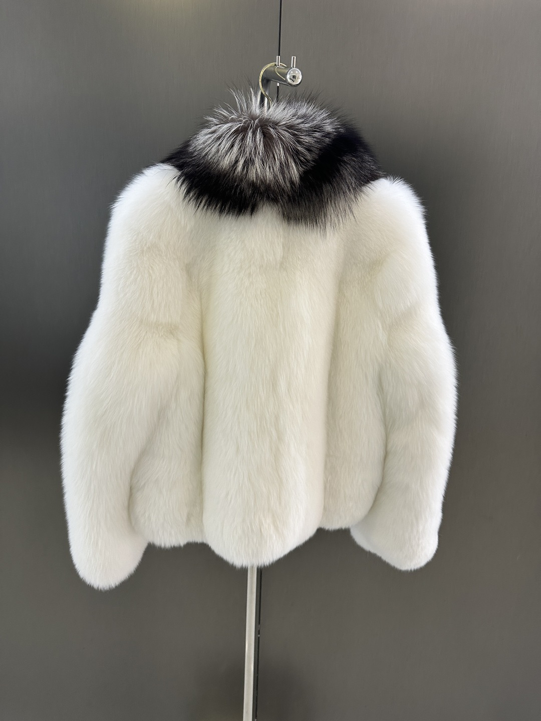 Details: Autumn and winter fox fur coat, imported Finnish white and silver fox, whole-skin, custom silk lining, high-end, high-class customization, fine workmanship