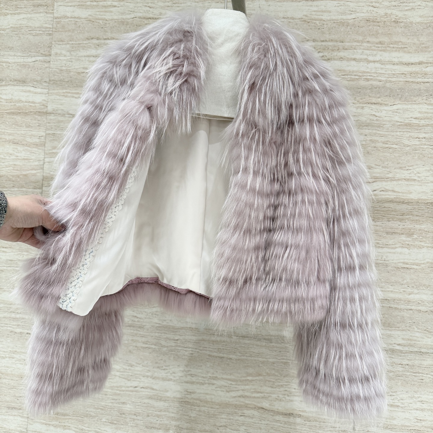 Details: Autumn - winter fox fur jacket, Finnish fur, advanced dyeing, warm and fashionable. High - end customization, fine workmanship