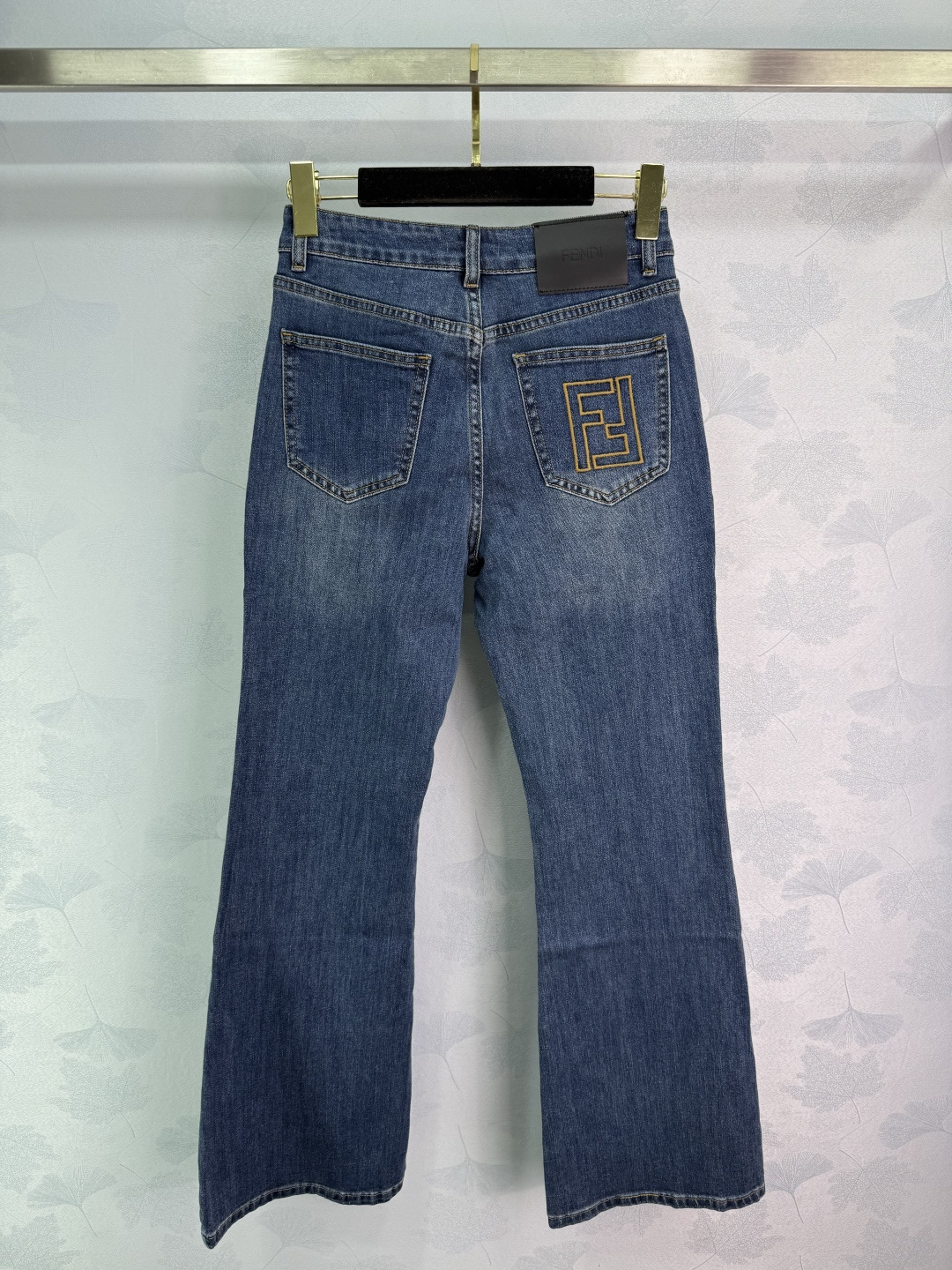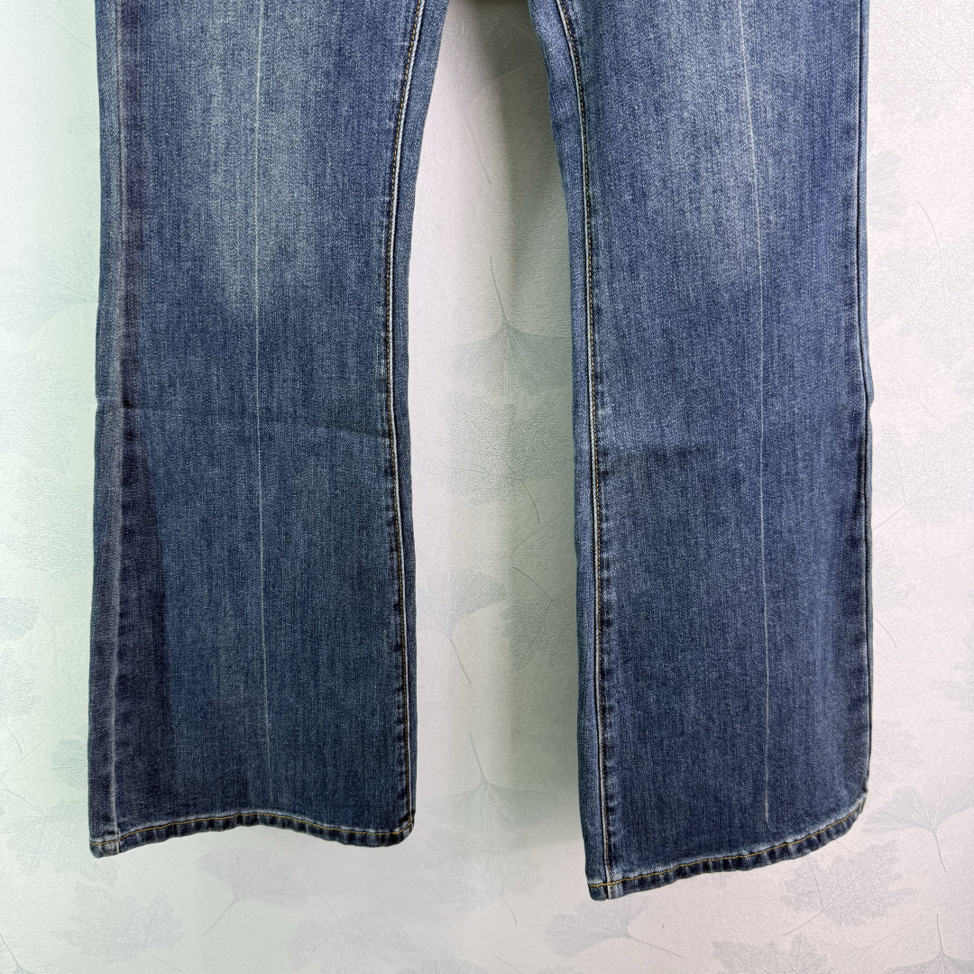 Details: Flared jeans with an embroidered logo on the back pocket, crafted from custom stretch cotton for both comfort and style.