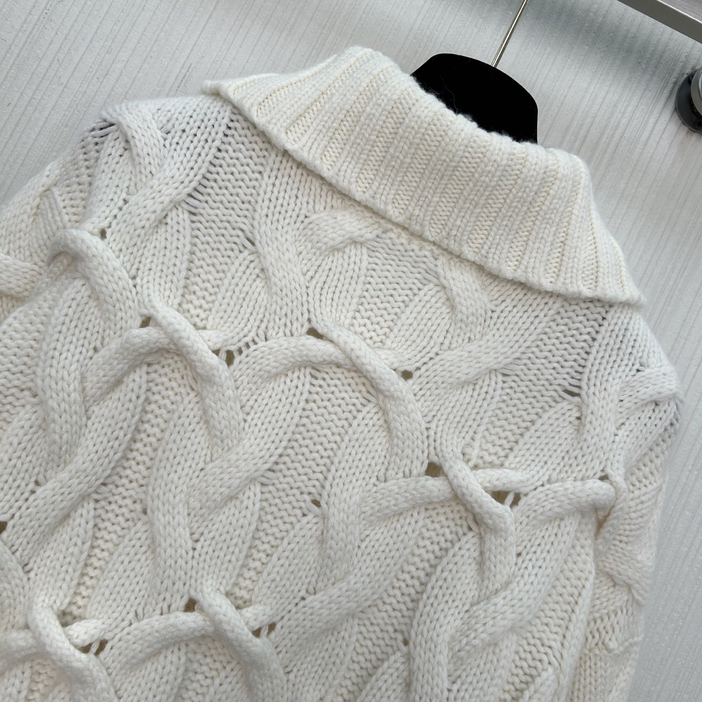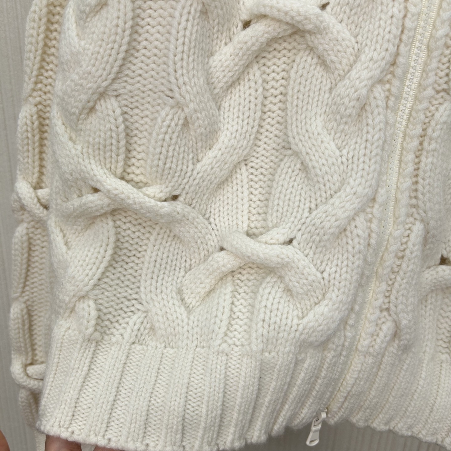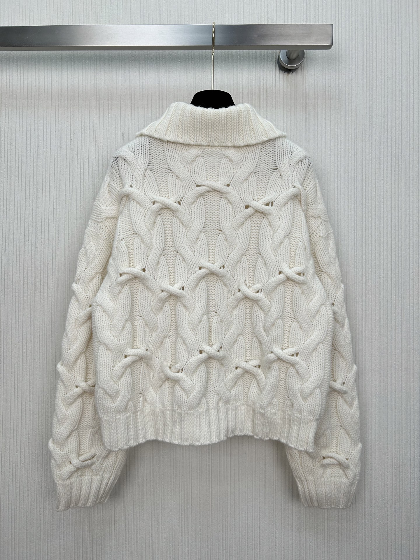 Details: High-end hand-knitted cashmere coat with double zippers, creating a low-key luxury look.