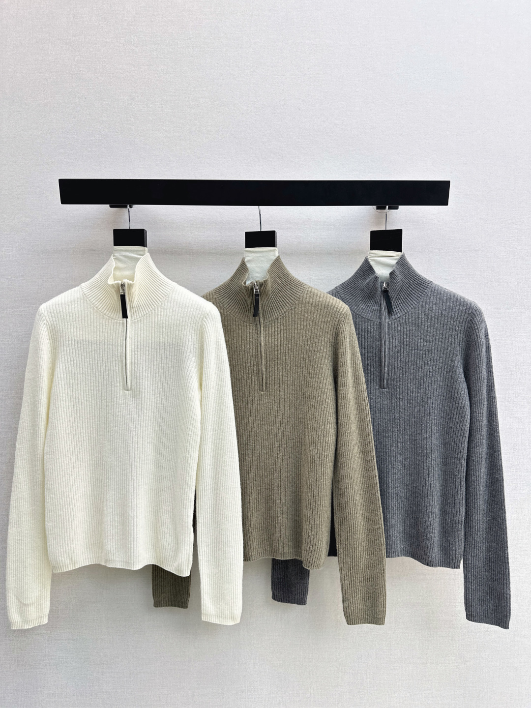 Details: Exclusive early spring stand-up collar half-open sweater in college style, available in three colors.