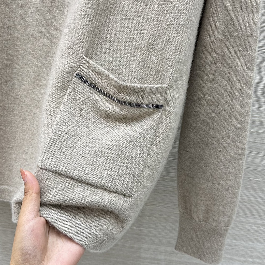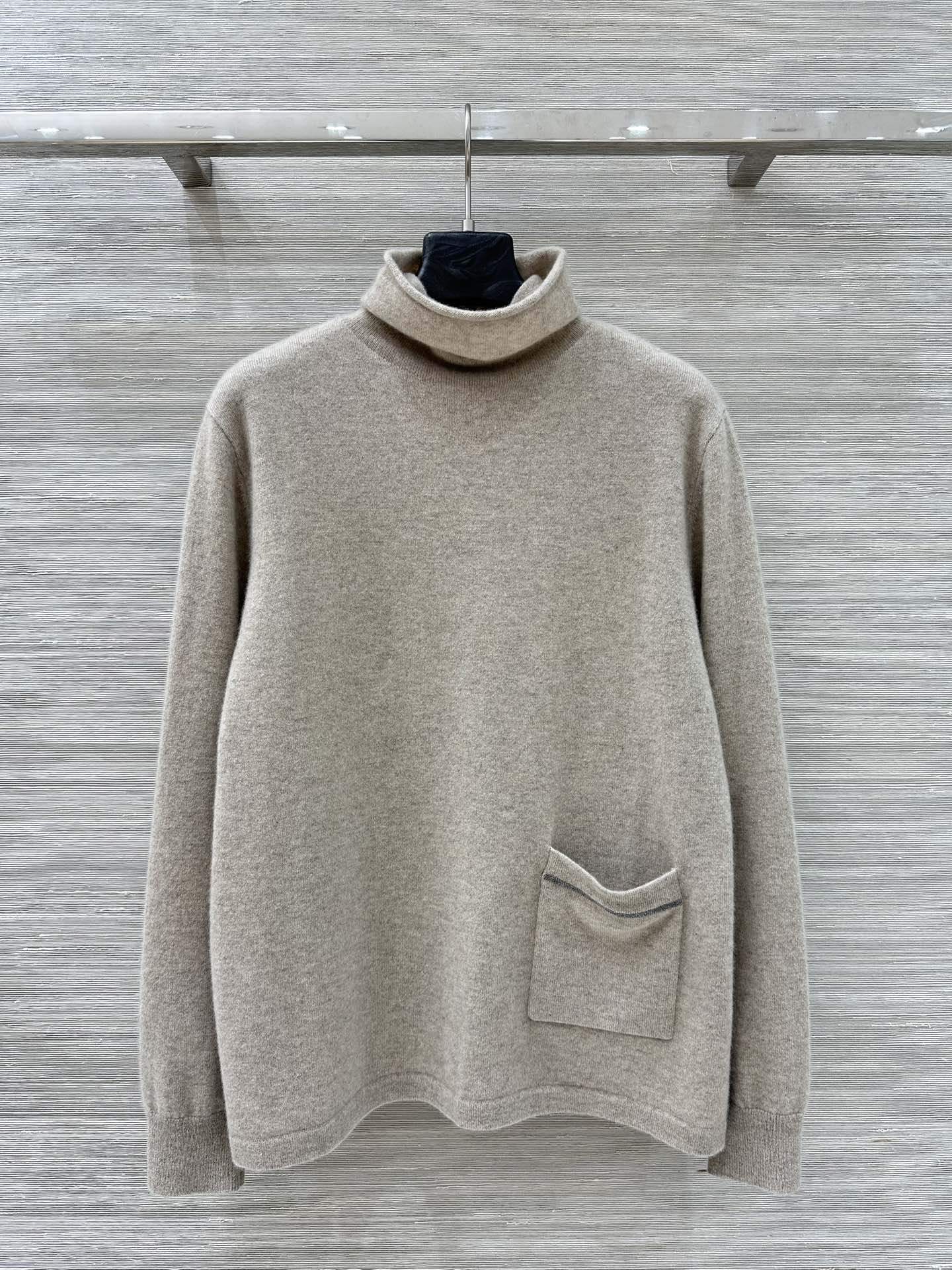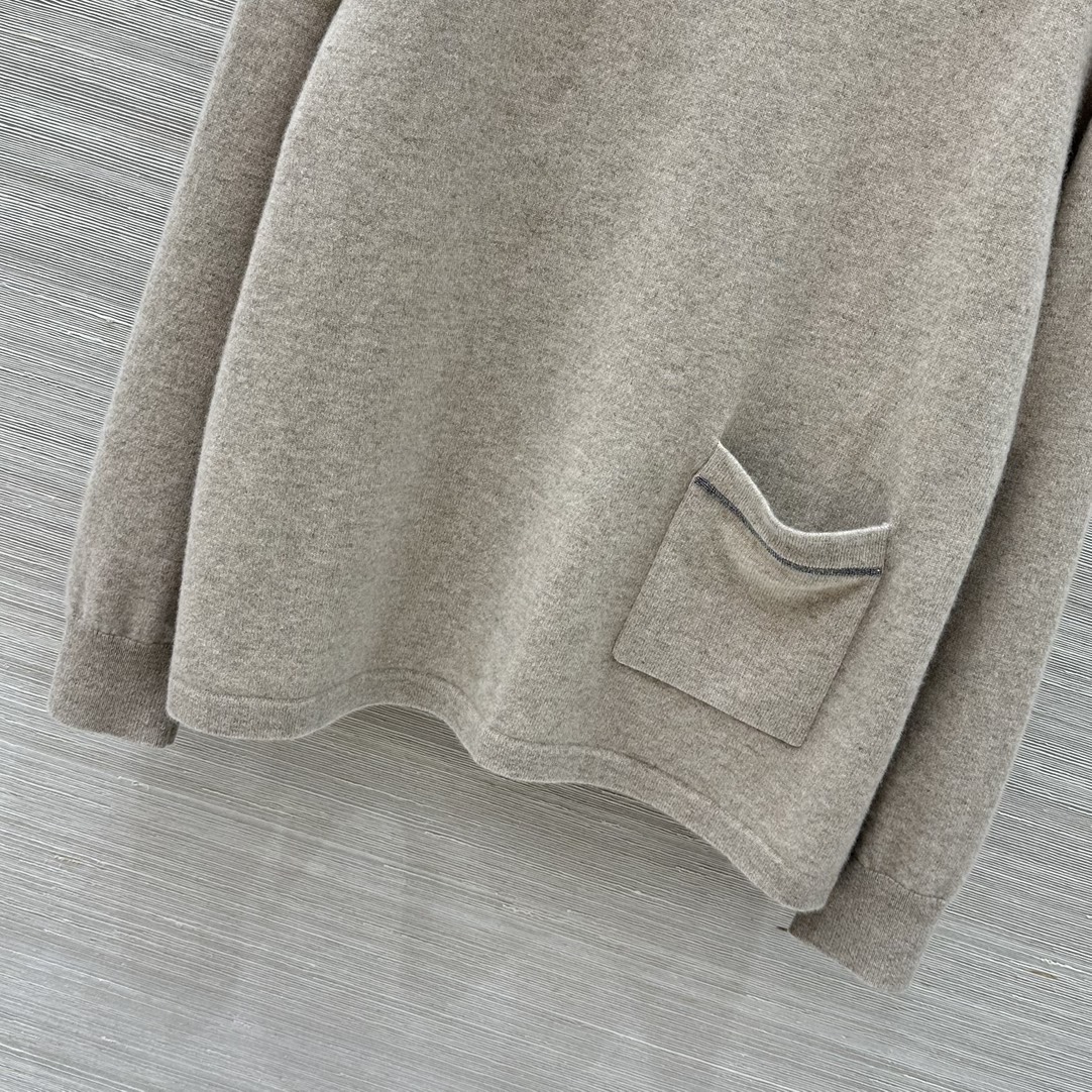 Details: Autumn-winter 100% cashmere high-neck top with pocket chains, minimalist, luxurious and versatile