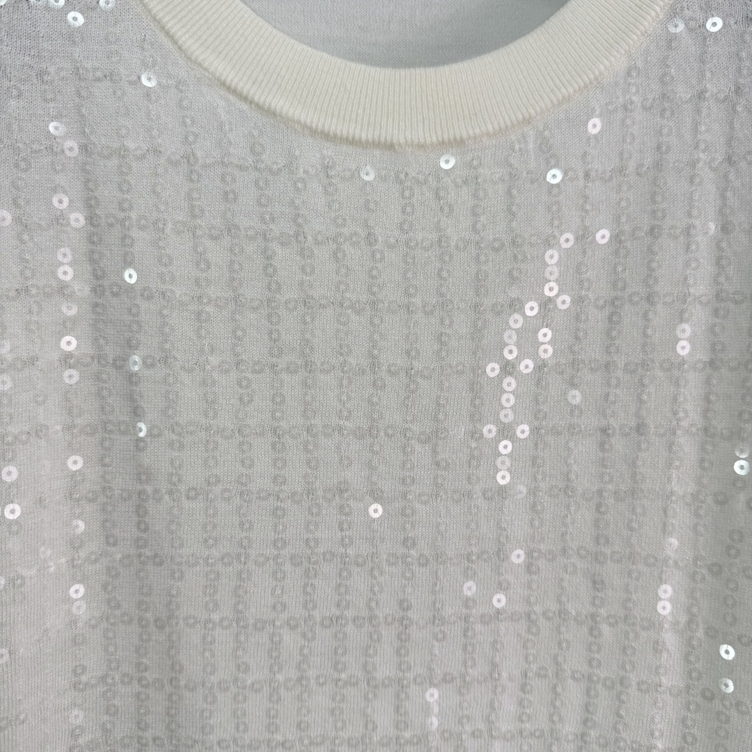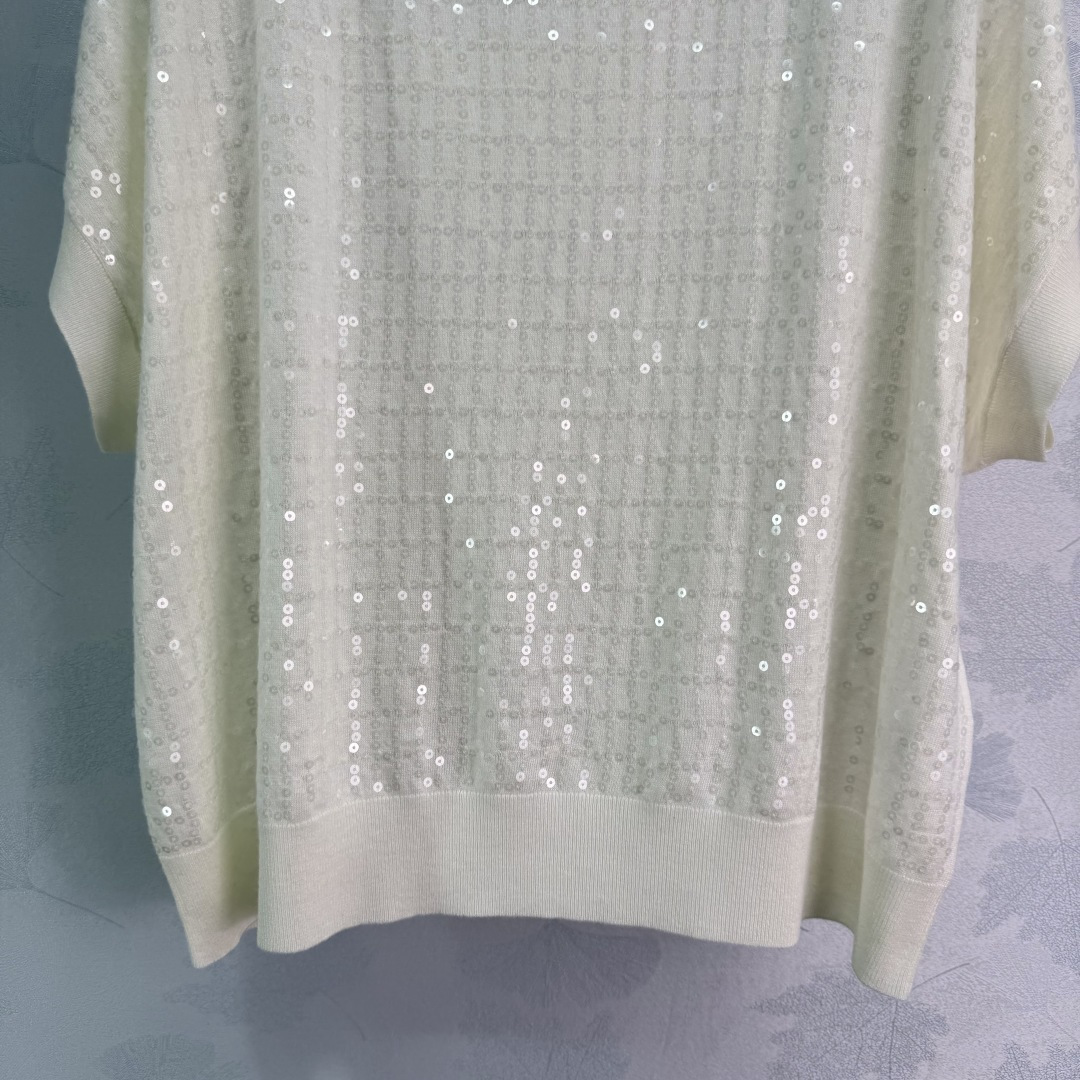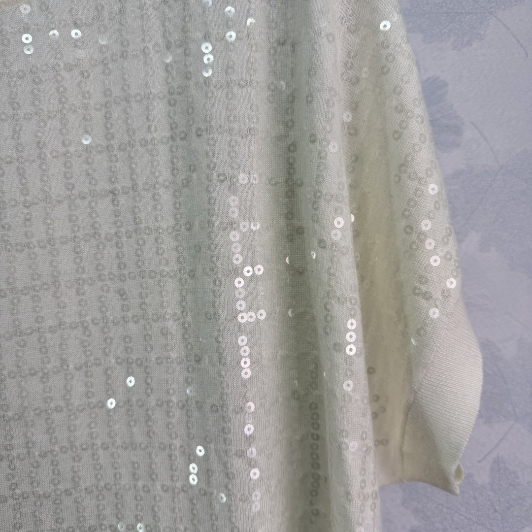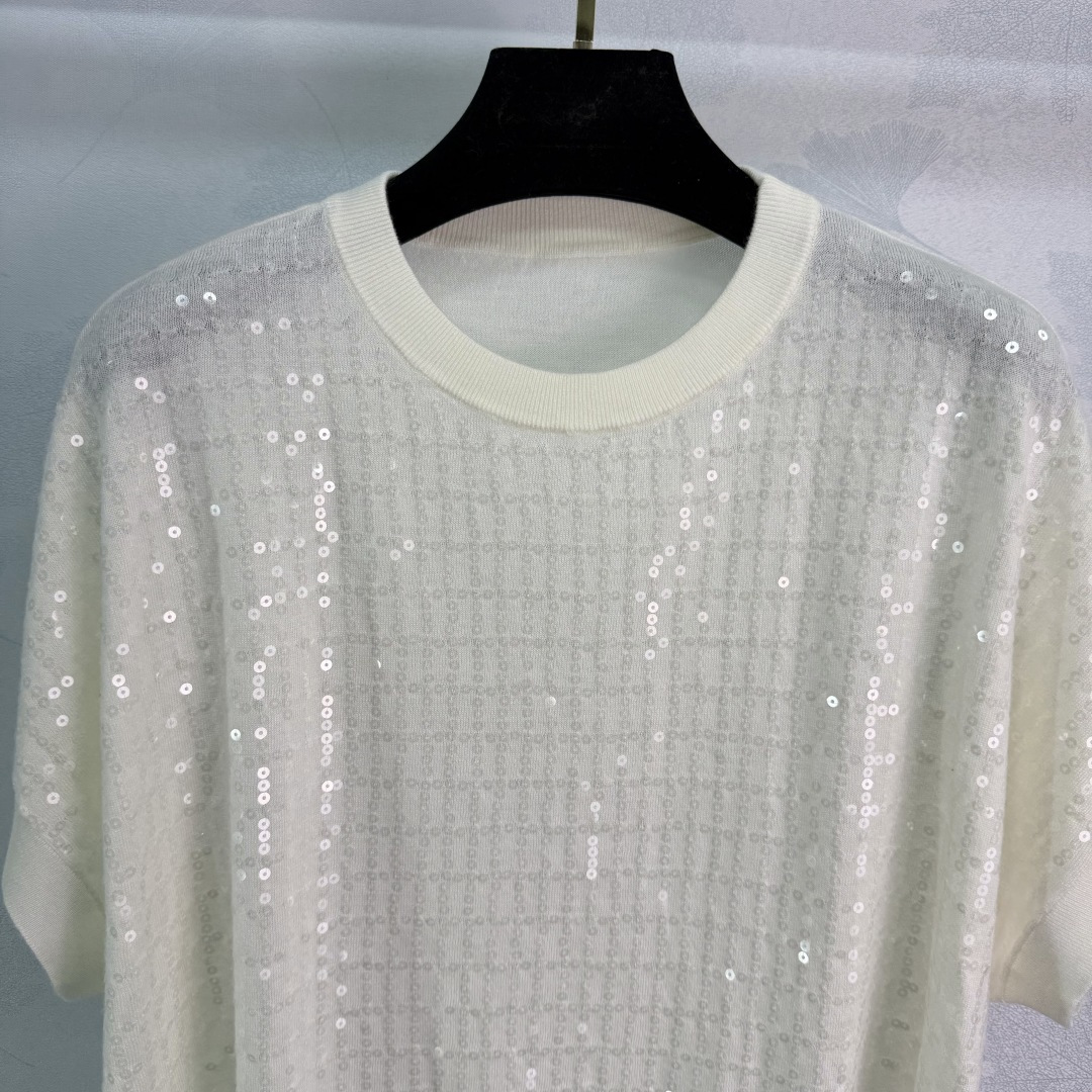 Details: Spring sequined knitted short-sleeved top, lightweight and slimming, perfect for commuting and parties.