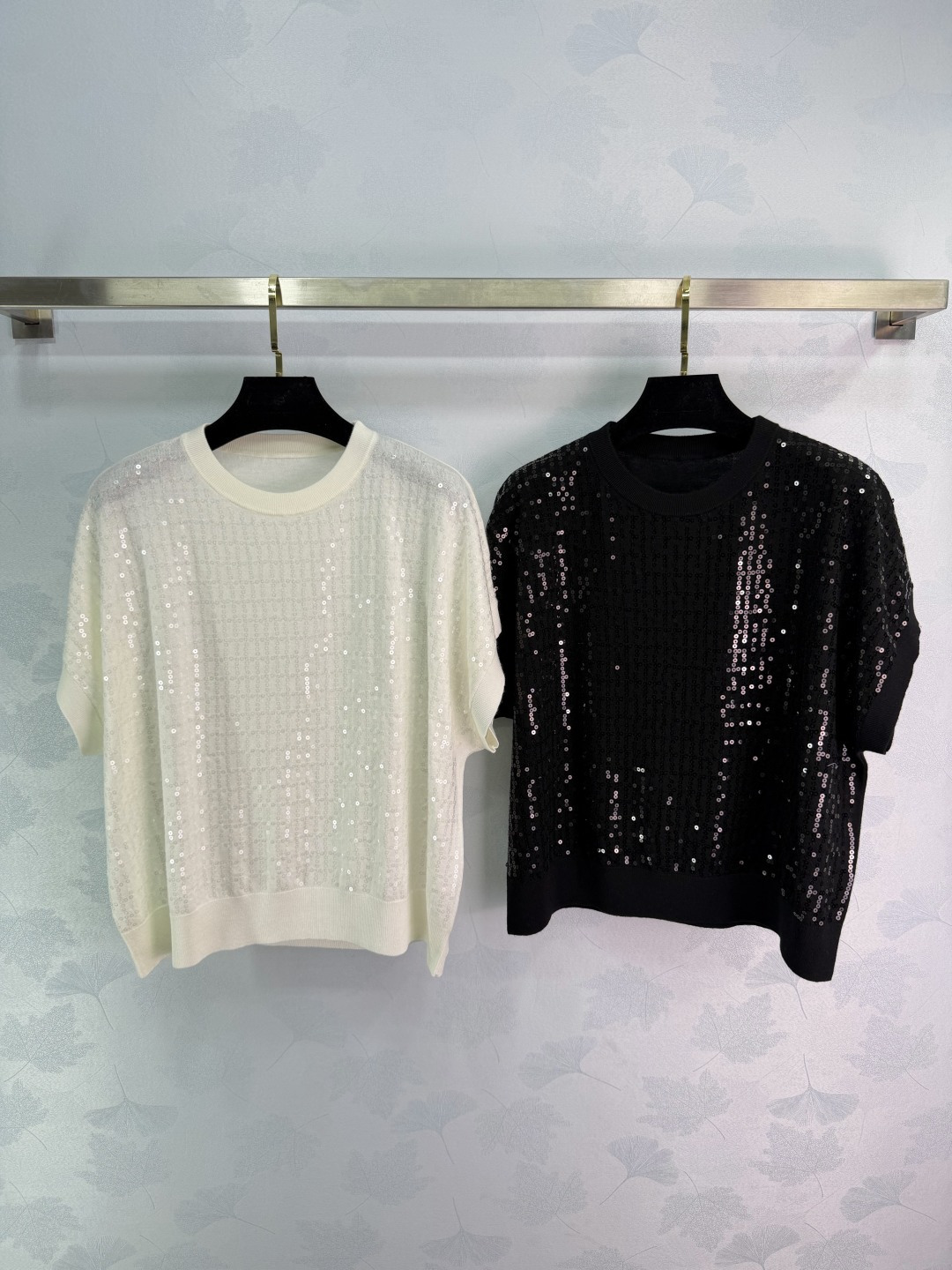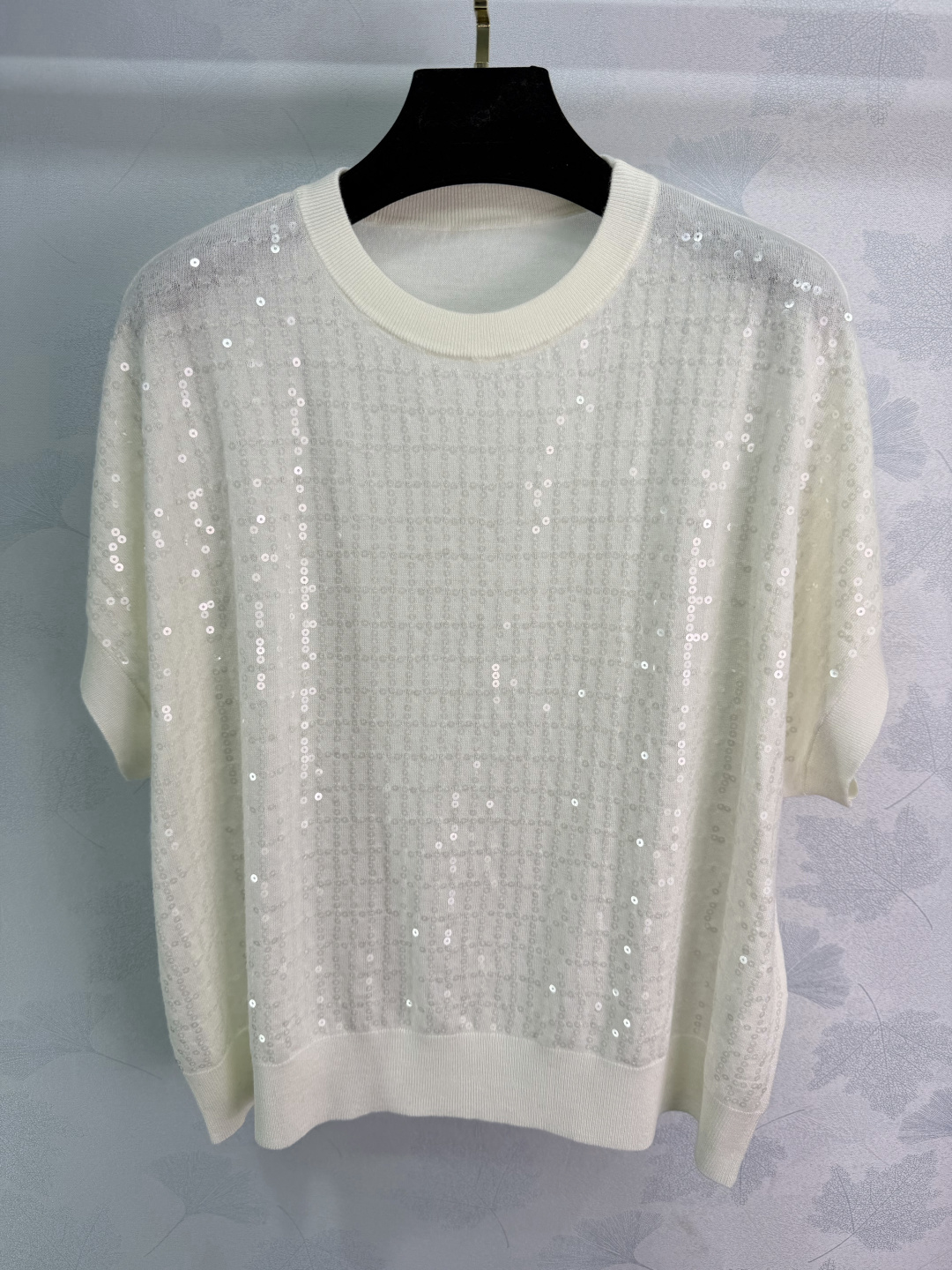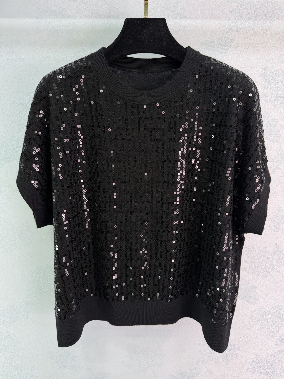 Details: Spring sequined knitted short-sleeved top, lightweight and slimming, perfect for commuting and parties.