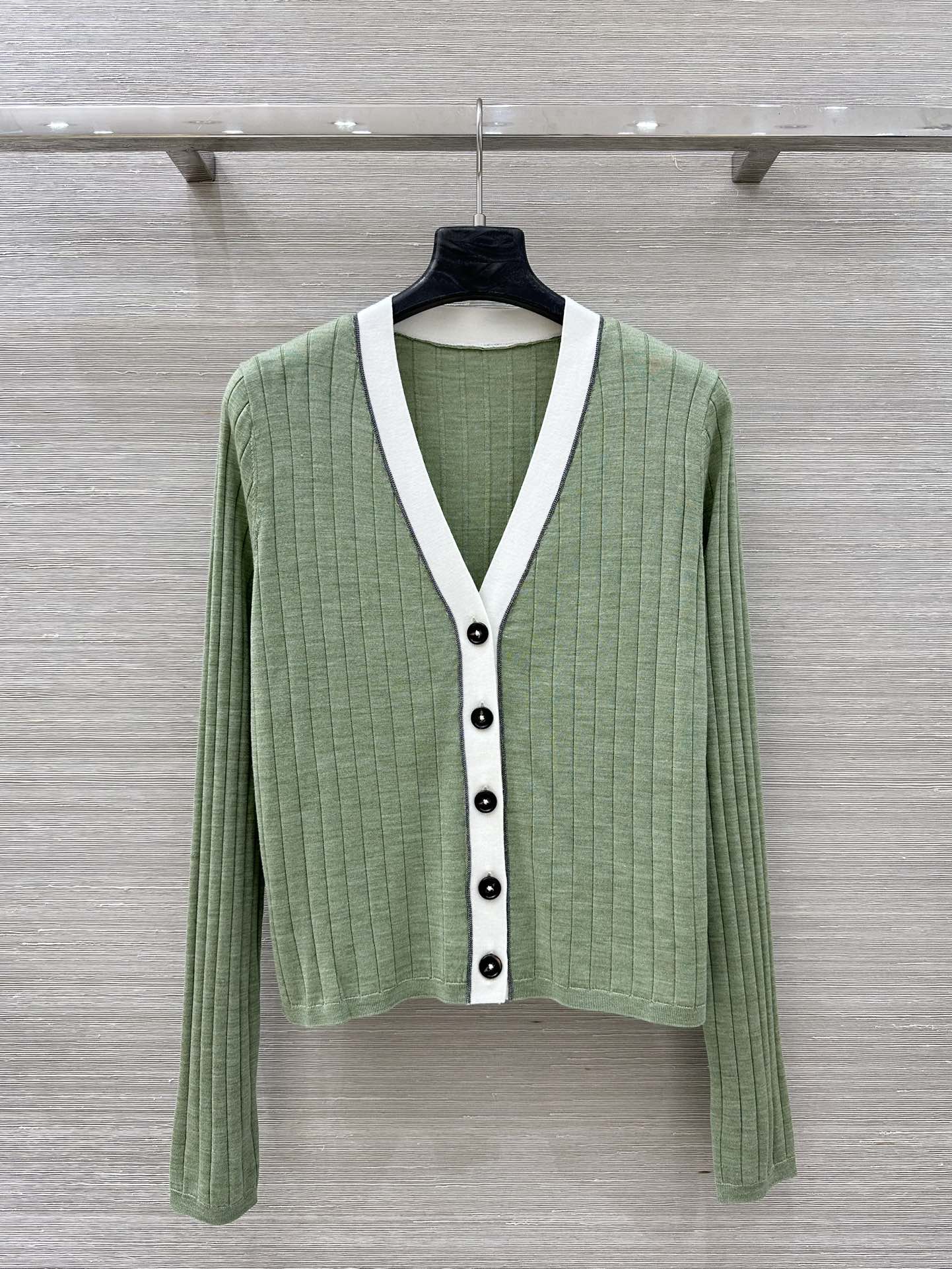 Details: Exclusive high - end silk - wool knitted cardigan paired with straight - leg pants, elegant and slimming, fine workmanship