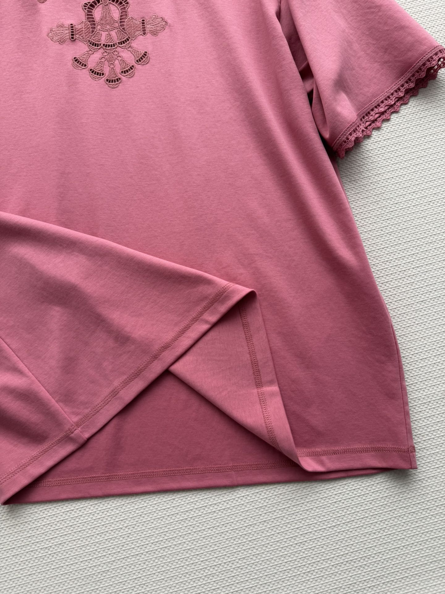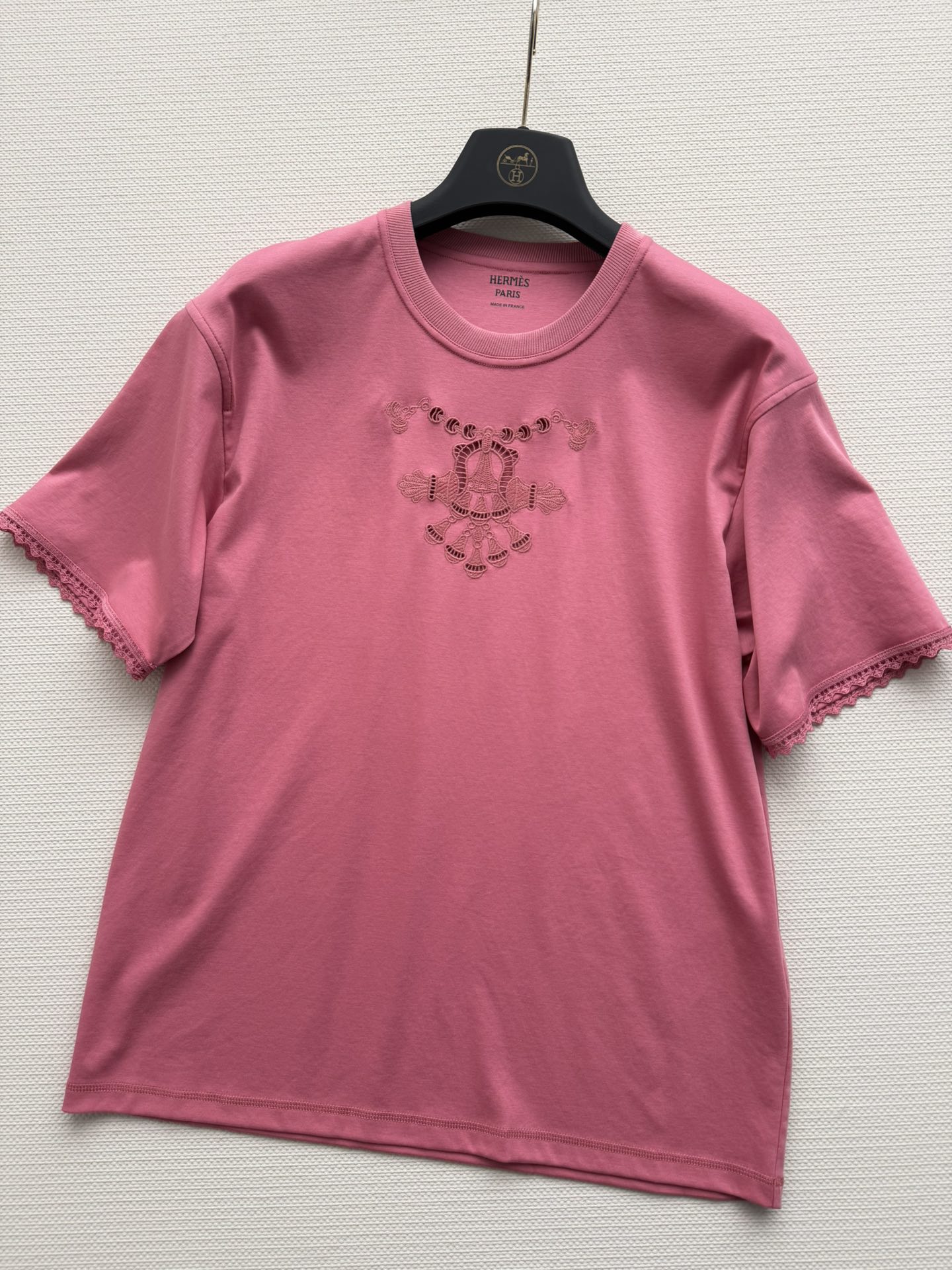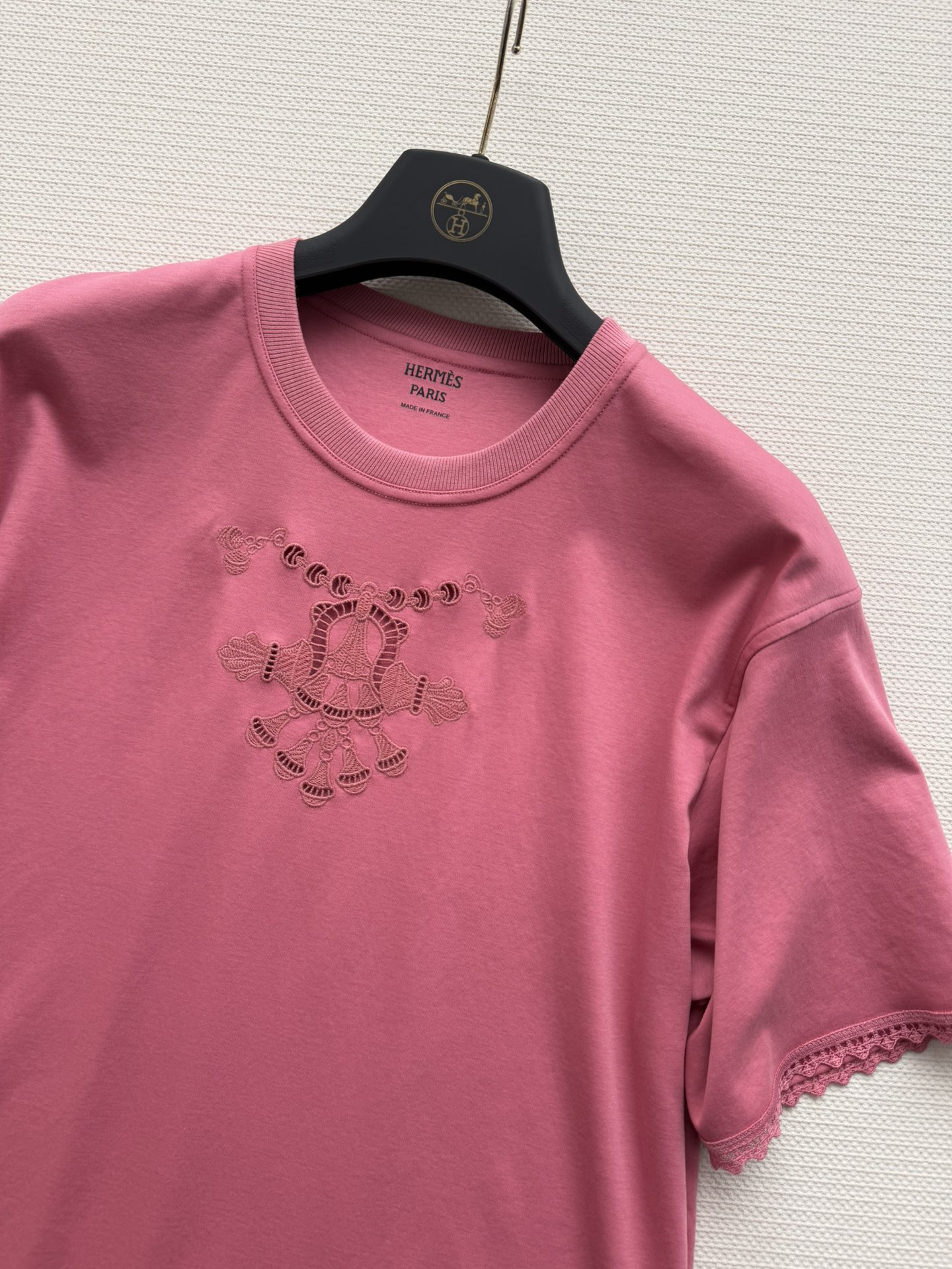 Details: Spring-summer embroidered T-shirt, made of high-count cotton, suitable for various occasions.