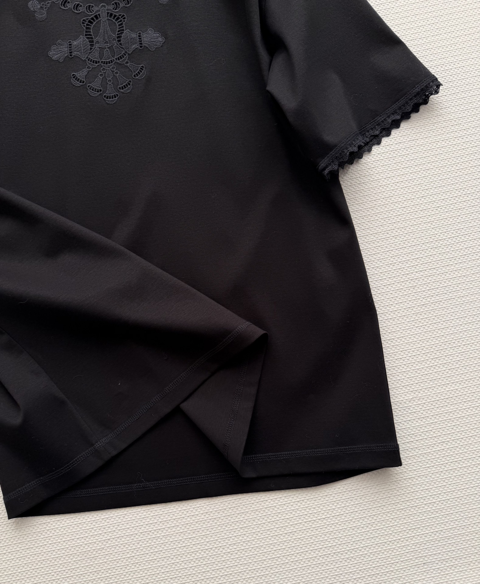 Details: Spring-summer embroidered T-shirt, made of high-count cotton, suitable for various occasions.