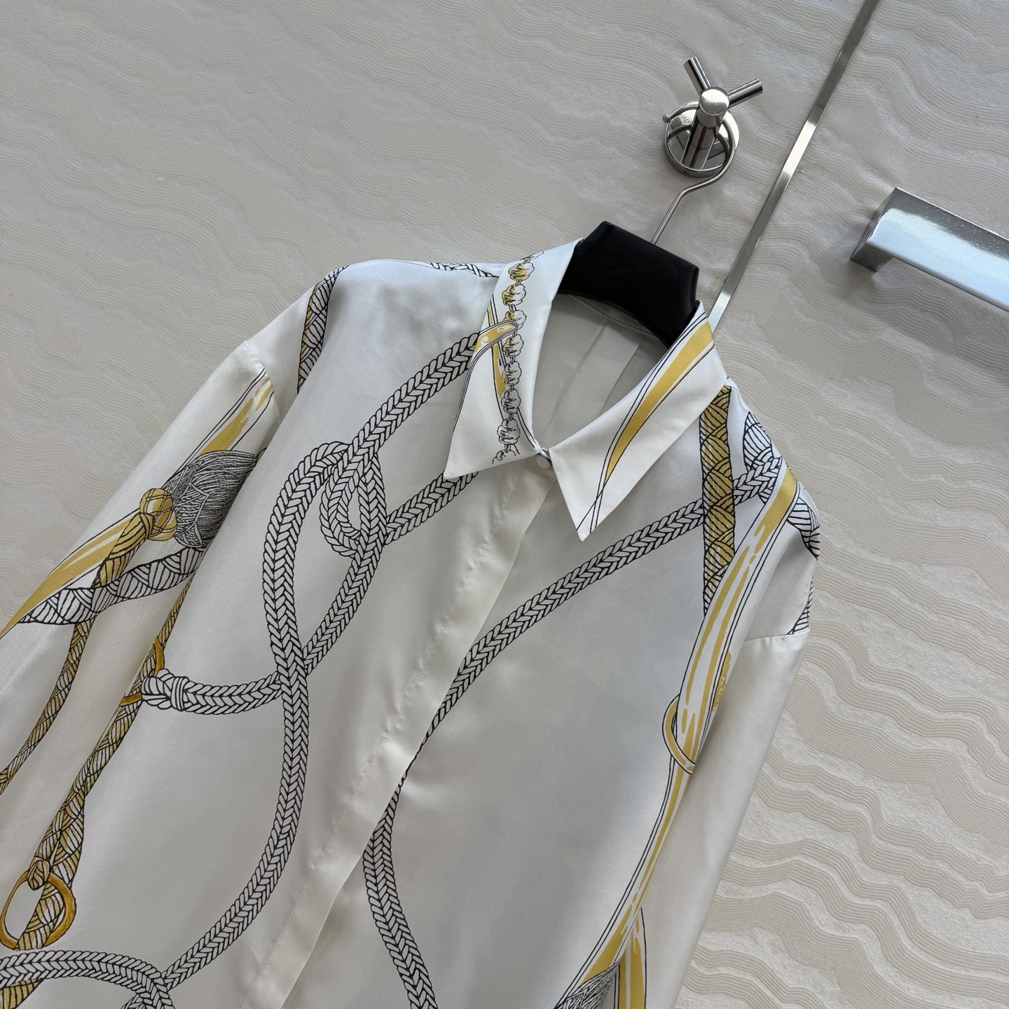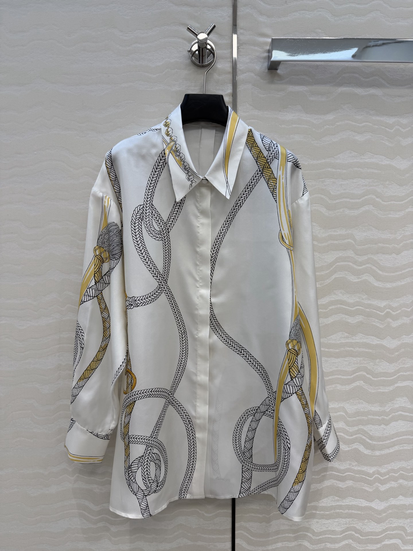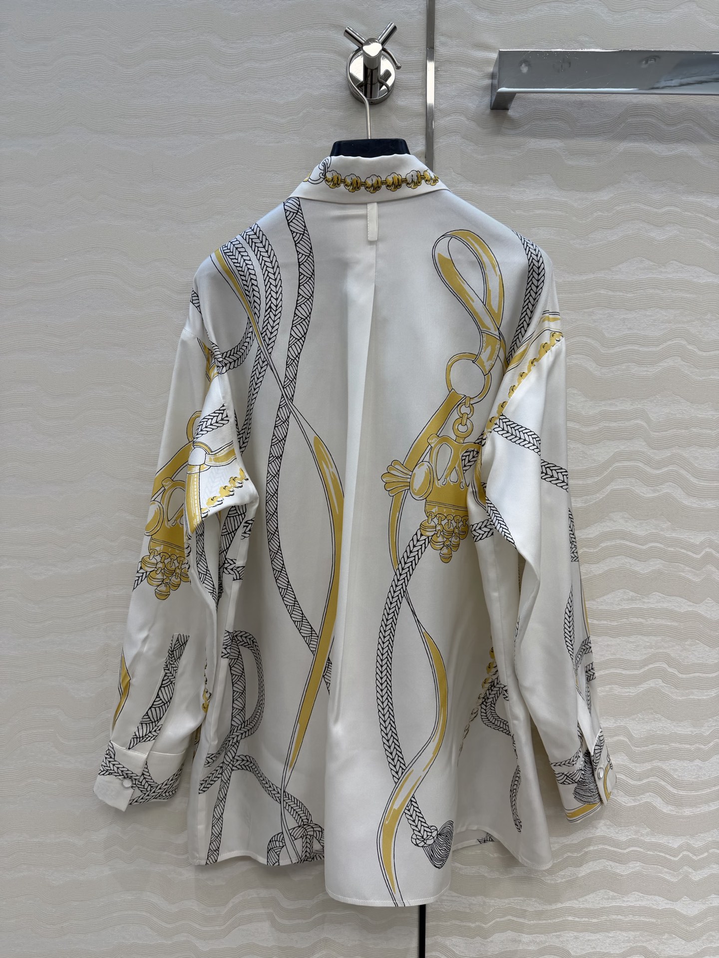 Details: Exclusive early autumn real silk shirt with pattern positioning printing, loose fit, all sizes available.