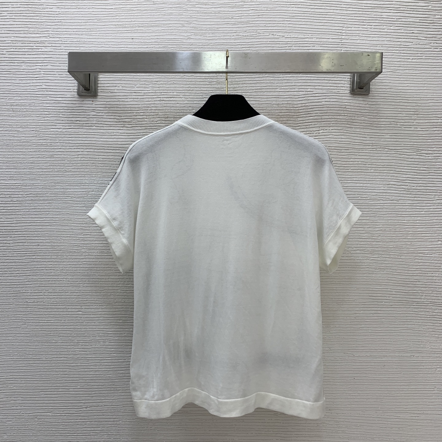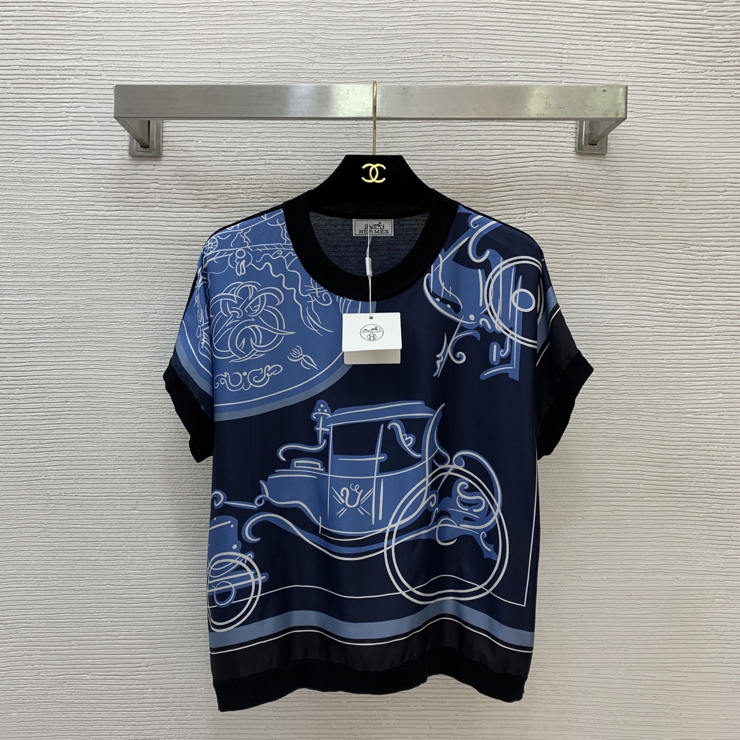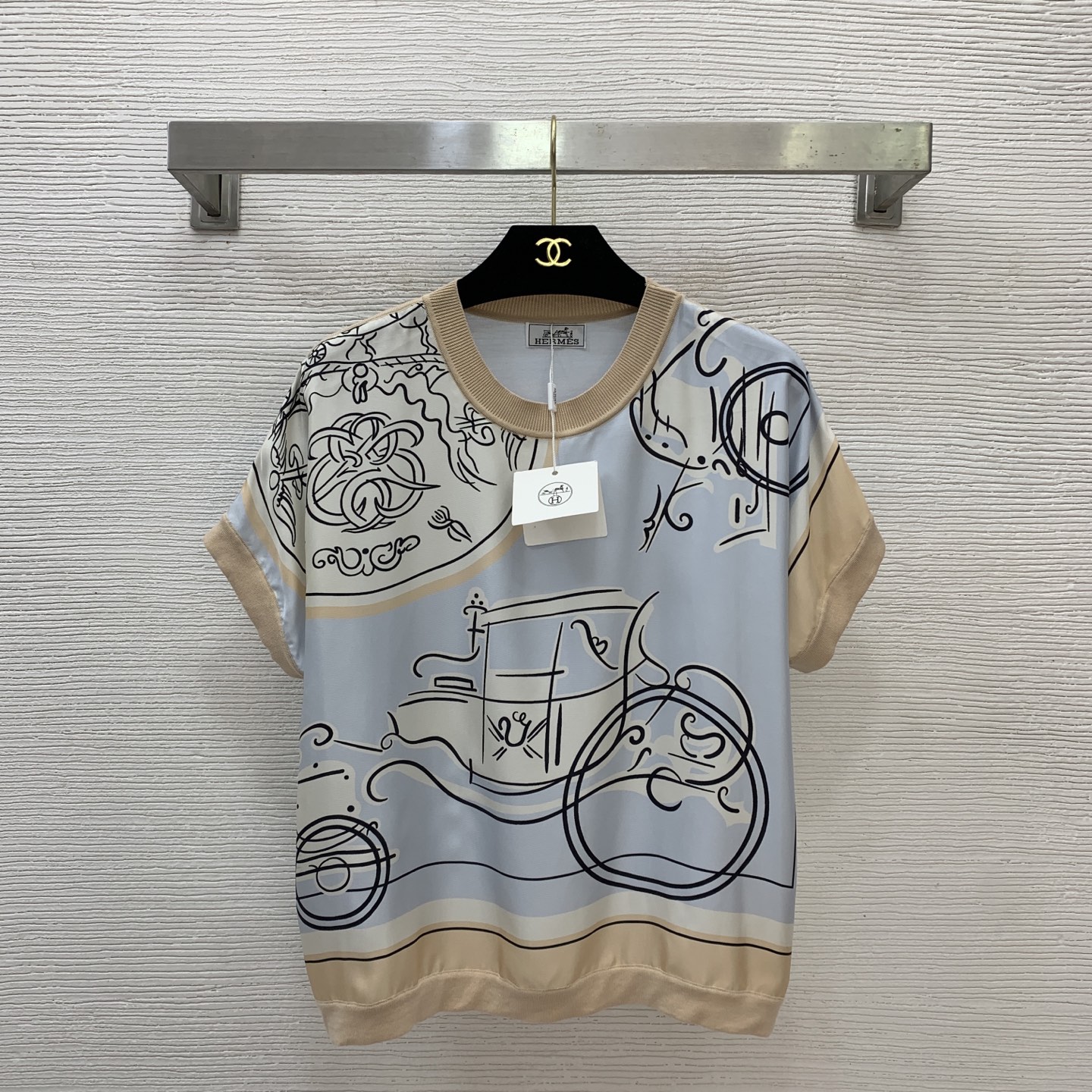 Details: Spring - Summer Custom Silk Knit Top in Blue or White, Size M, Premium Quality