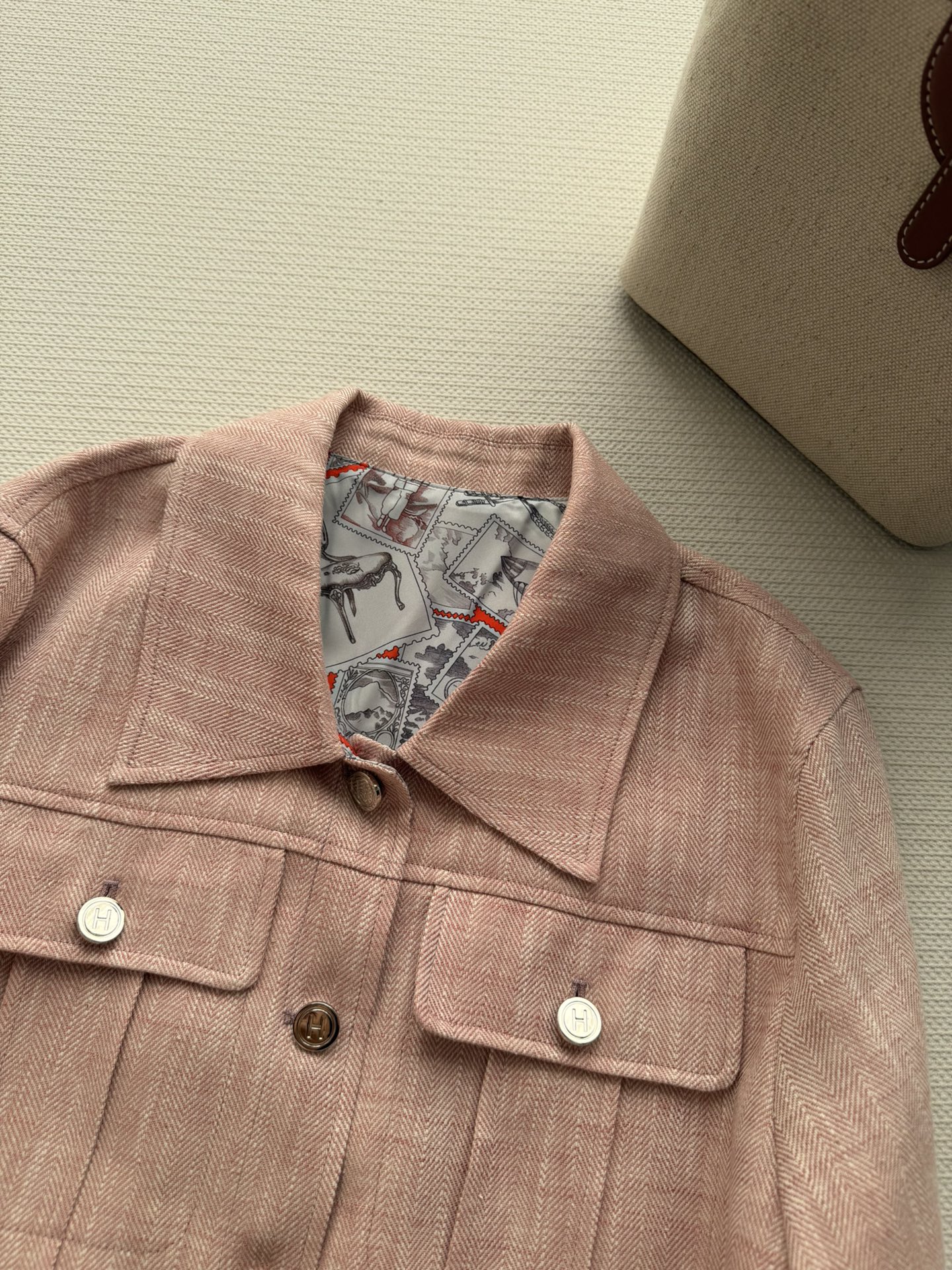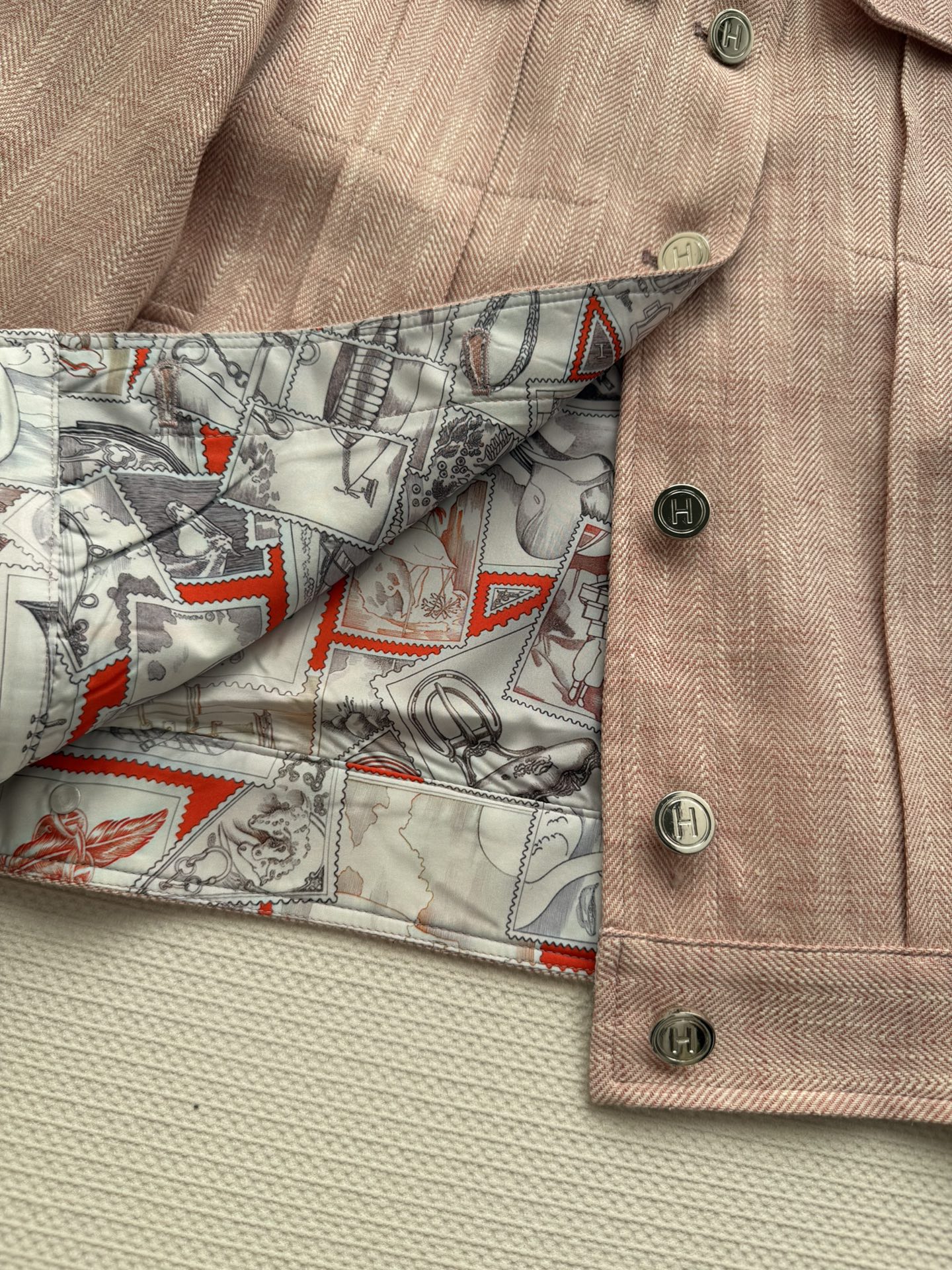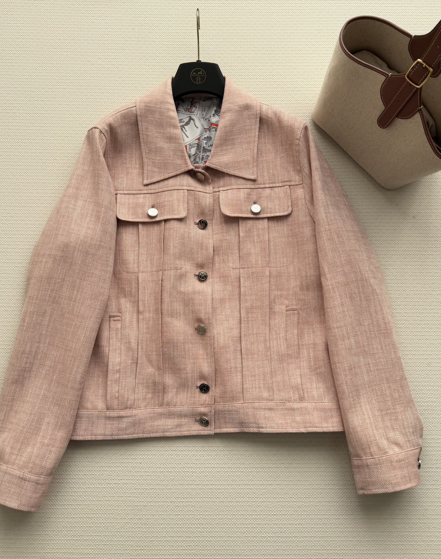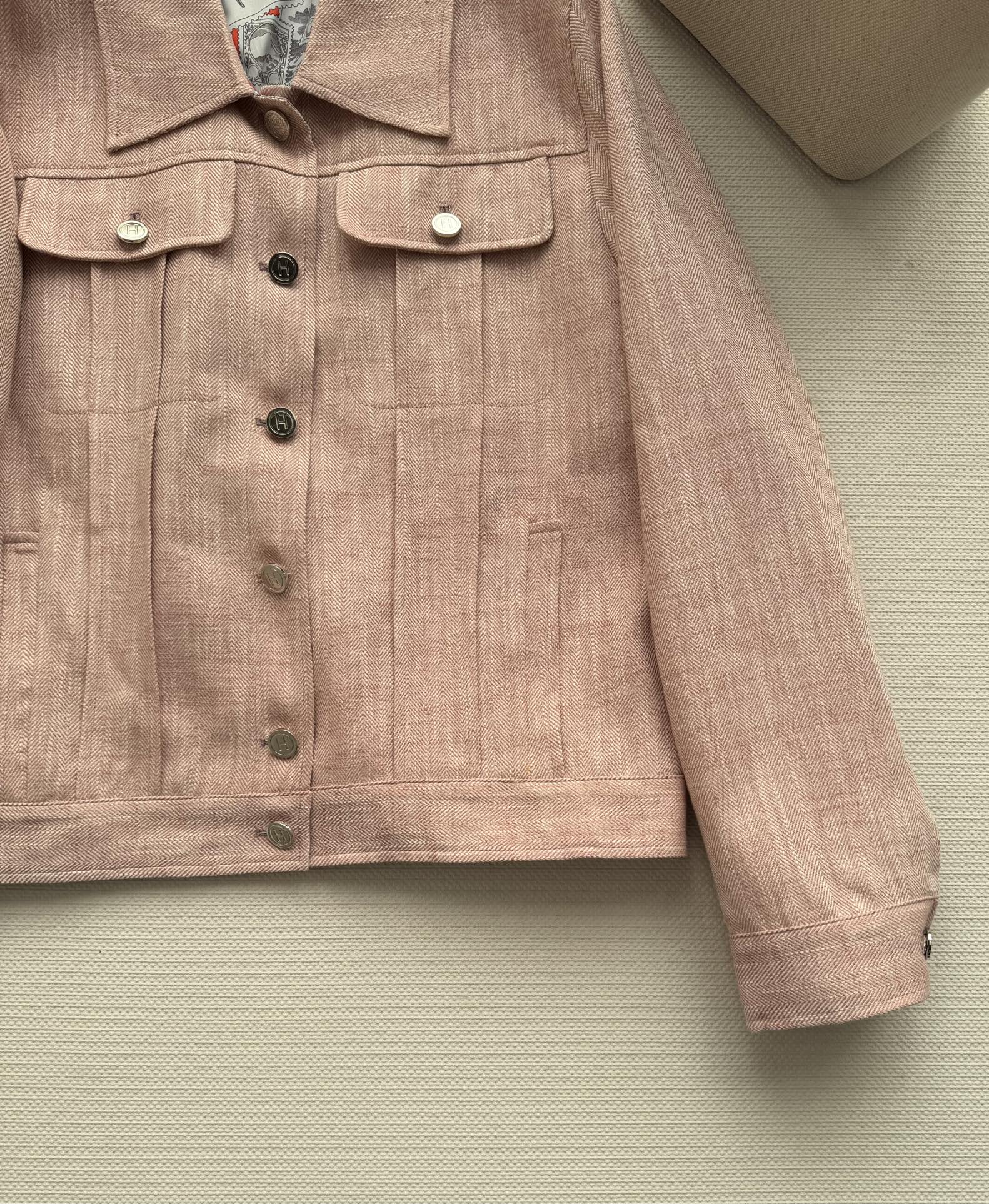 here:home > WOMENS > Hermes > Outerwear Hermes (W) > Hermes Imported Linen Jacket with Multiple Pockets and Metal Buttons