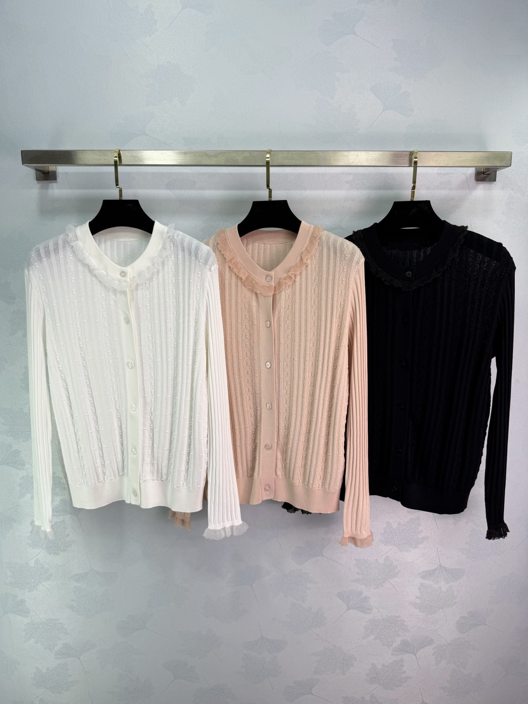 Details: Early spring lace-trimmed knitted cardigan, soft and breathable, suitable for various occasions.