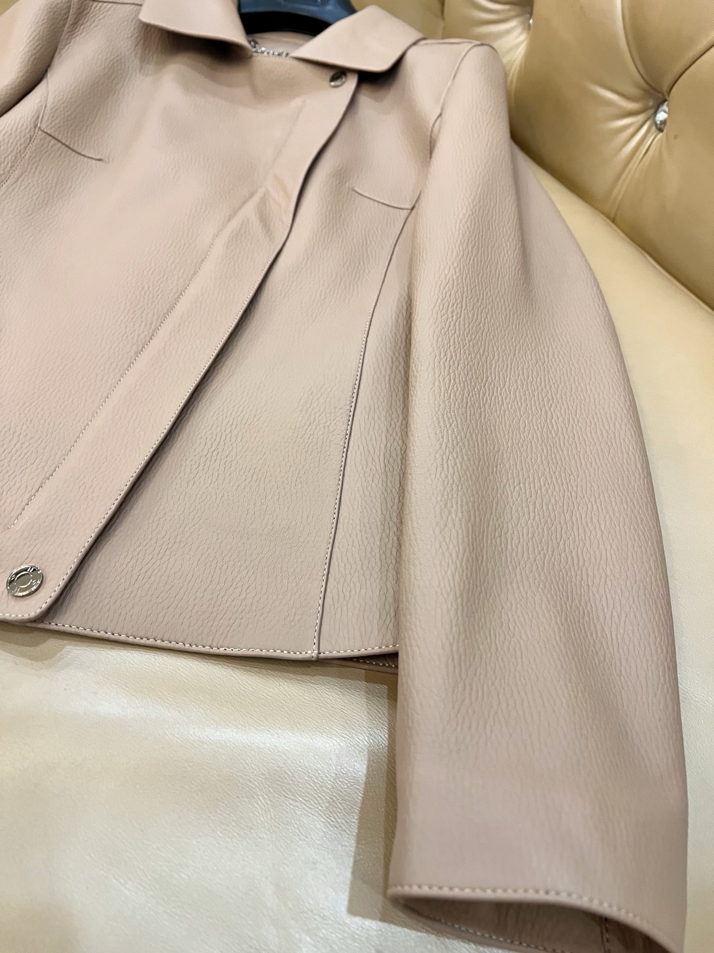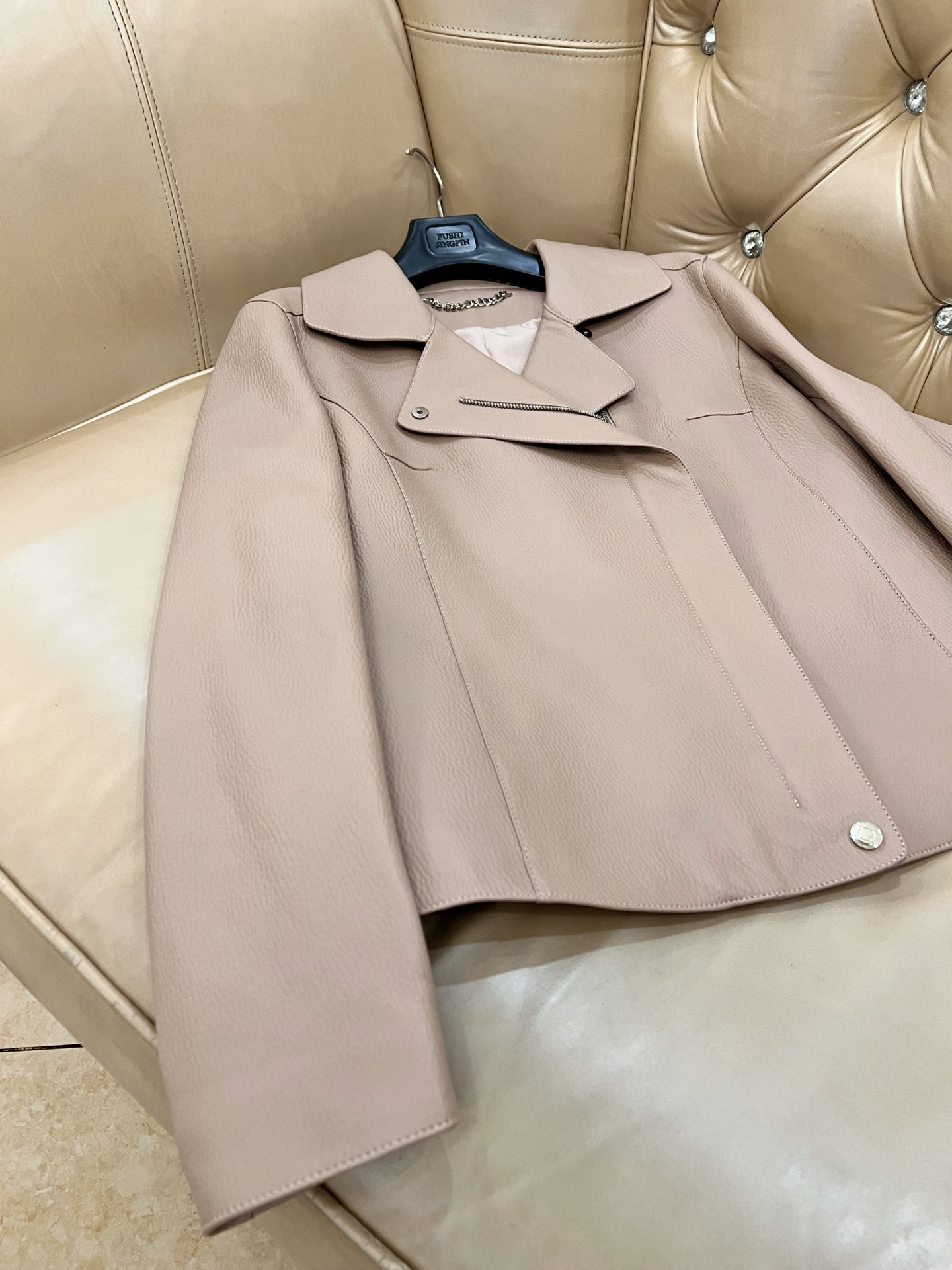 Details: Elegant suit leather jacket combined with cashmere, made of Turkish lambskin with double oil edge and classic lining, specific sizes available, high-end custom, fine workmanship