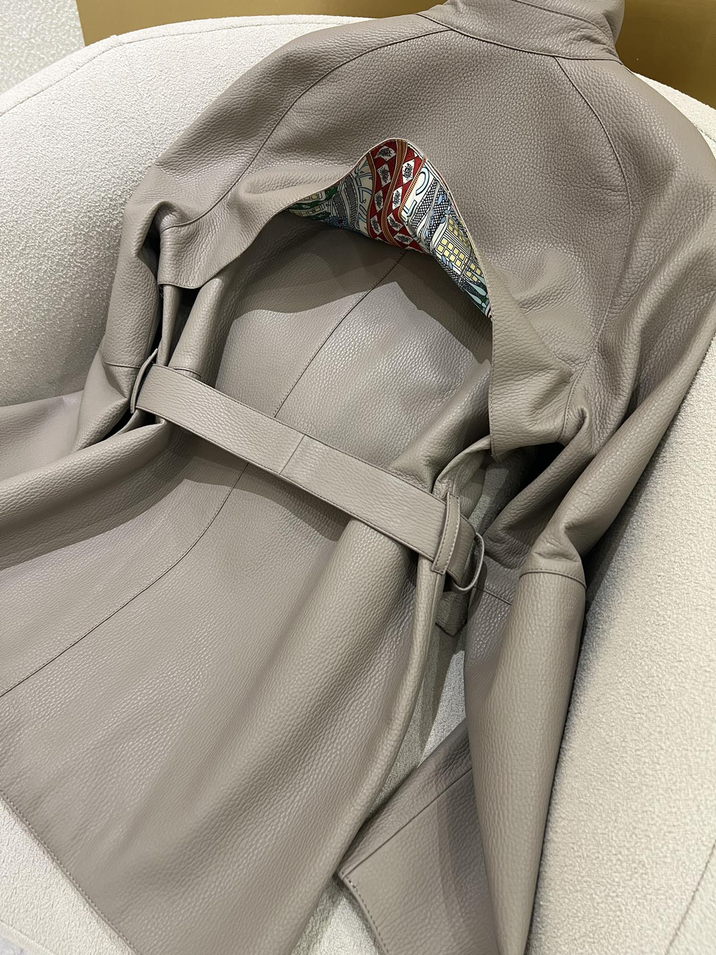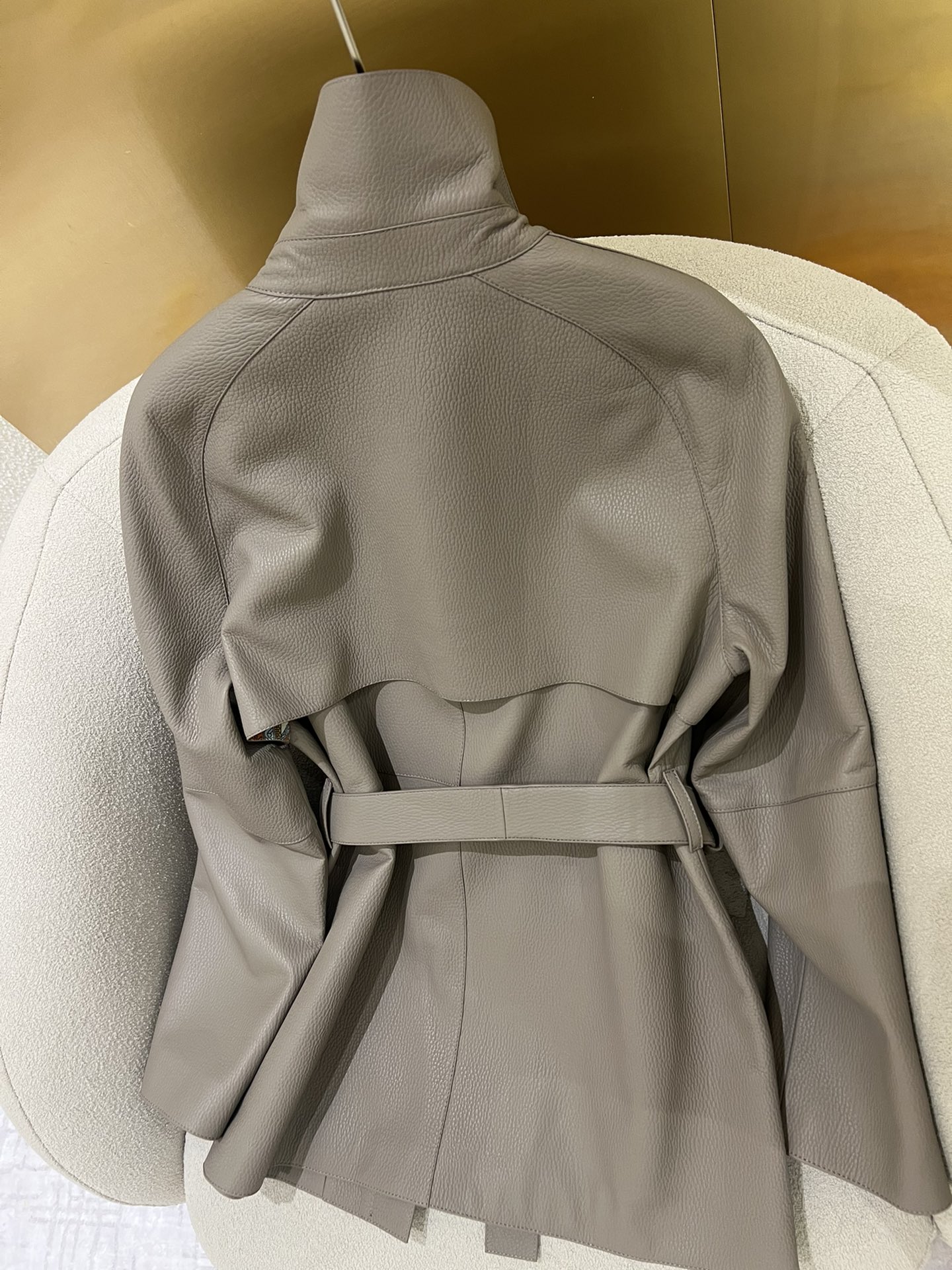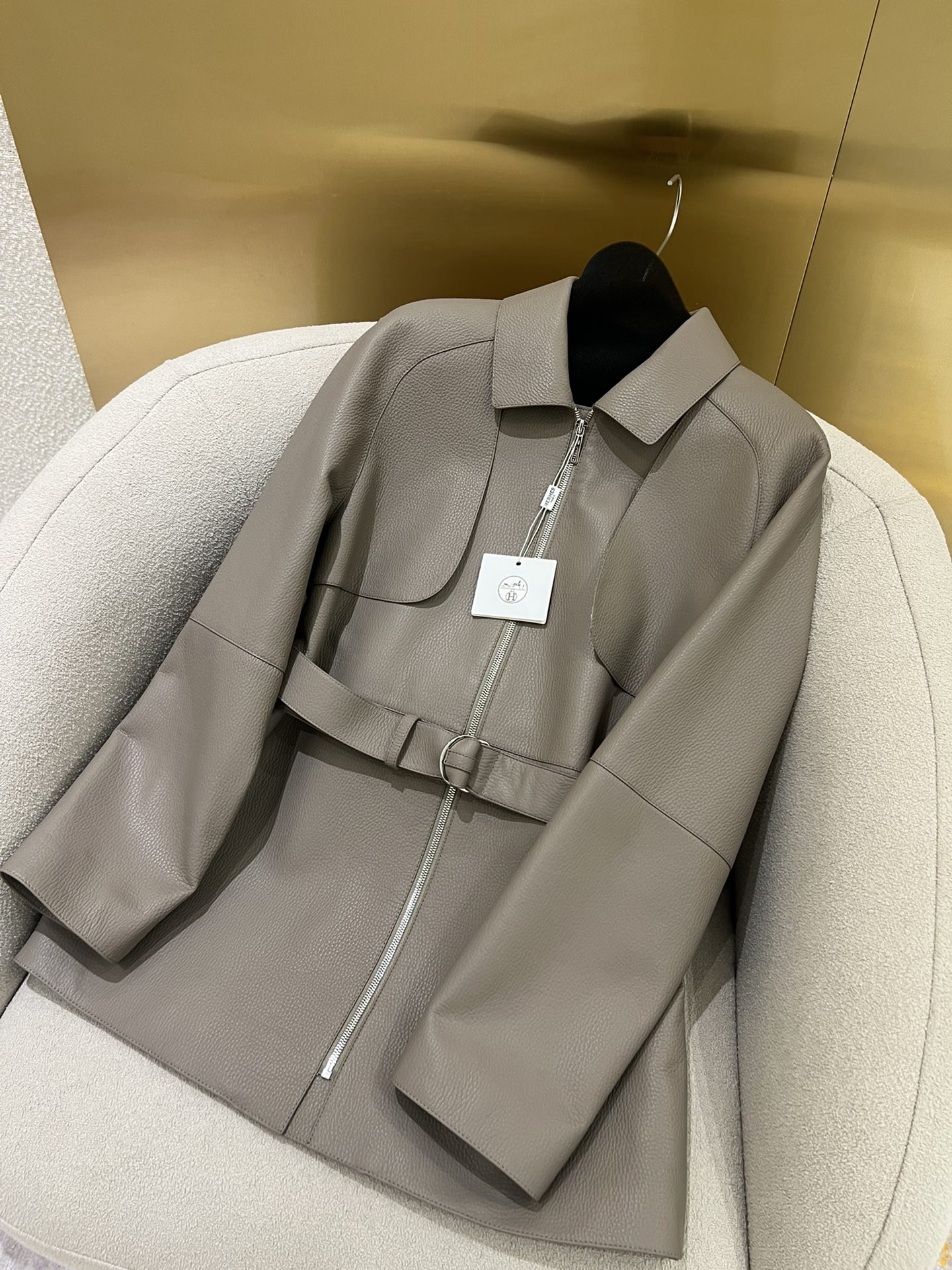 Details: Classic medium-length leather jacket crafted from imported Spanish leather with clear texture, featuring classic lining, various sizes, high-end custom, and fine workmanship