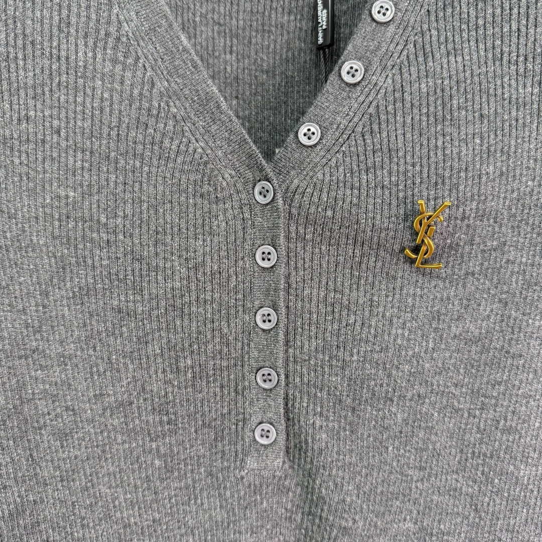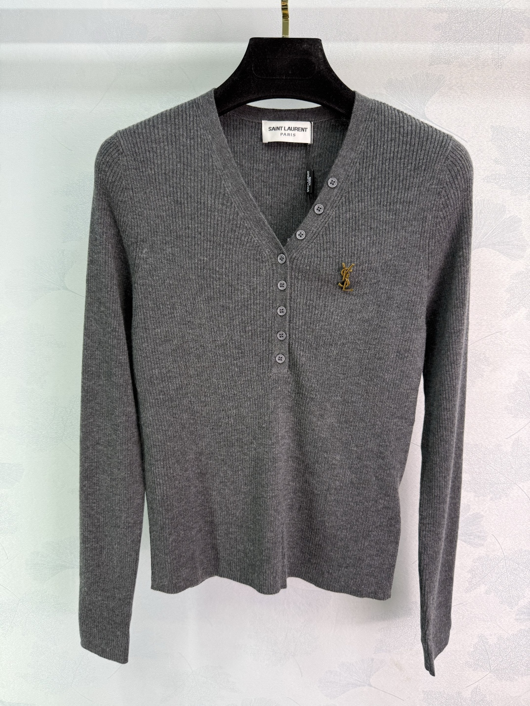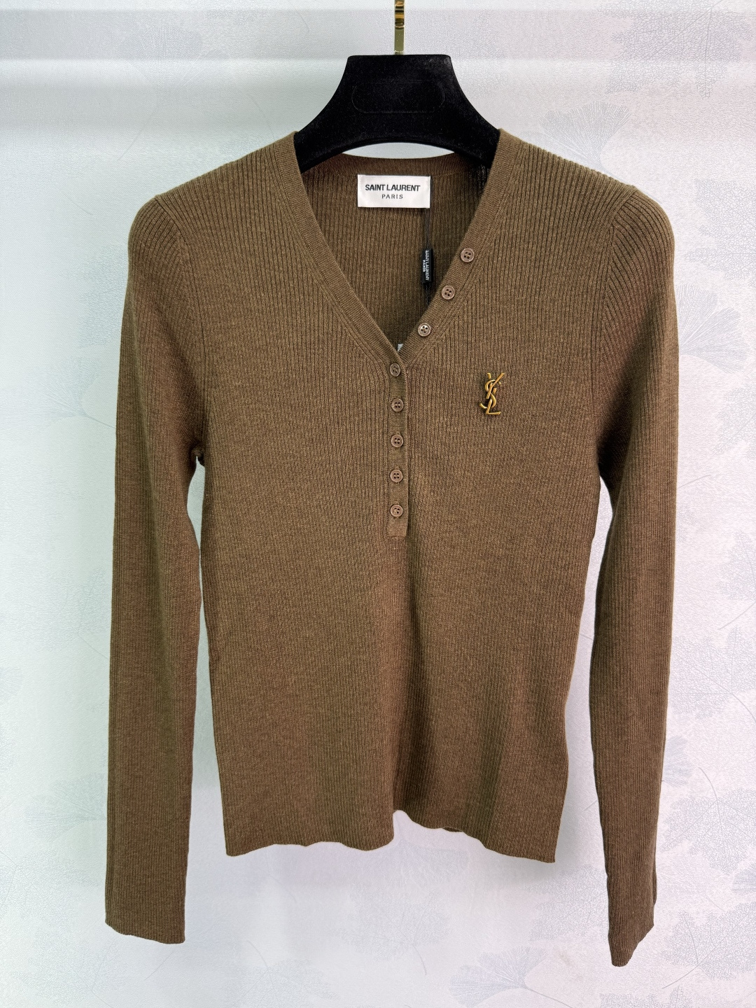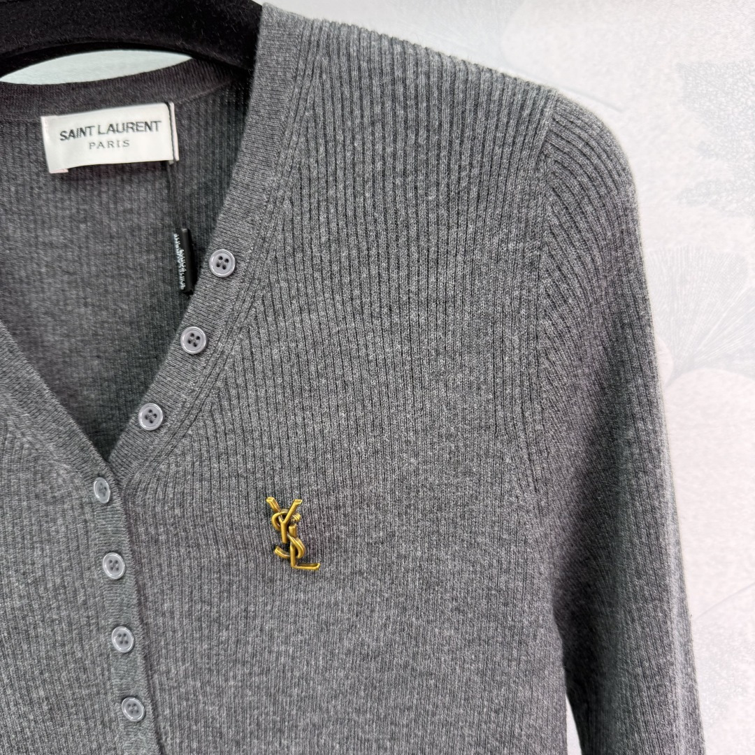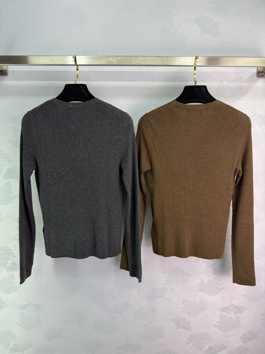 Details: Early autumn V-neck knitted cardigan with metal logo and unique buttons, suitable for all ages and skin tones.