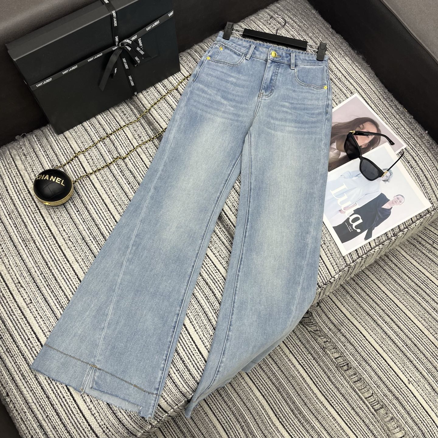 Details: Spring flared denim pants, available in two colors and sizes SMLXL. High-end customization with fine workmanship