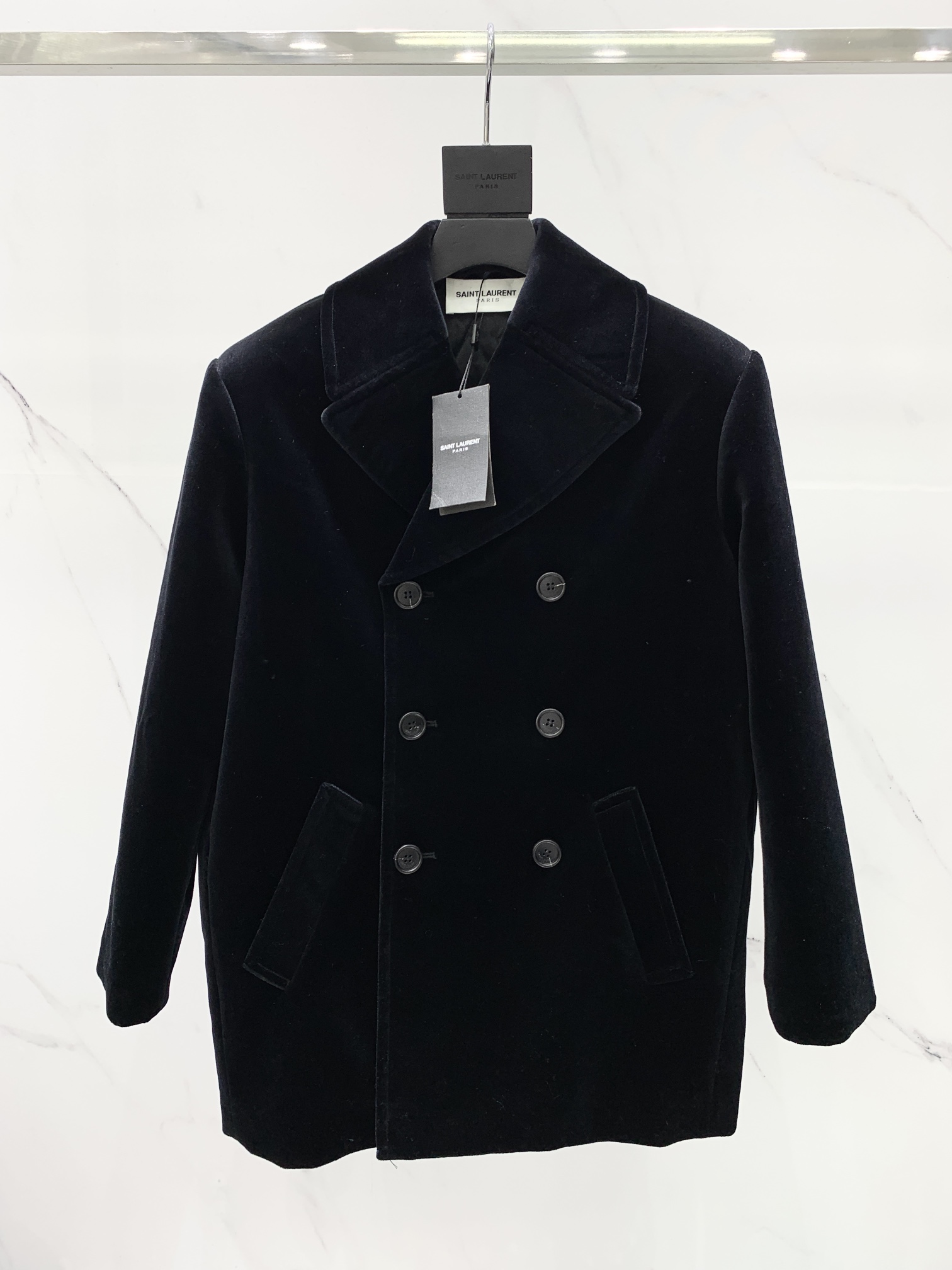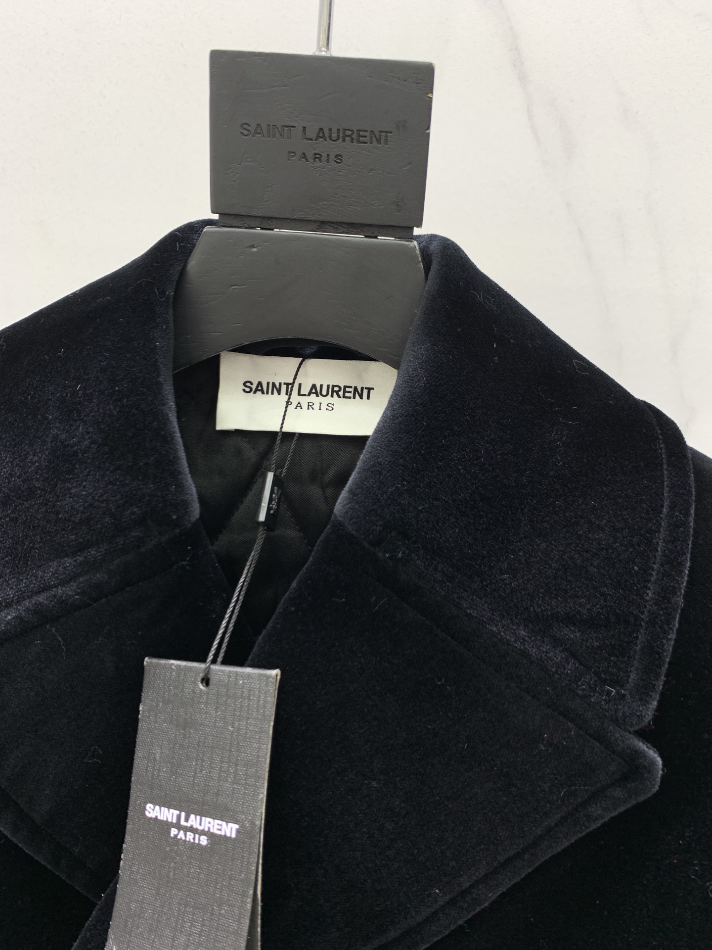 Details: Navy-style cotton jacket with YS embroidery, suitable for dresses or leggings.