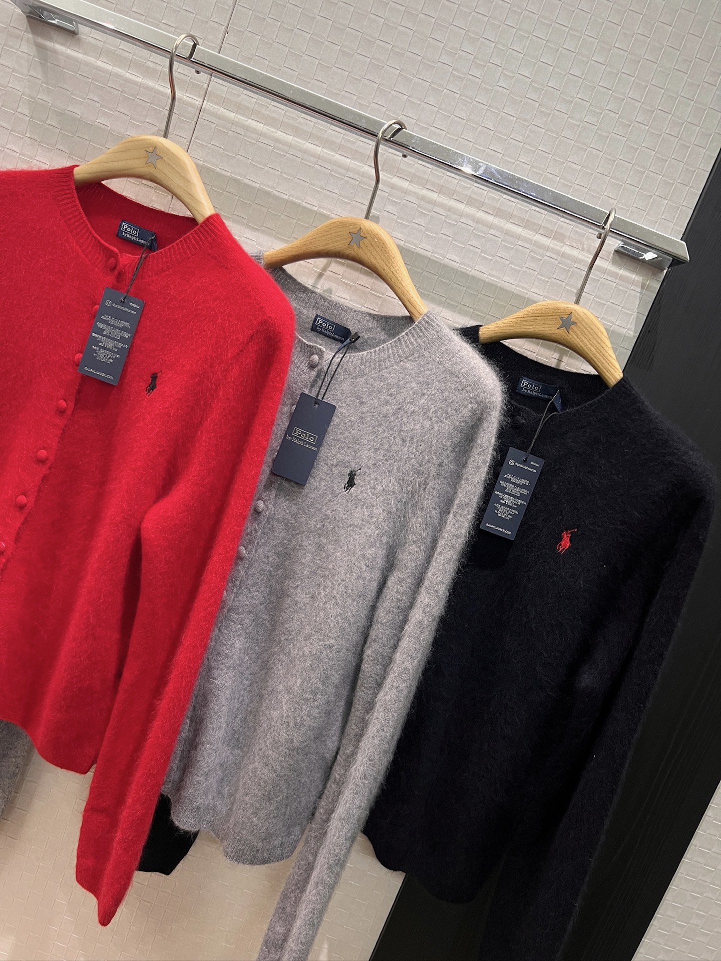Details: New knitted cashmere cardigan with pony logo, simple and versatile