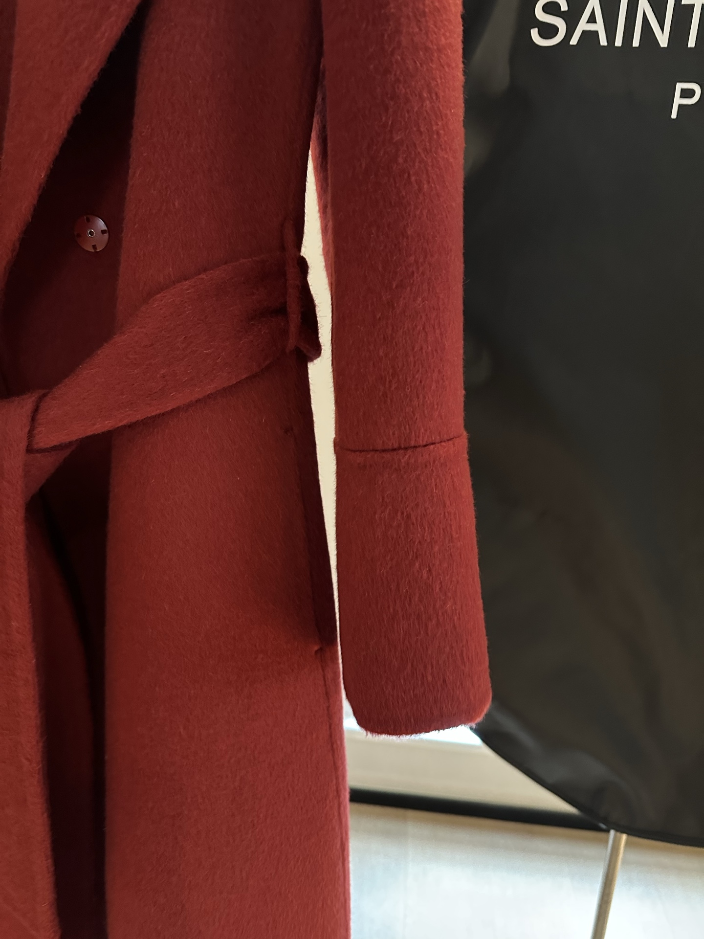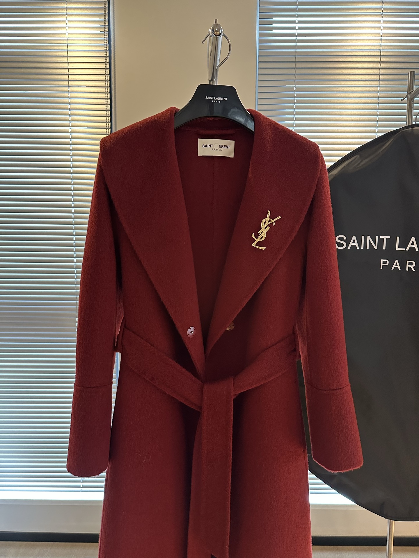 Details: High-end woolen overcoat with A-shaped design, thick and soft fabric, comes with a gold-plated brooch, high-end customization, fine workmanship