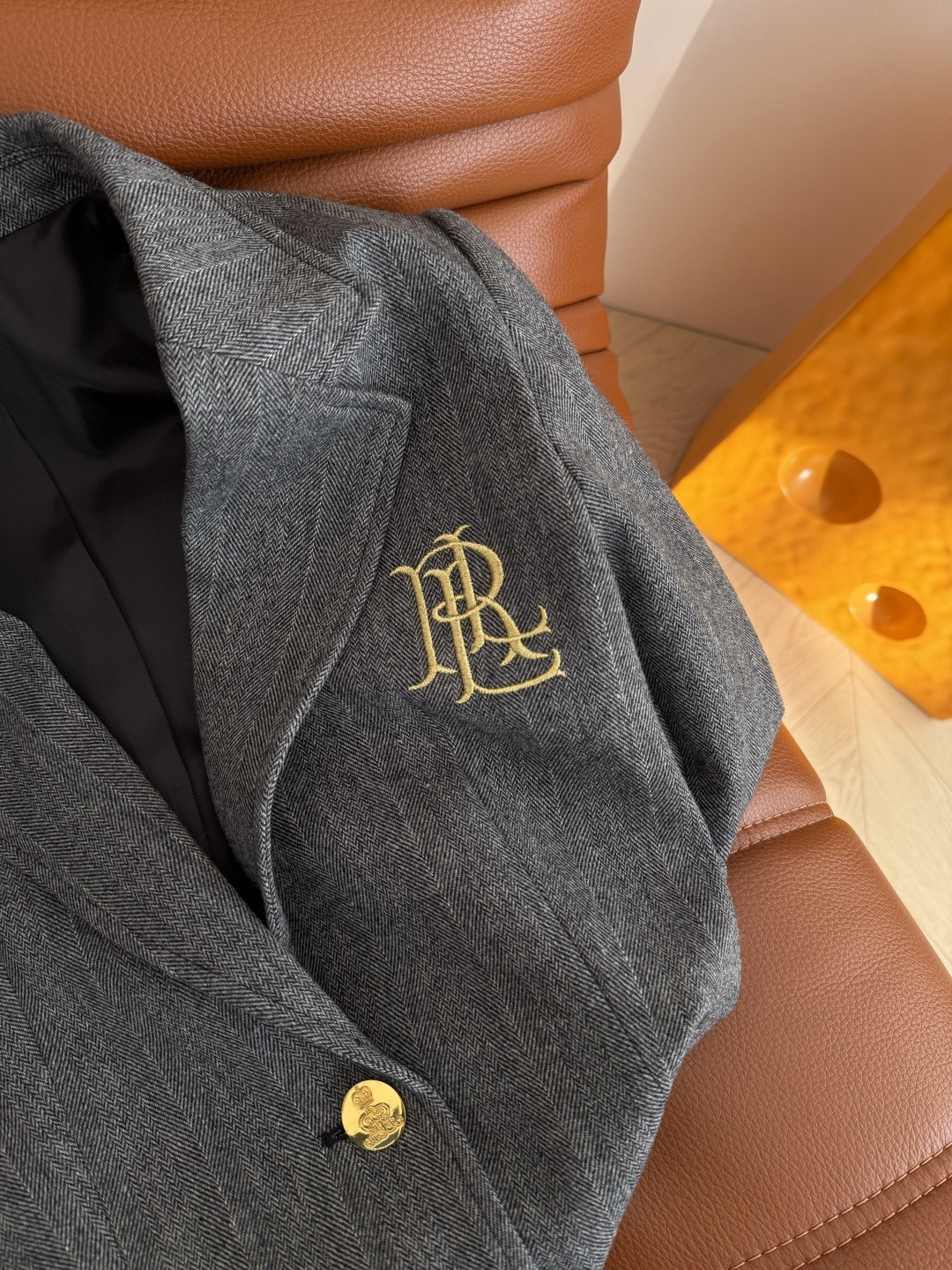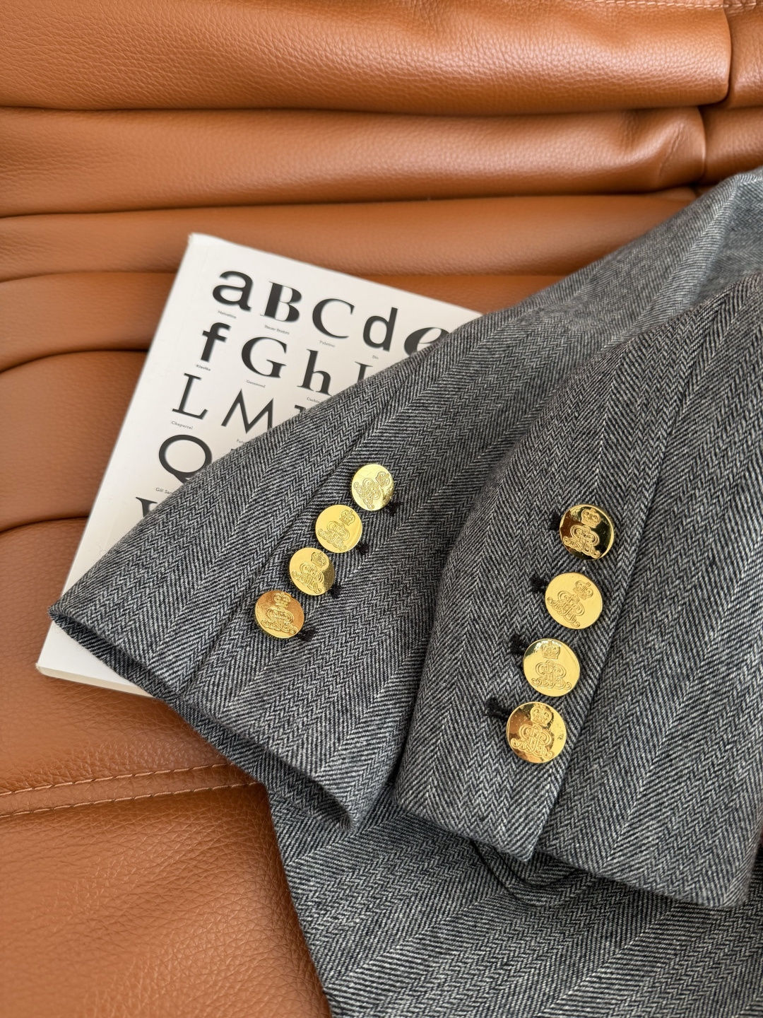 Details: Early Spring Gold-embroidered Herringbone Suit, Lightweight and Practical. High-end Customization, Fine Workmanship