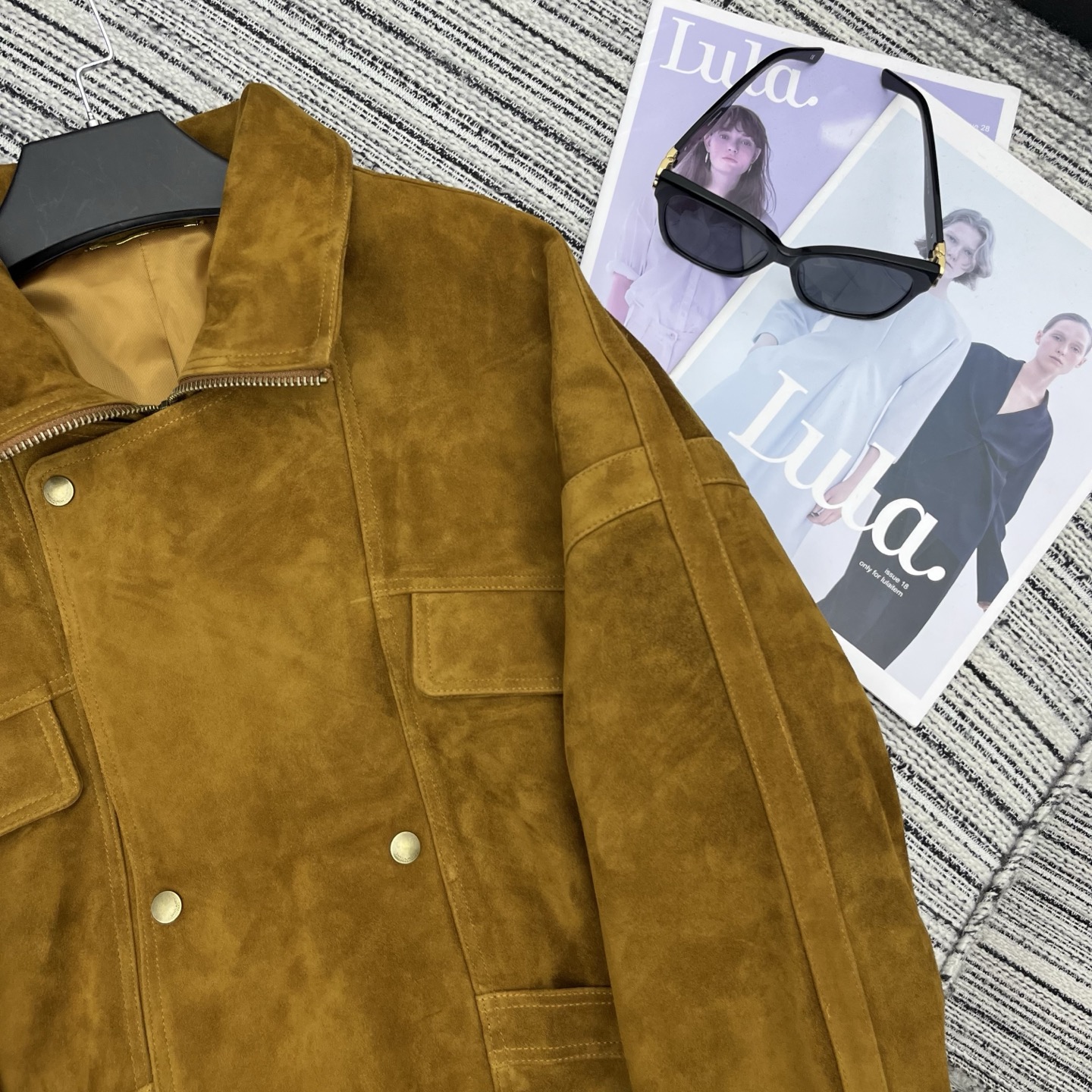 Details: Highly recommended early autumn-winter suede sheepskin double-breasted jacket with nice color, high customization, and fine workmanship, featuring 1:1 original quality.