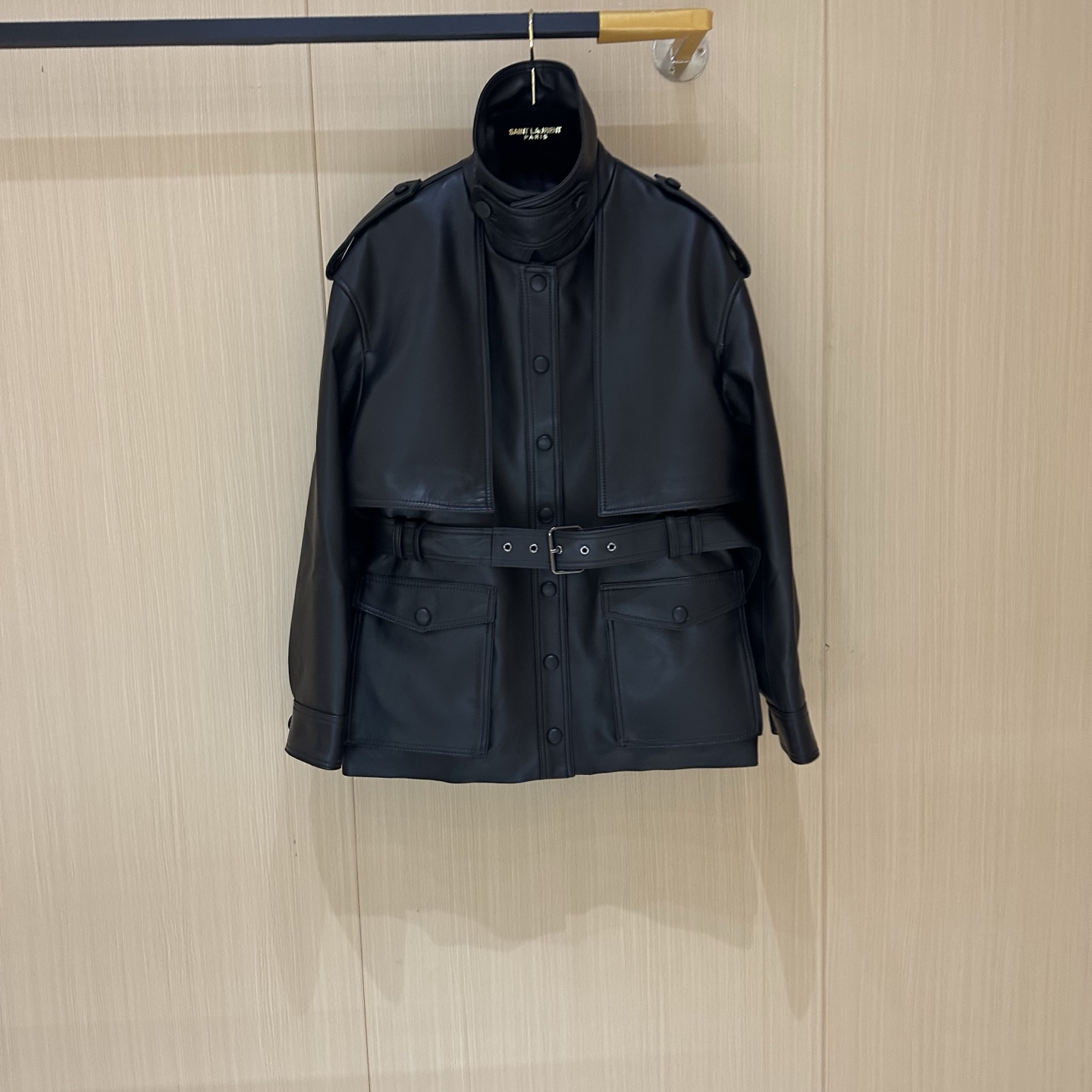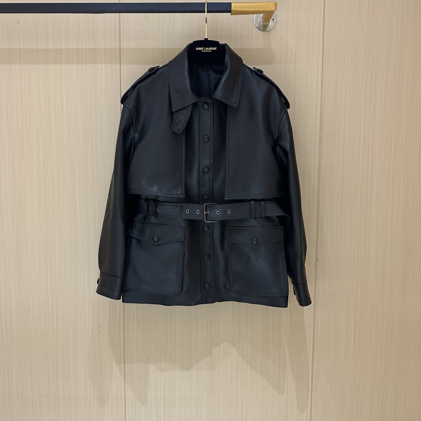 Details: Spring Exclusive: Elegant Leather Jacket, Available in Two Sizes and Two Colors, Crafted from High-End Imported Lambskin
