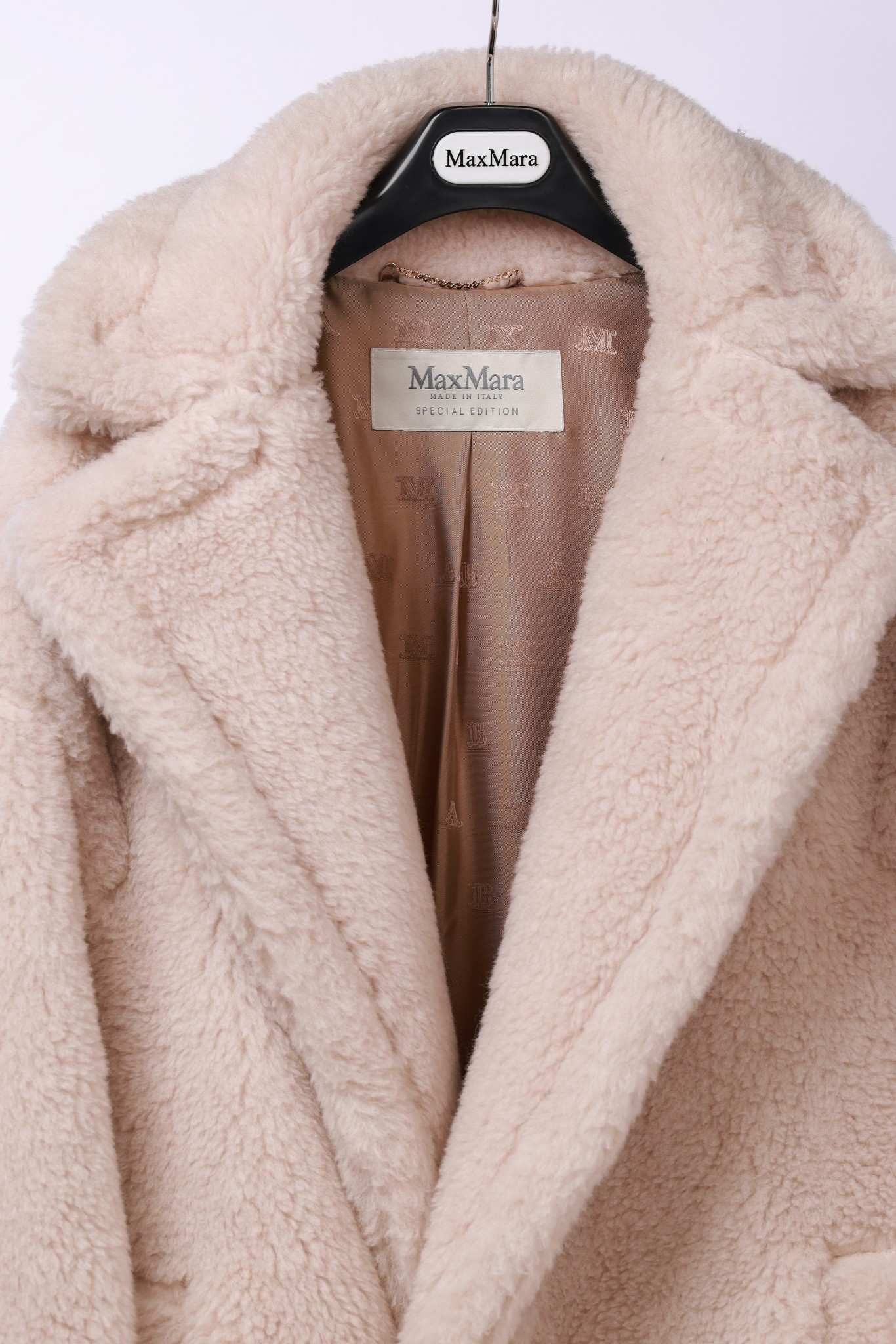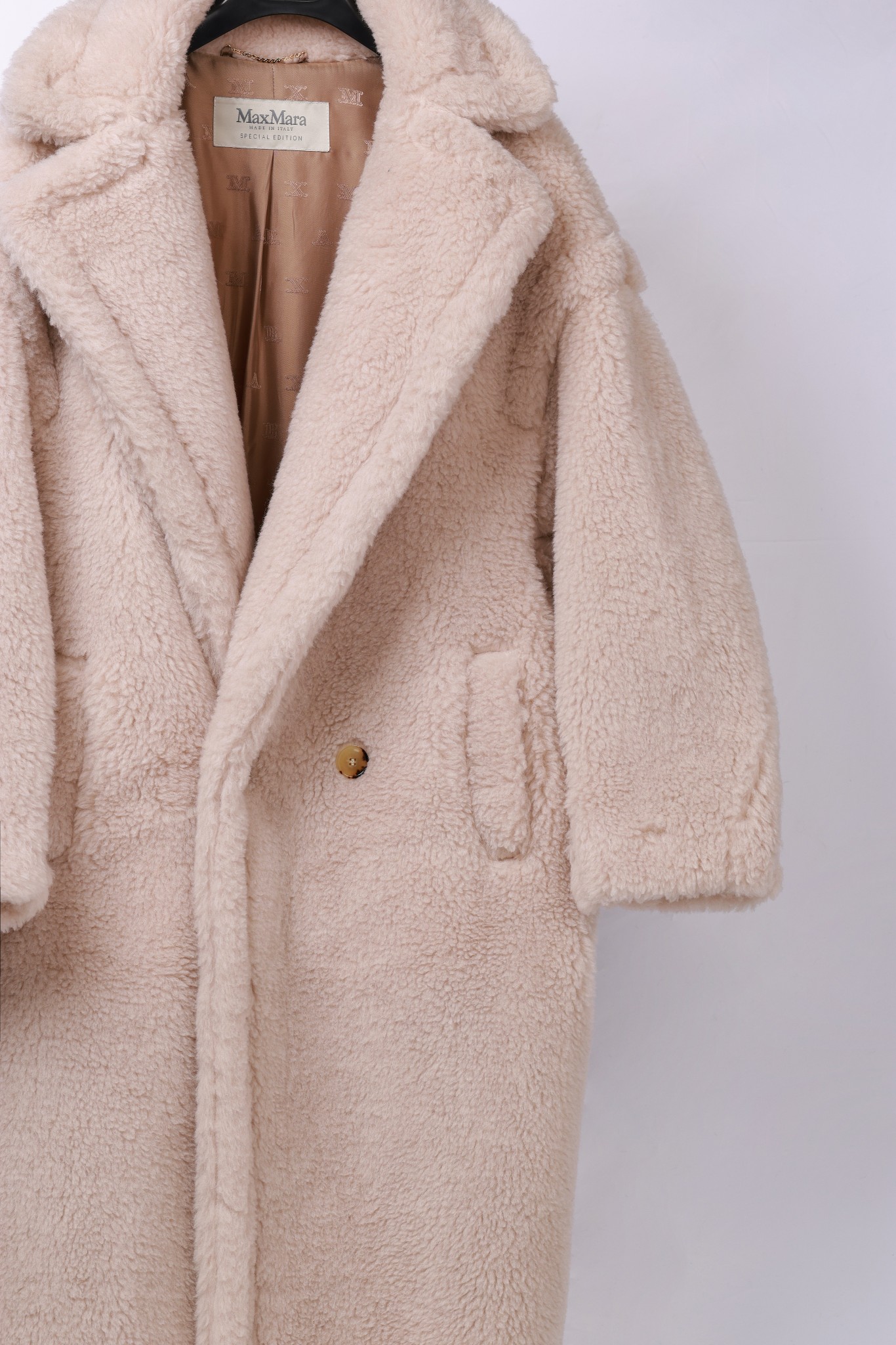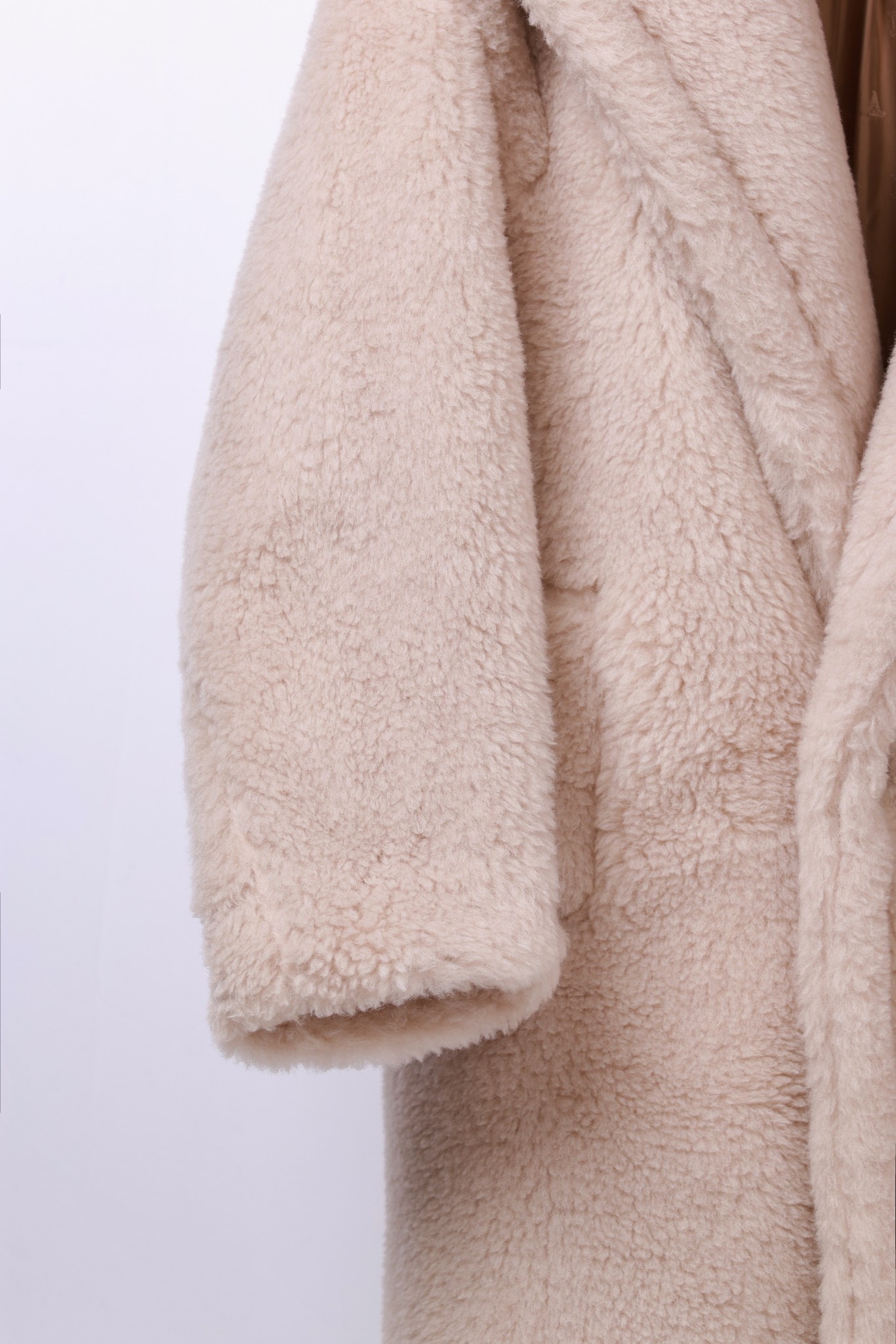 Details: Long Teddy Bear Coat in Vanilla, Size XS/M, 90% Cashmere, 10% Silk. High-end Custom, Fine Craftsmanship