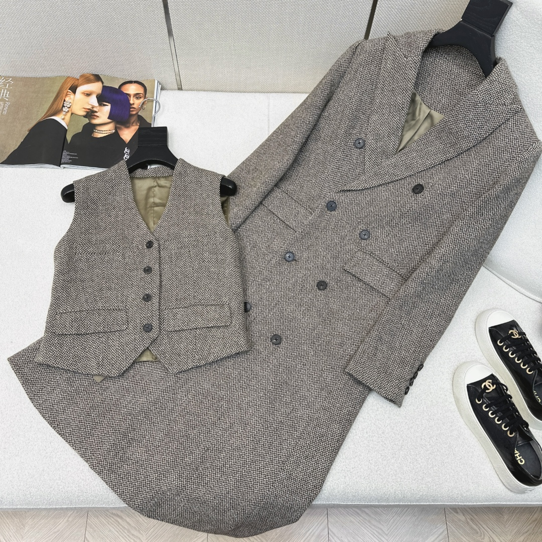 Details: Exclusive early-spring two-piece coat and vest set, classic H-shape, imported wool, multi-wear